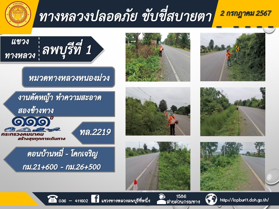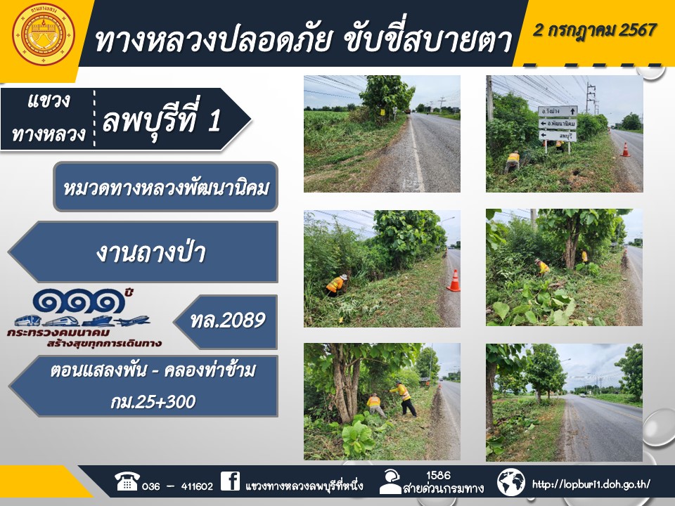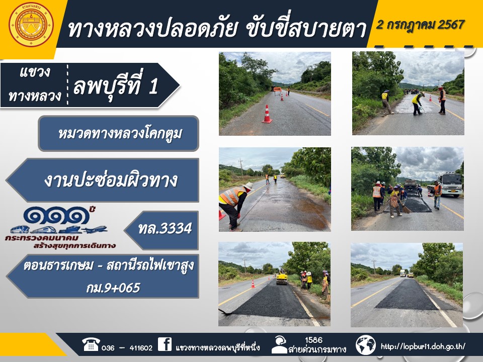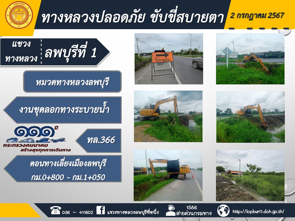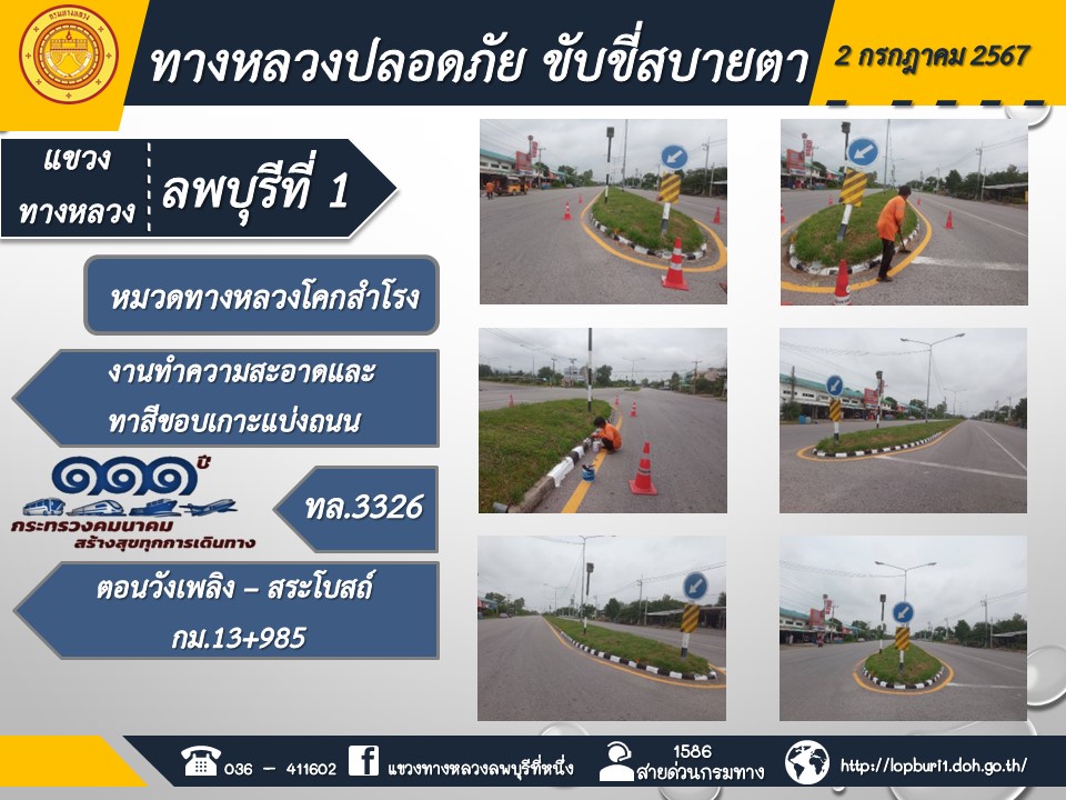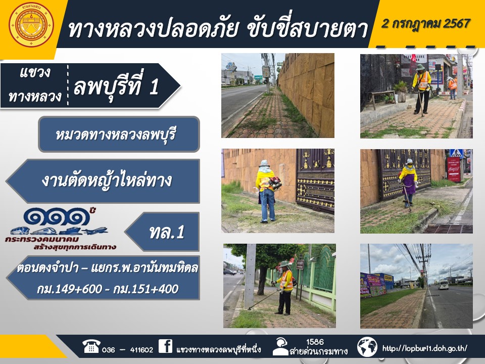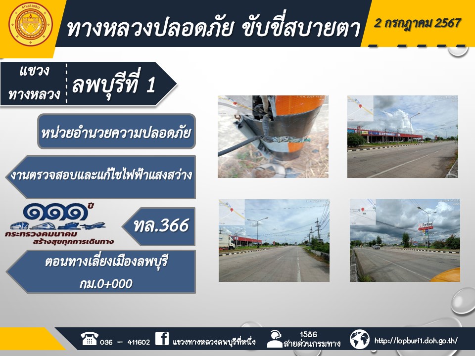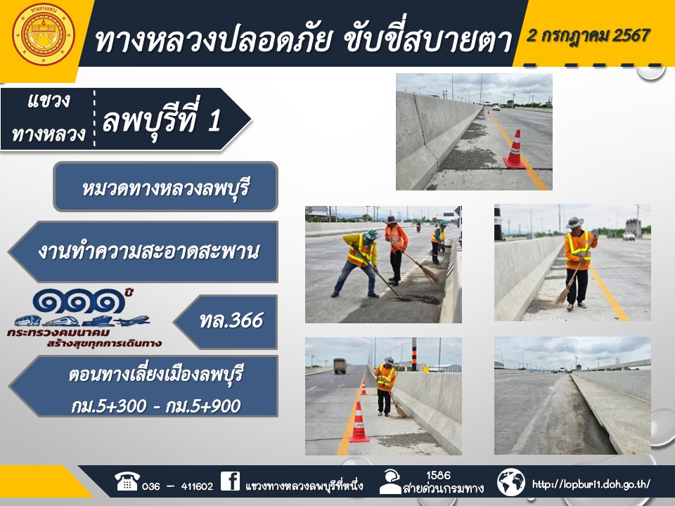 ทางหลวงปลอดภัยขับขี่สบายตา แขวงทางหลวงลพบุรีที่ 1 ประจำวันที่ 2 กรกฎาคม 2567