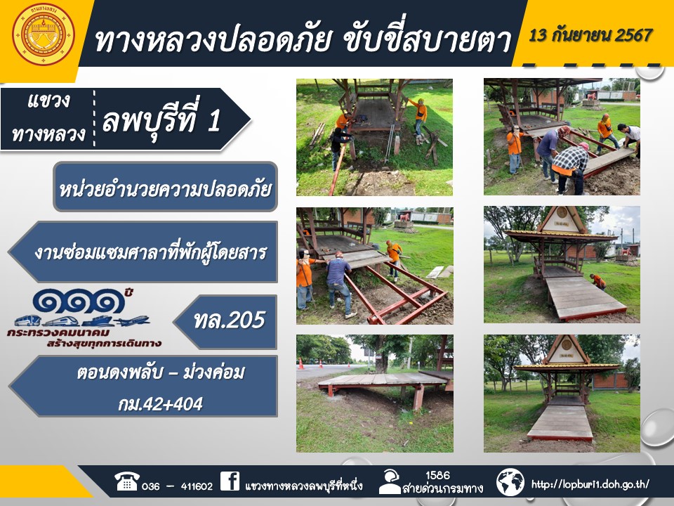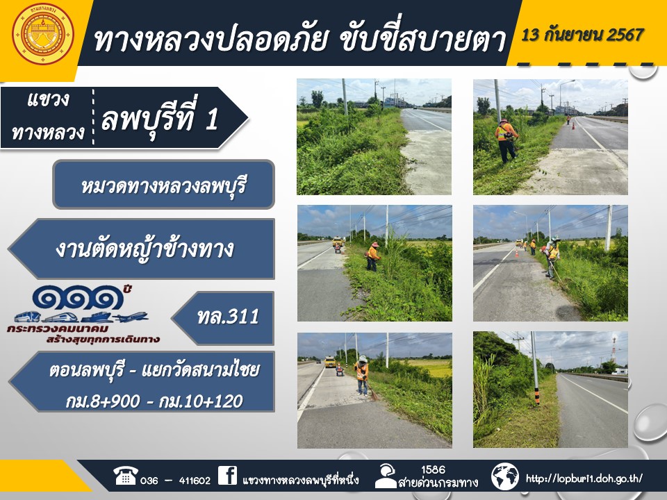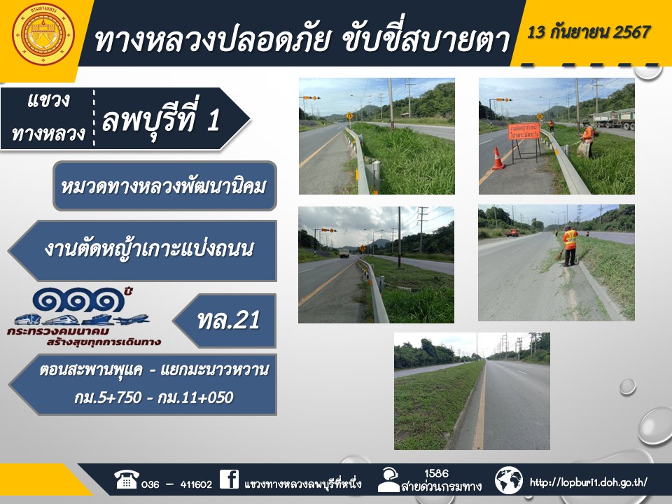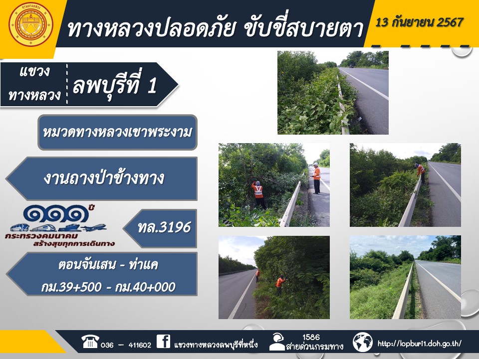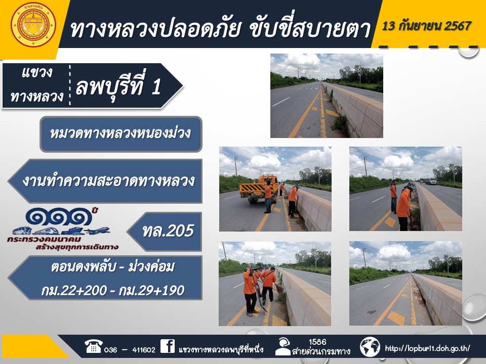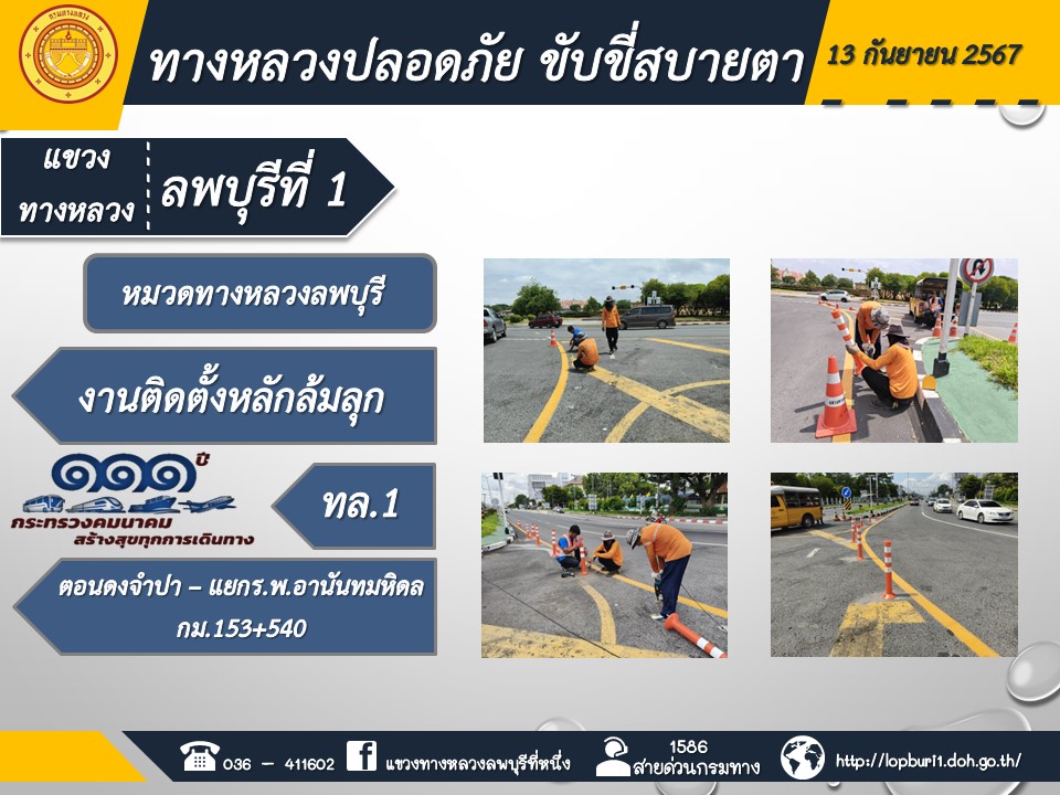 ทางหลวงปลอดภัยขับขี่สบายตา แขวงทางหลวงลพบุรีที่ 1 ประจำวันที่ 13 กันยายน 2567
