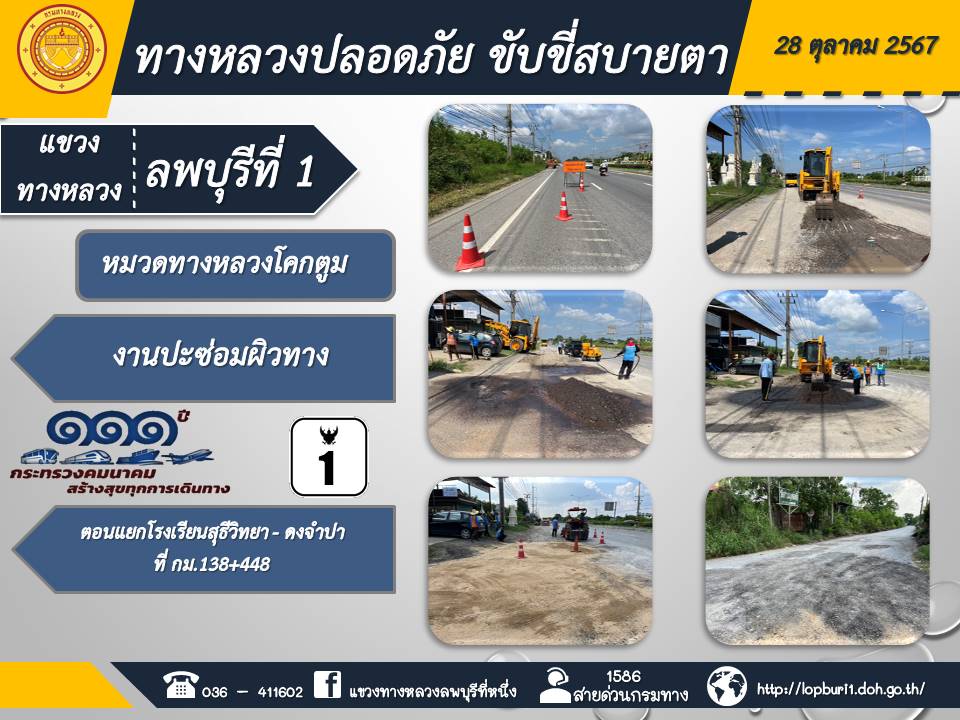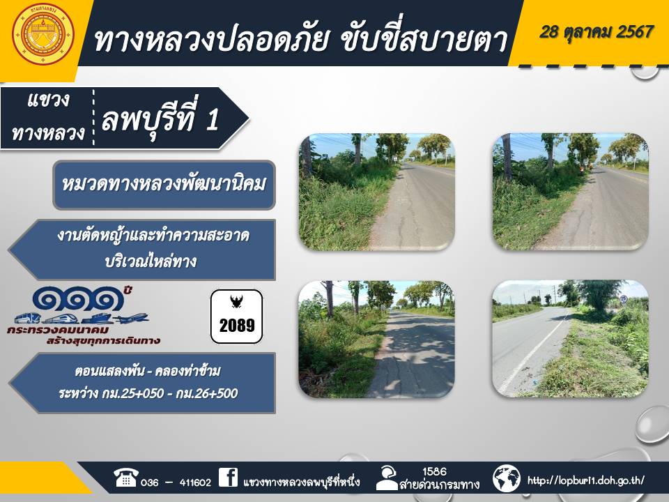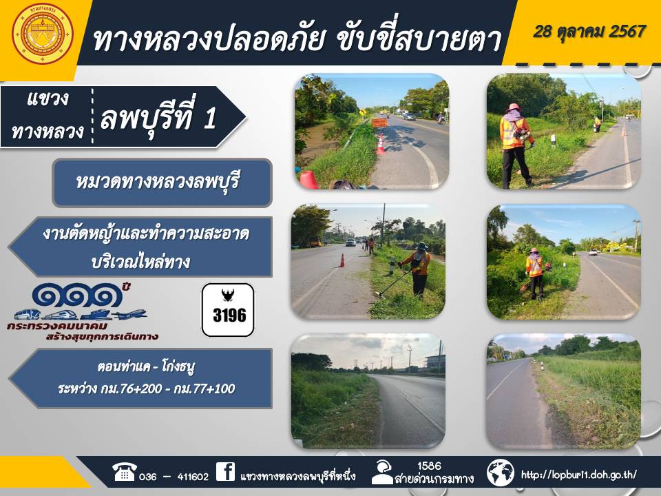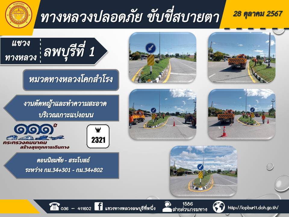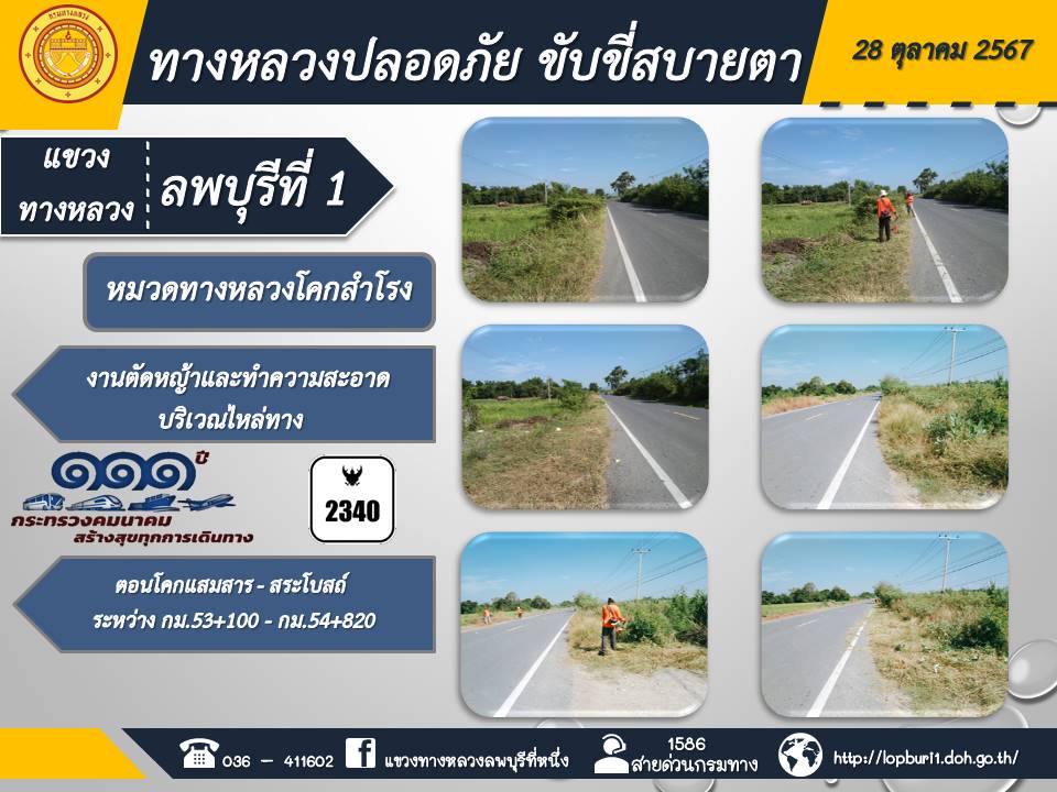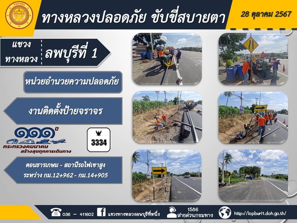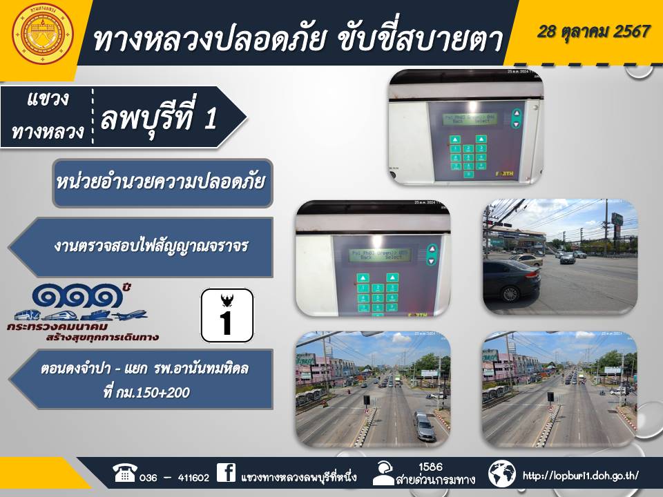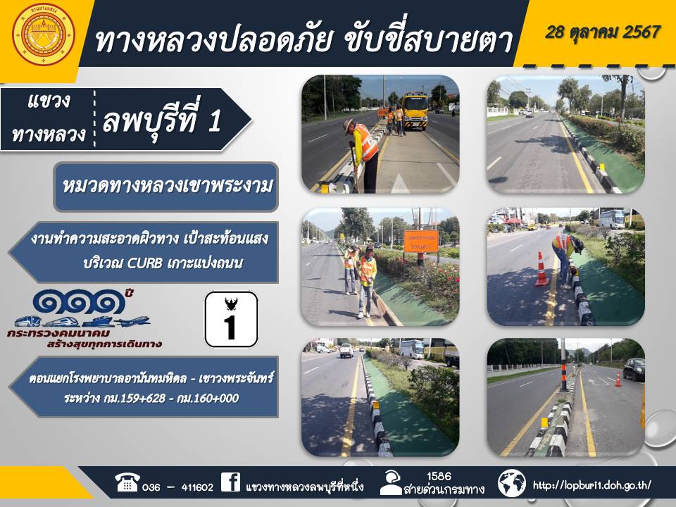 ทางหลวงปลอดภัยขับขี่สบายตา แขวงทางหลวงลพบุรีที่ 1 ประจำวันที่ 28 ตุลาคม 2567
