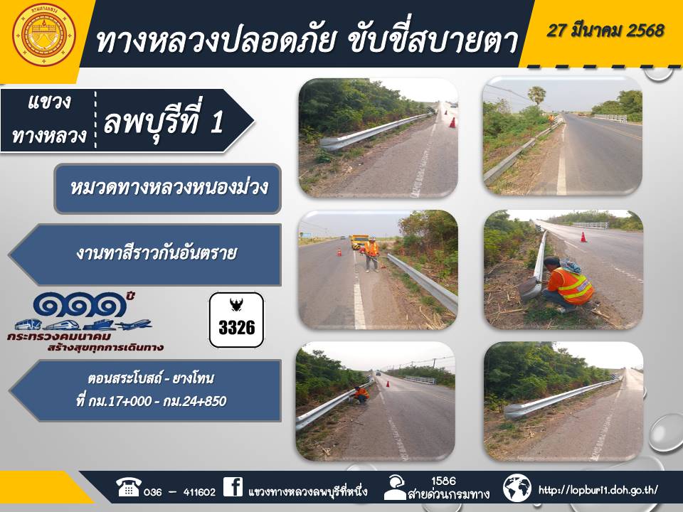 ทางหลวงปลอดภัยขับขี่สบายตา แขวงทางหลวงลพบุรีที่ 1 ประจำวันที่ 31 มีนาคม 2568