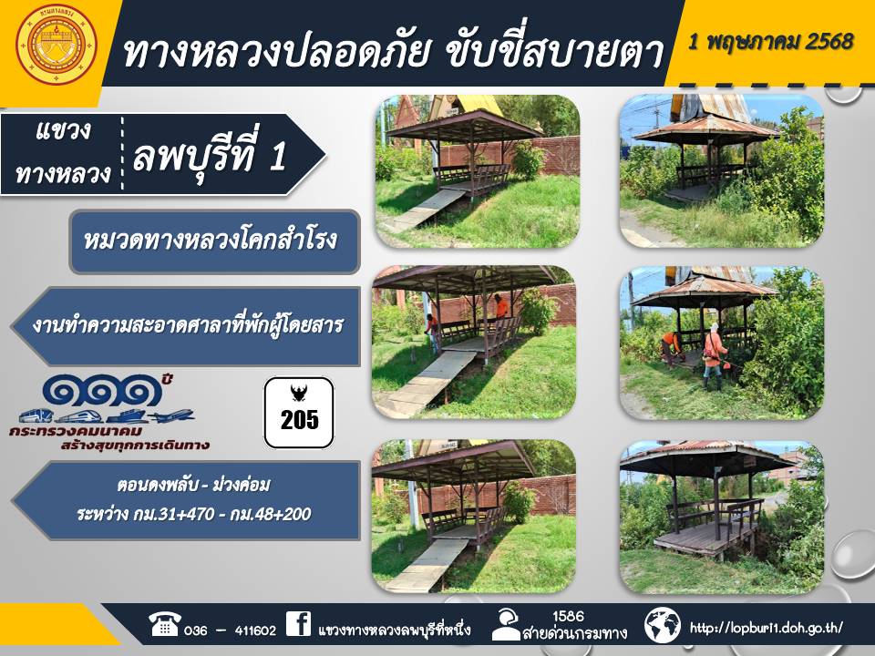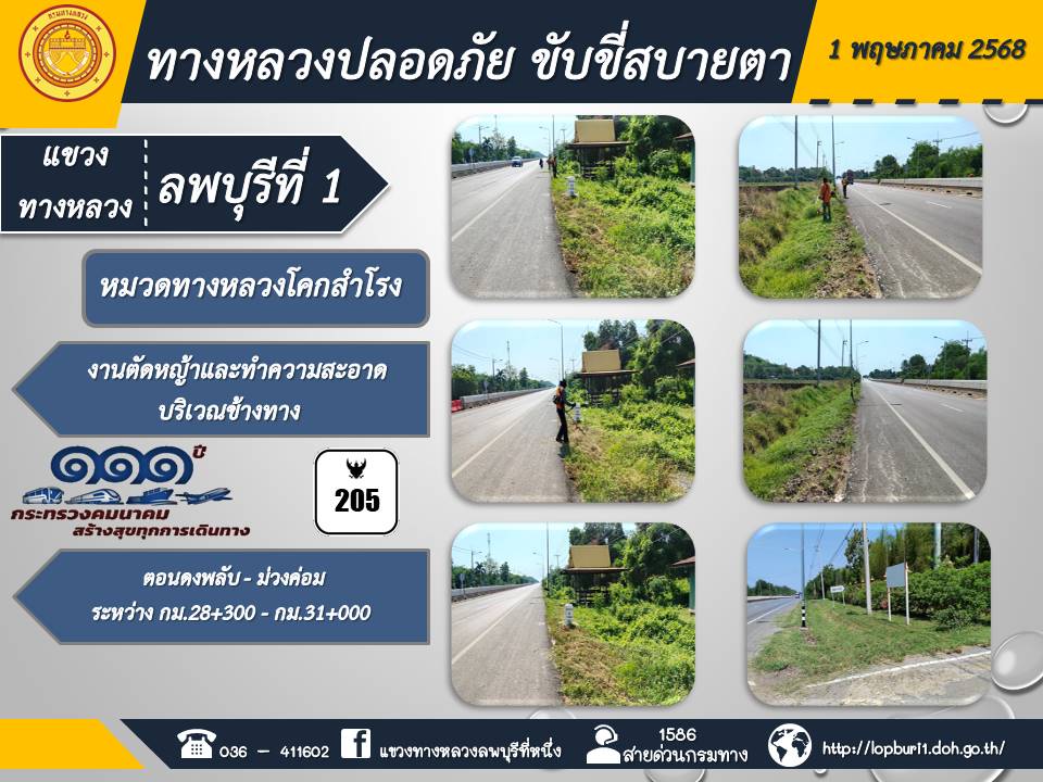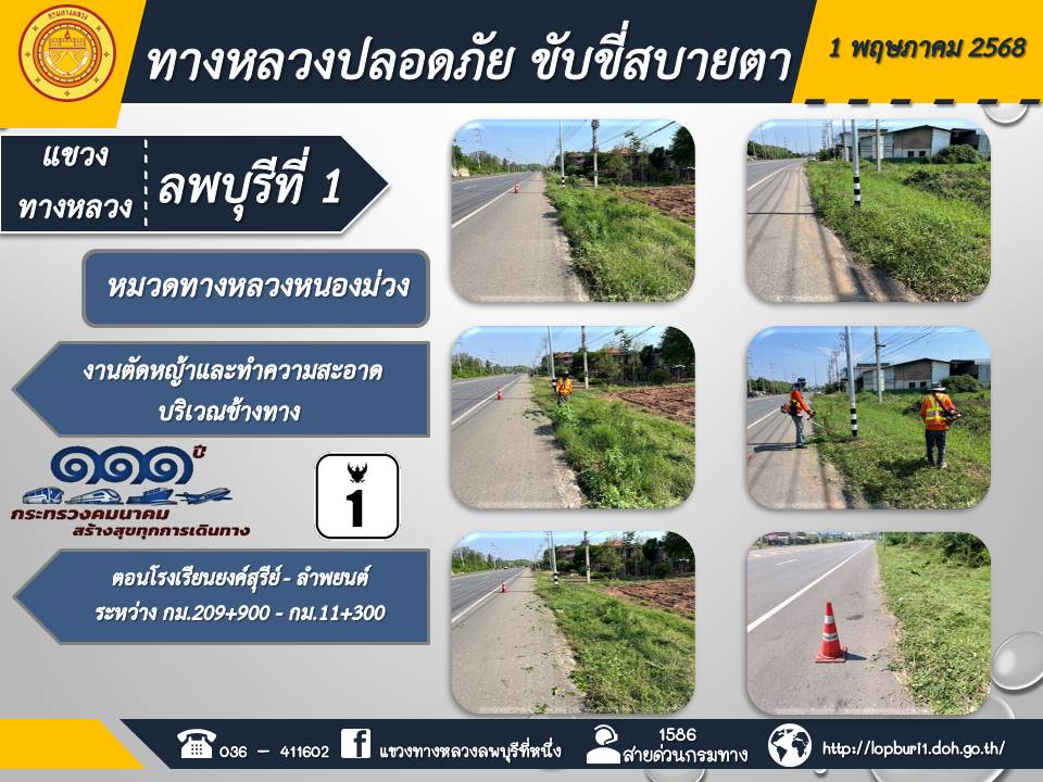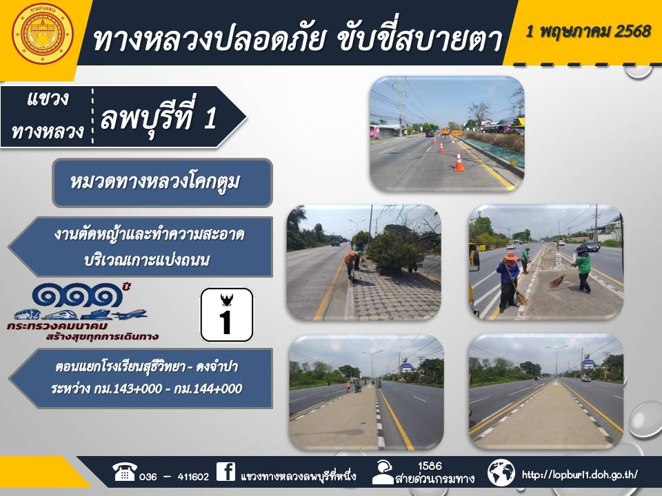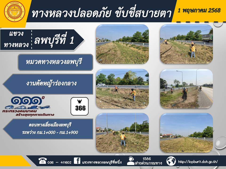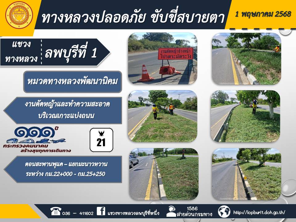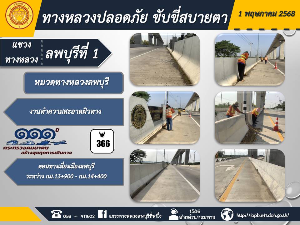 ทางหลวงปลอดภัยขับขี่สบายตา แขวงทางหลวงลพบุรีที่ 1 ประจำวันที่ 1 พฤษภาคม 2568