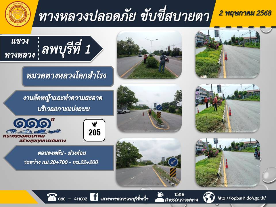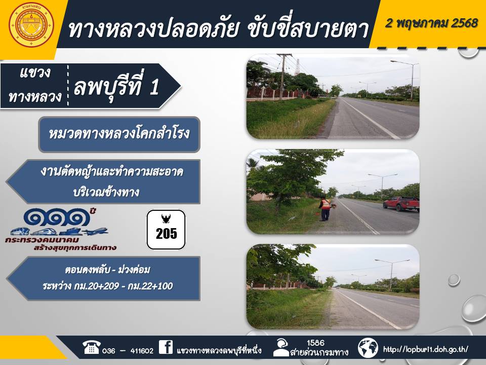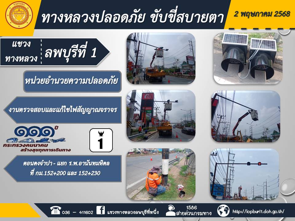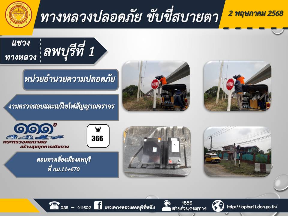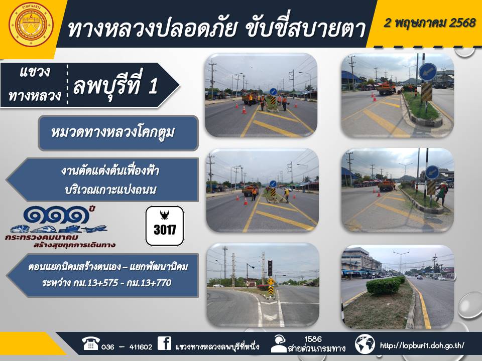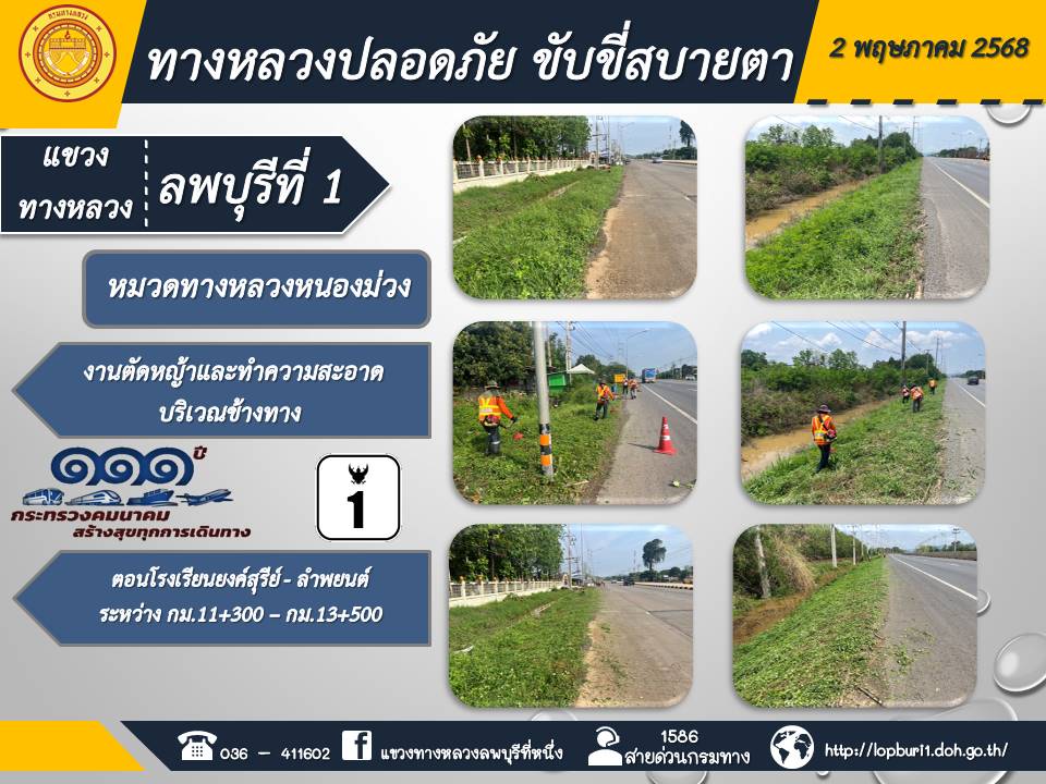 ทางหลวงปลอดภัยขับขี่สบายตา แขวงทางหลวงลพบุรีที่ 1 ประจำวันที่ 2 พฤษภาคม 2568
