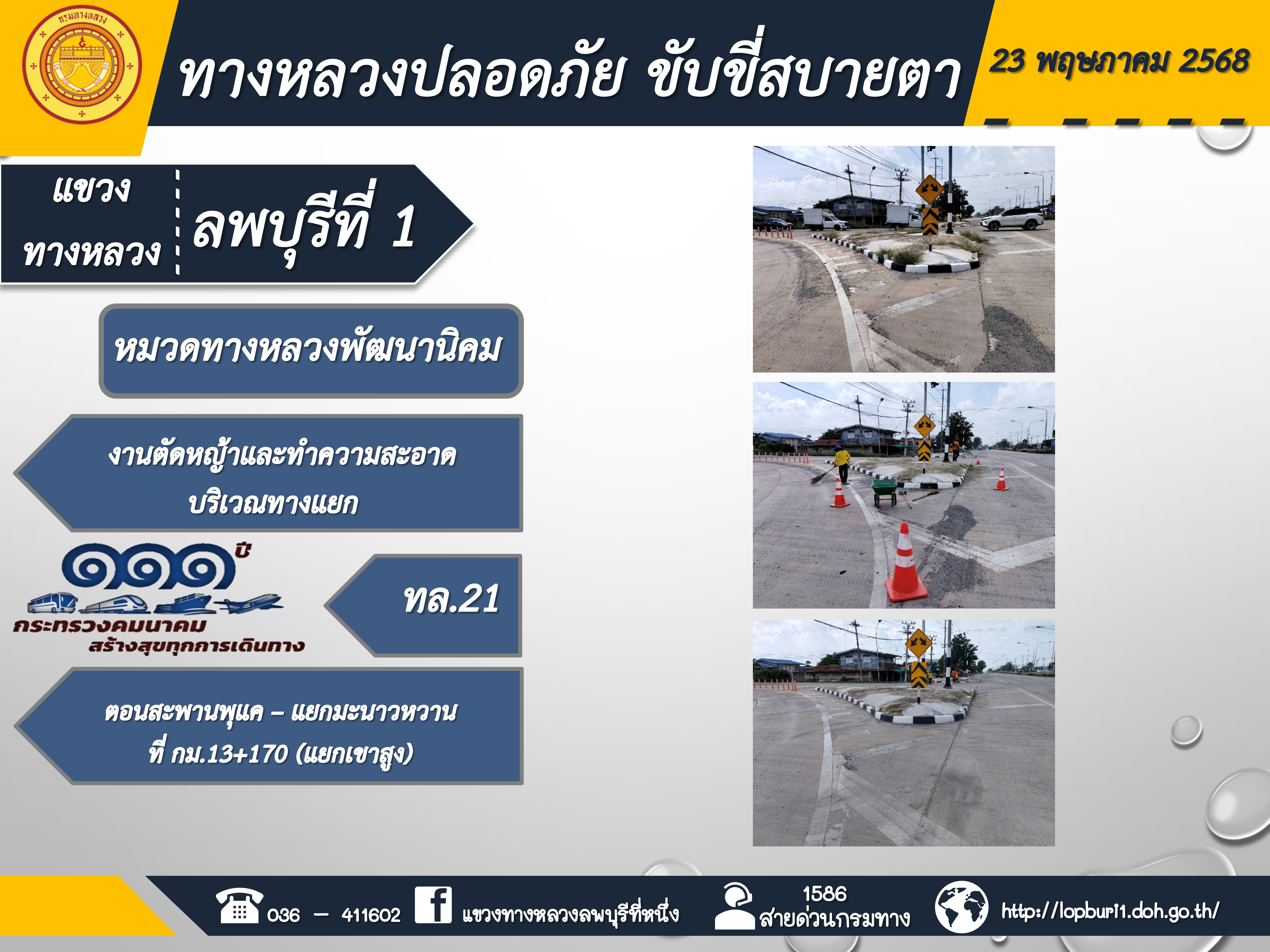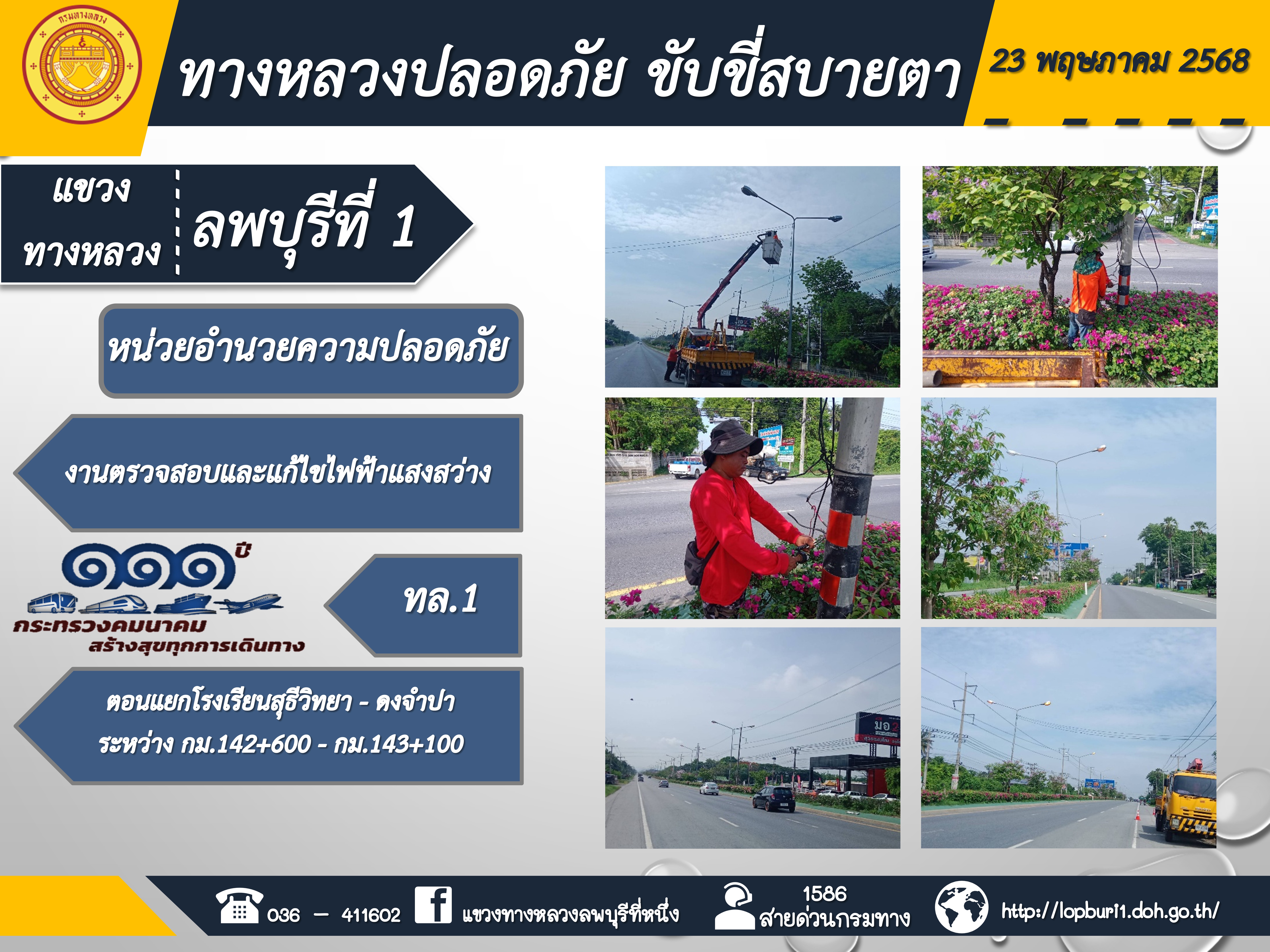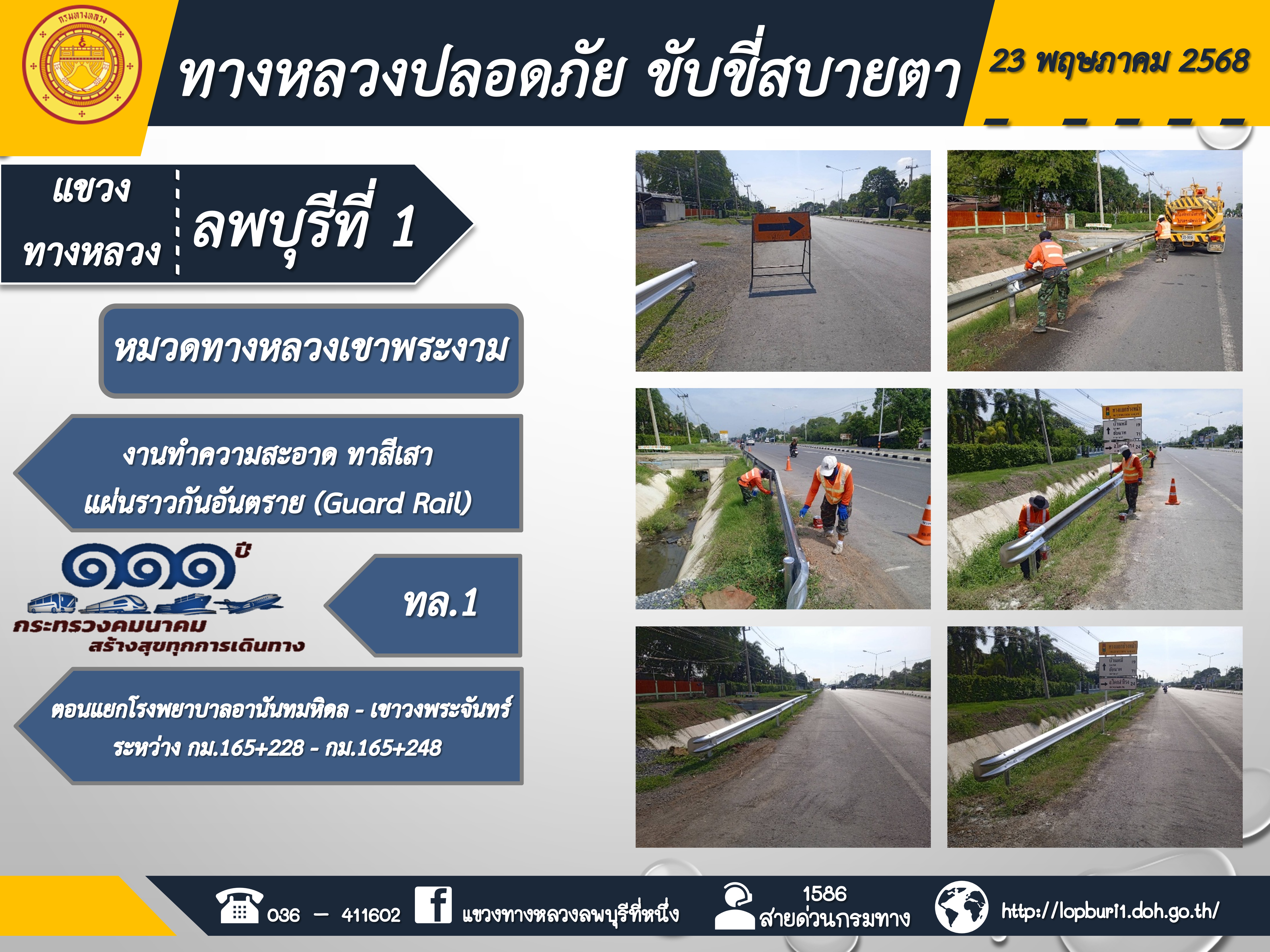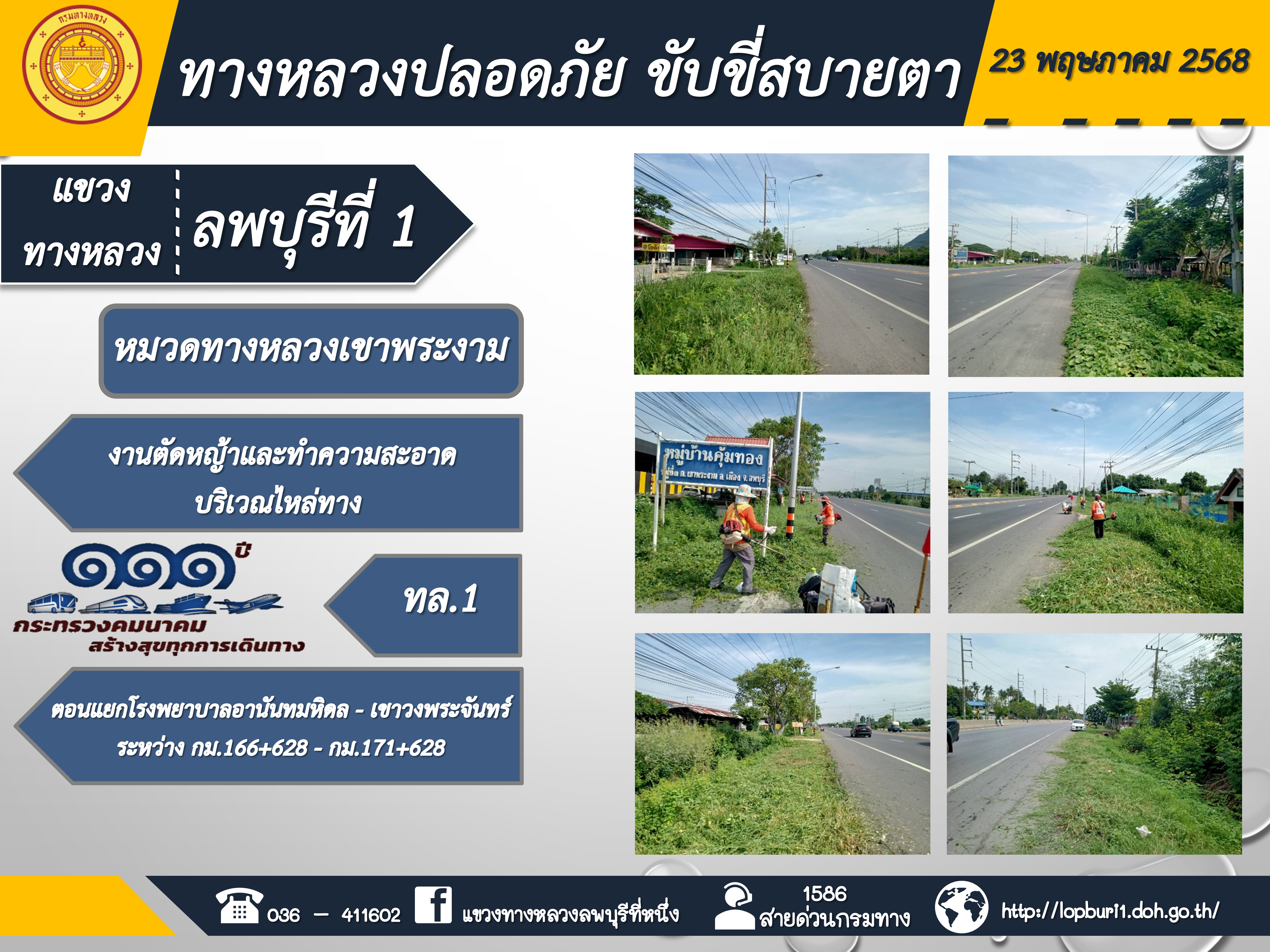 ทางหลวงปลอดภัยขับขี่สบายตา แขวงทางหลวงลพบุรีที่ 1 ประจำวันที่ 23 พฤษภาคม 2568