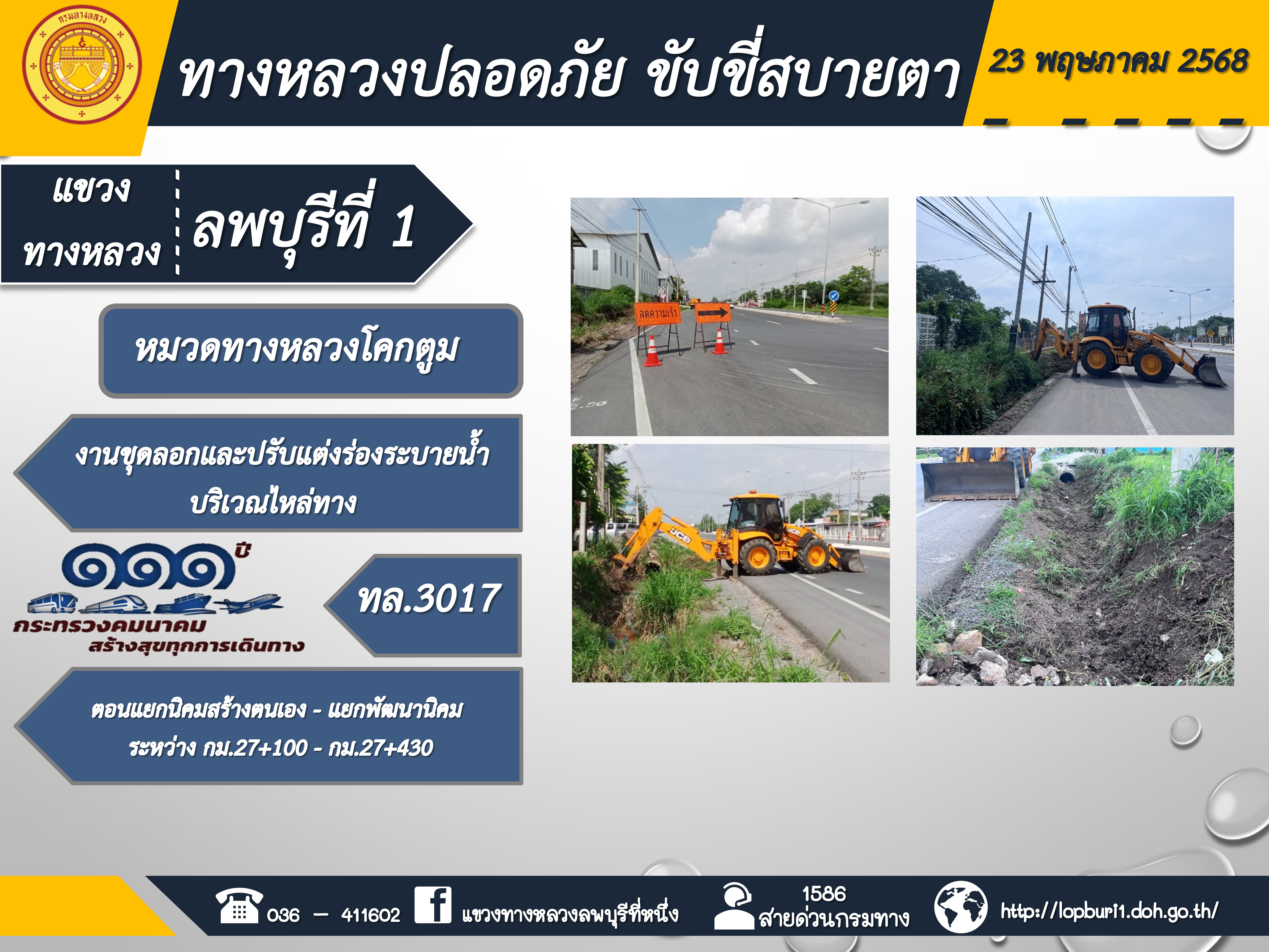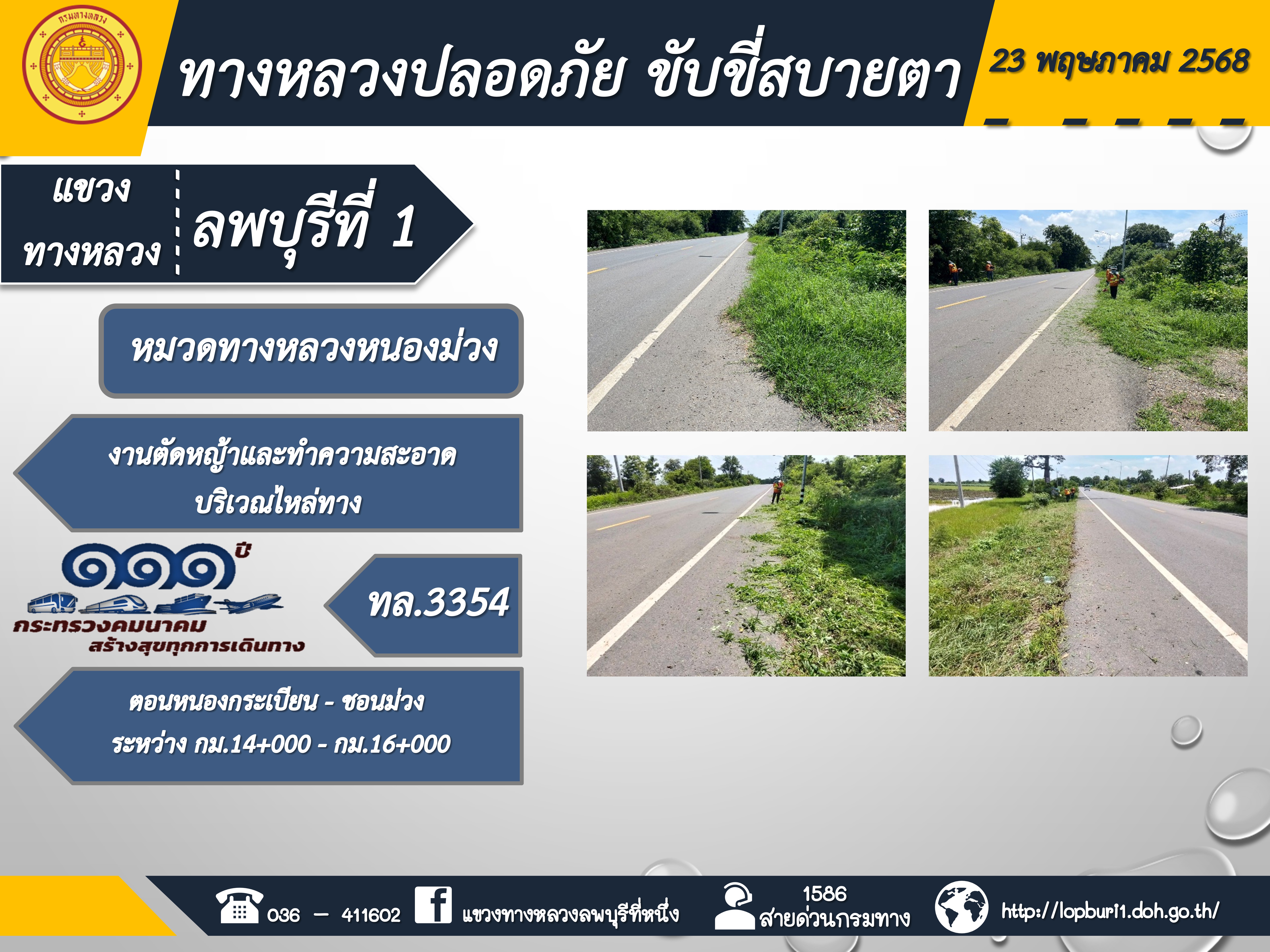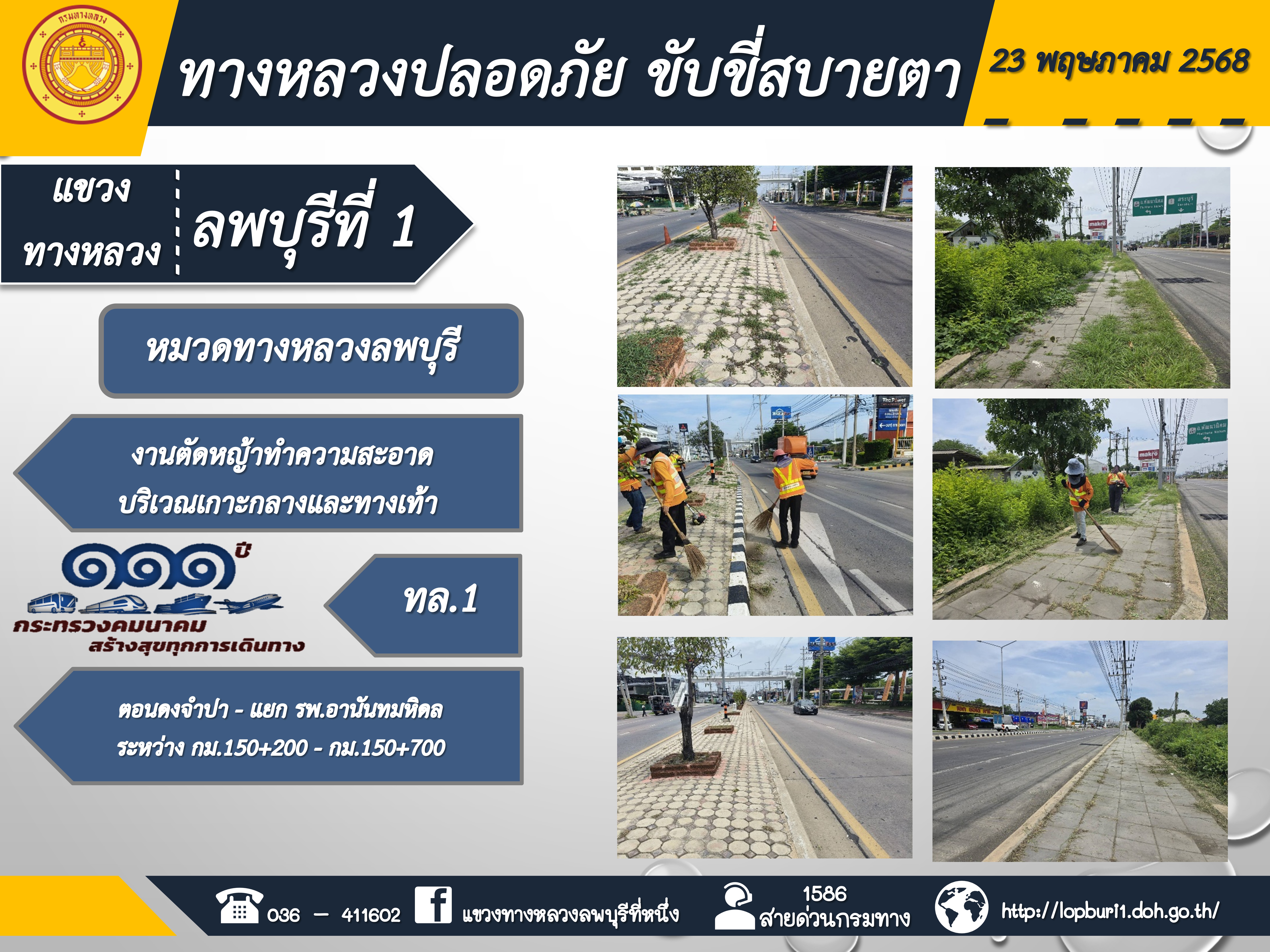 ทางหลวงปลอดภัยขับขี่สบายตา แขวงทางหลวงลพบุรีที่ 1 ประจำวันที่ 23 พฤษภาคม 2568