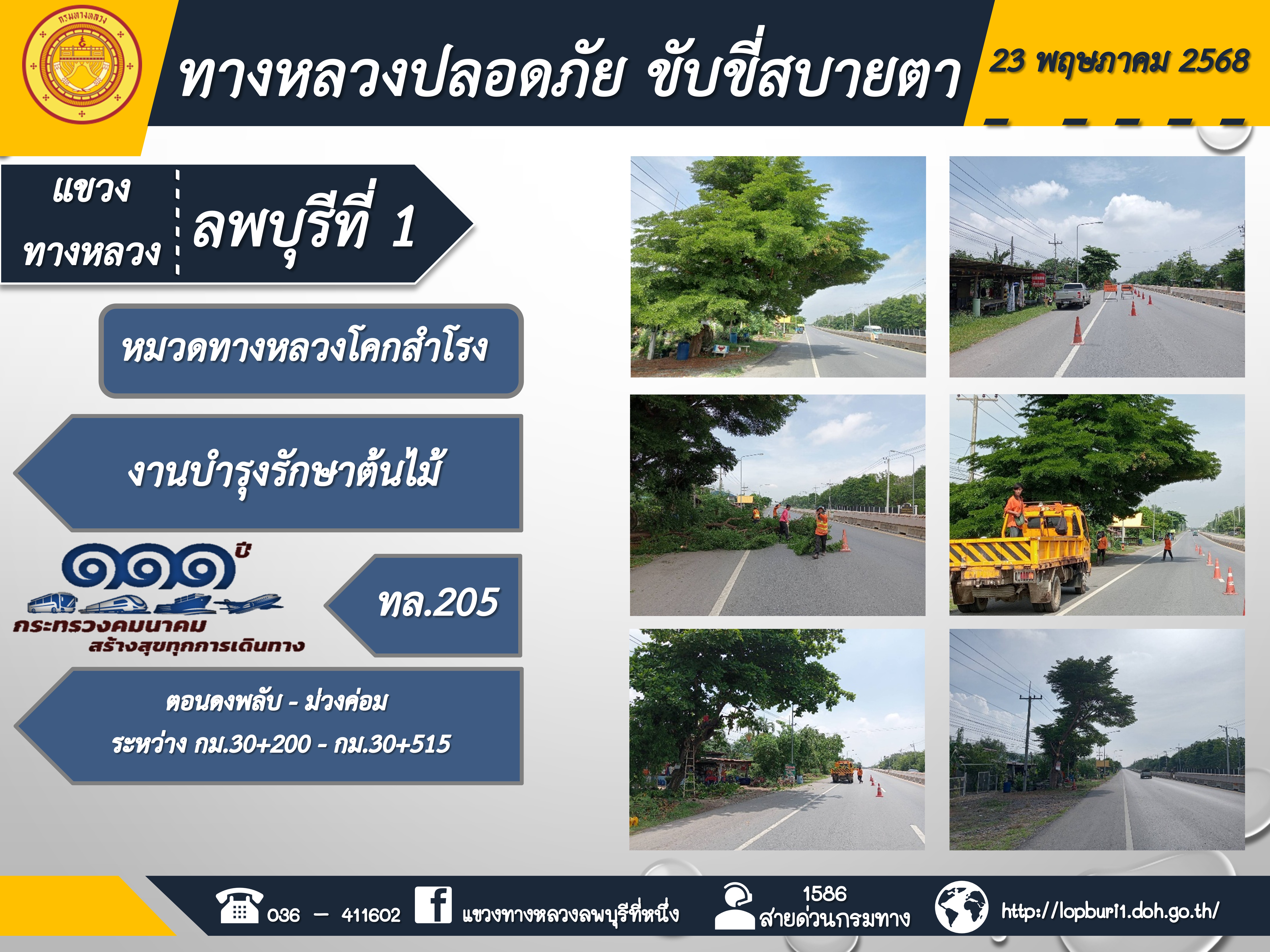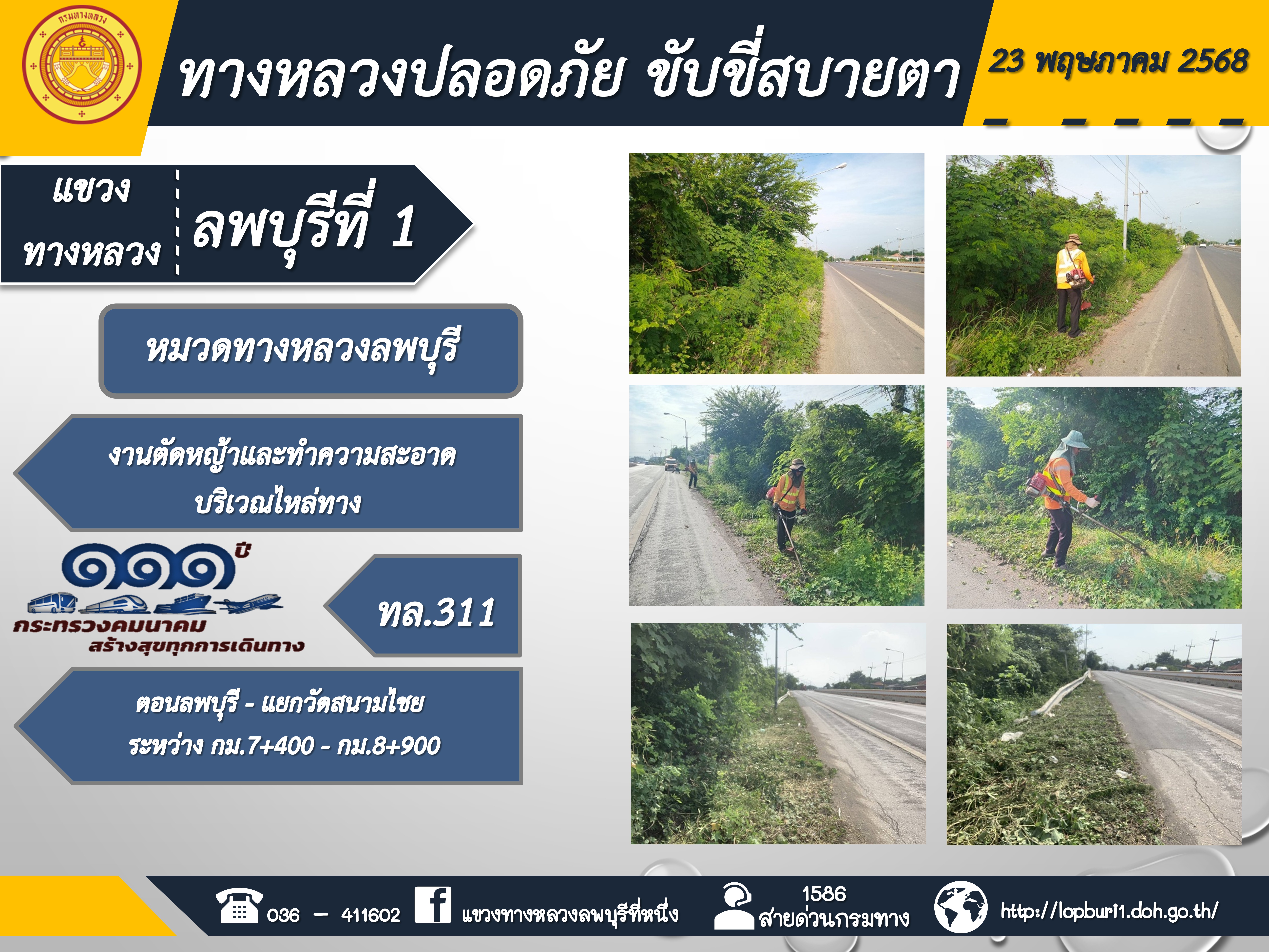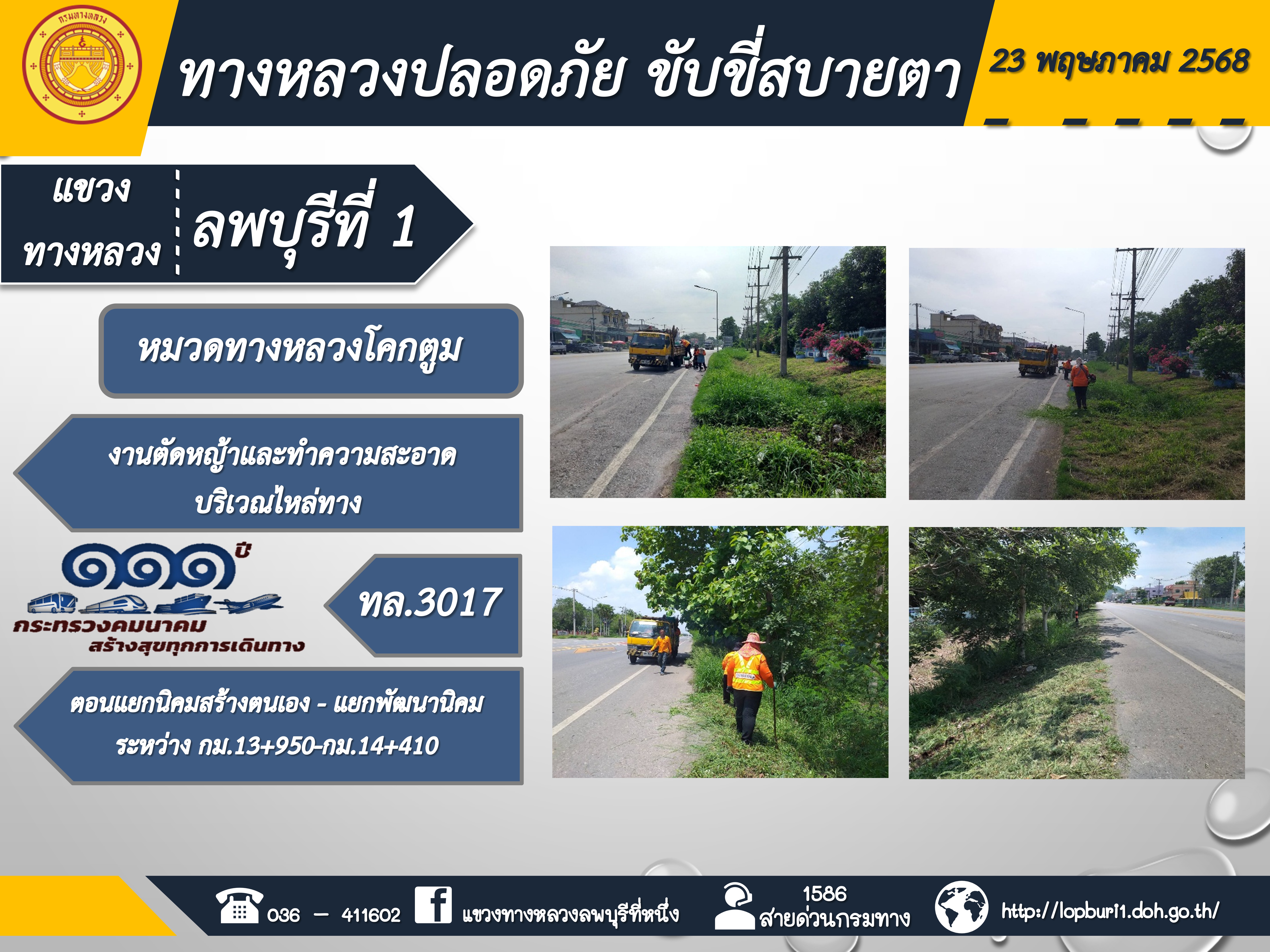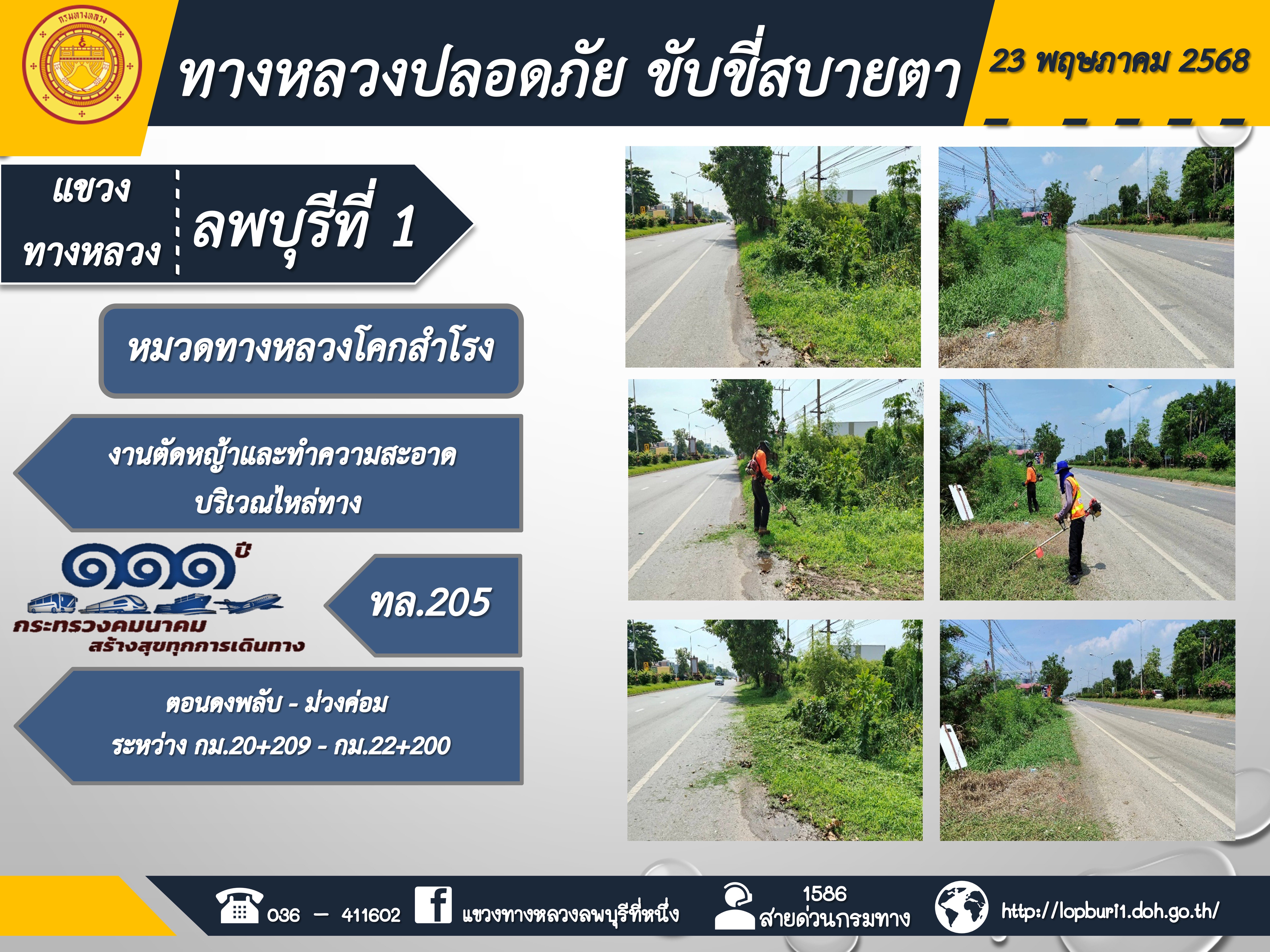 ทางหลวงปลอดภัยขับขี่สบายตา แขวงทางหลวงลพบุรีที่ 1 ประจำวันที่ 23 พฤษภาคม 2568