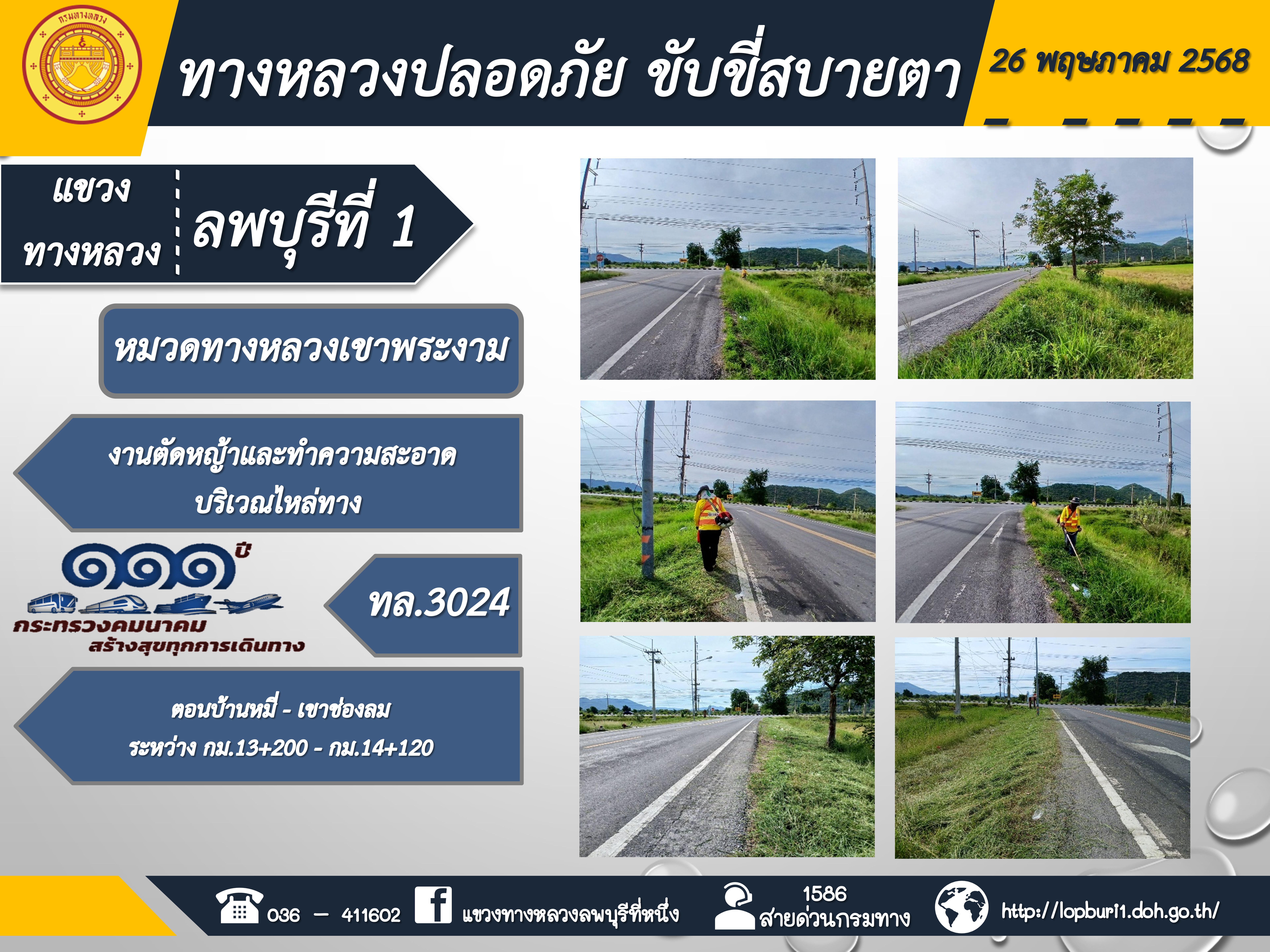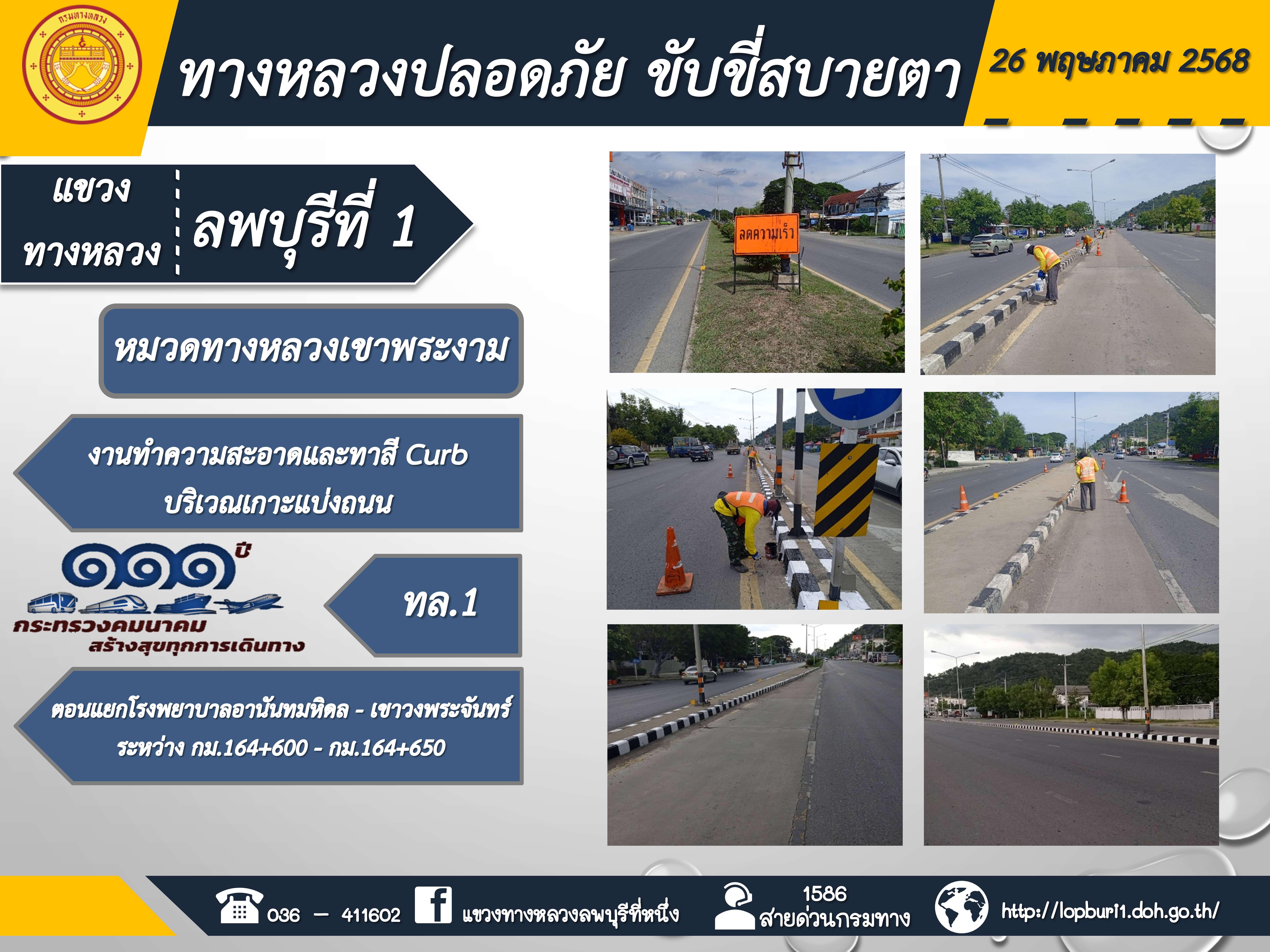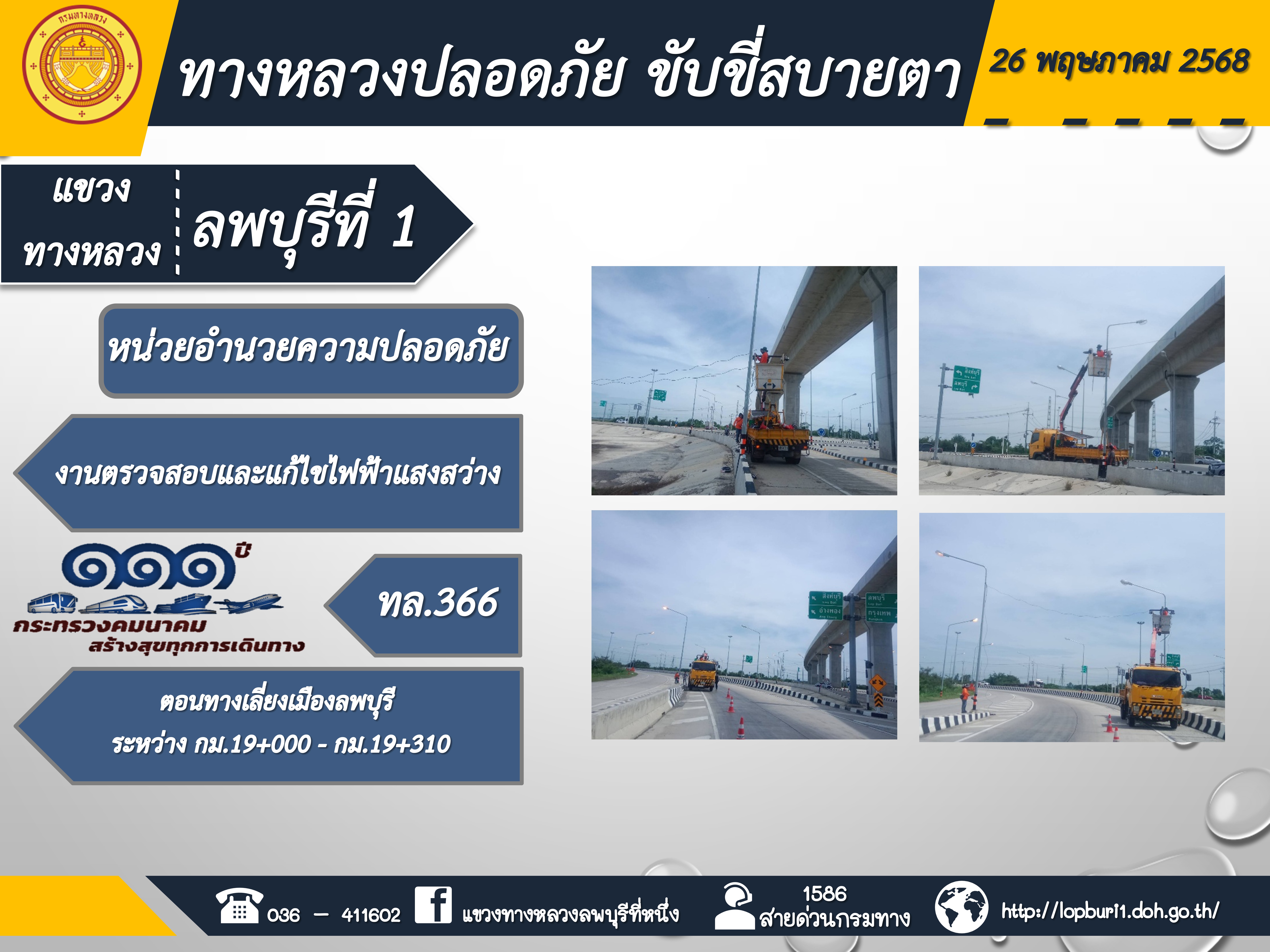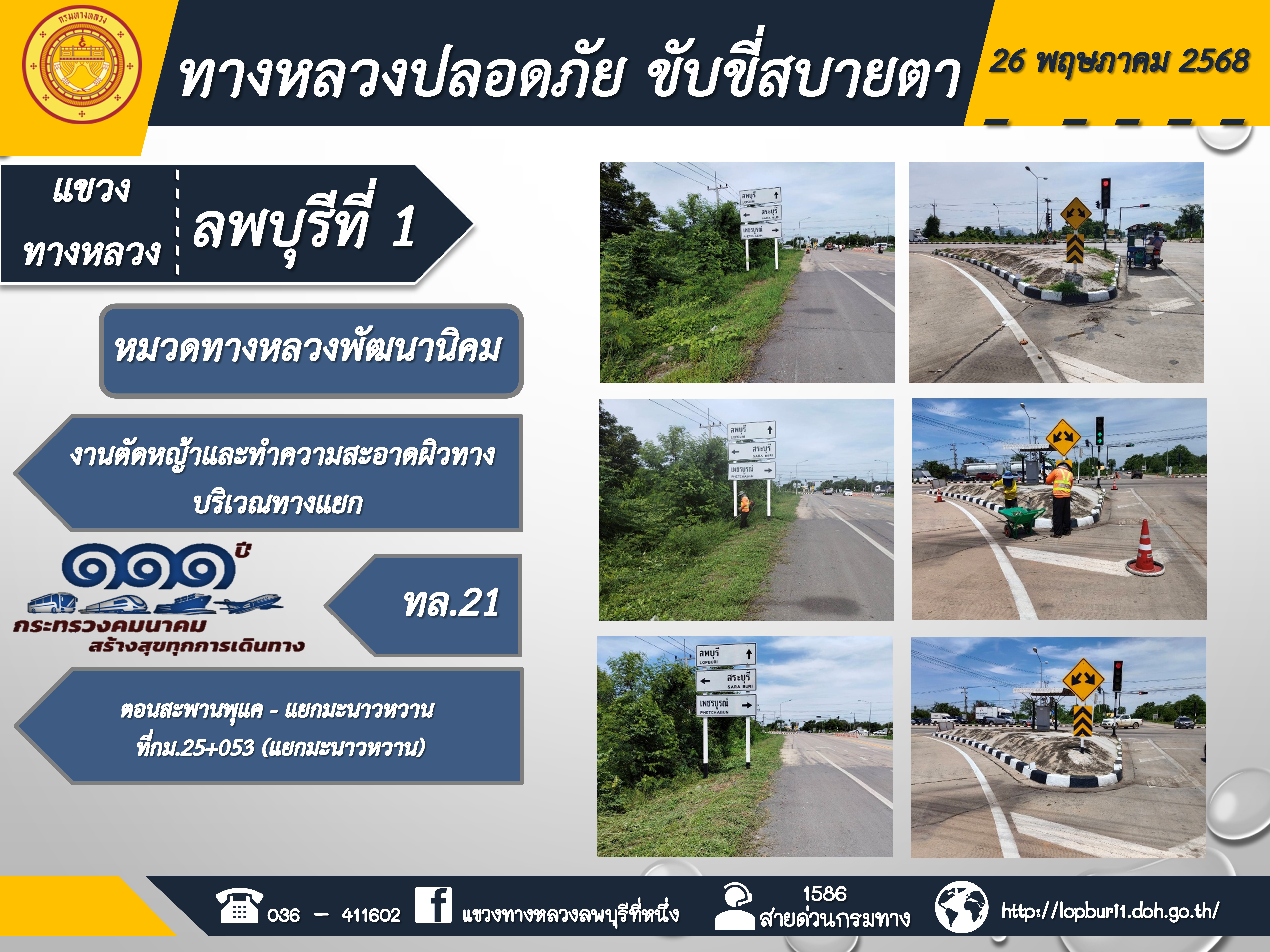ทางหลวงปลอดภัยขับขี่สบายตา แขวงทางหลวงลพบุรีที่ 1 ประจำวันที่ 26 พฤษภาคม 2568