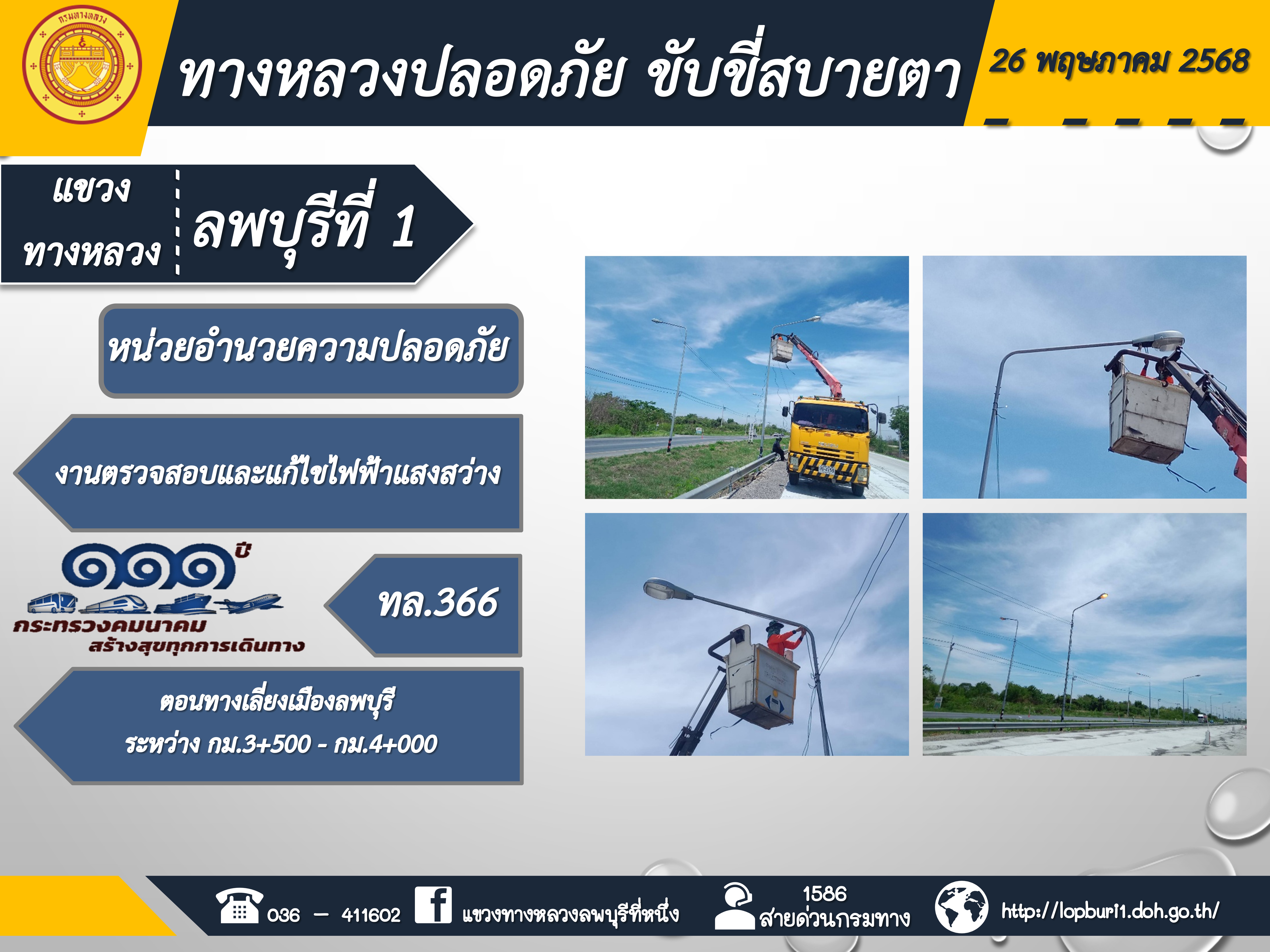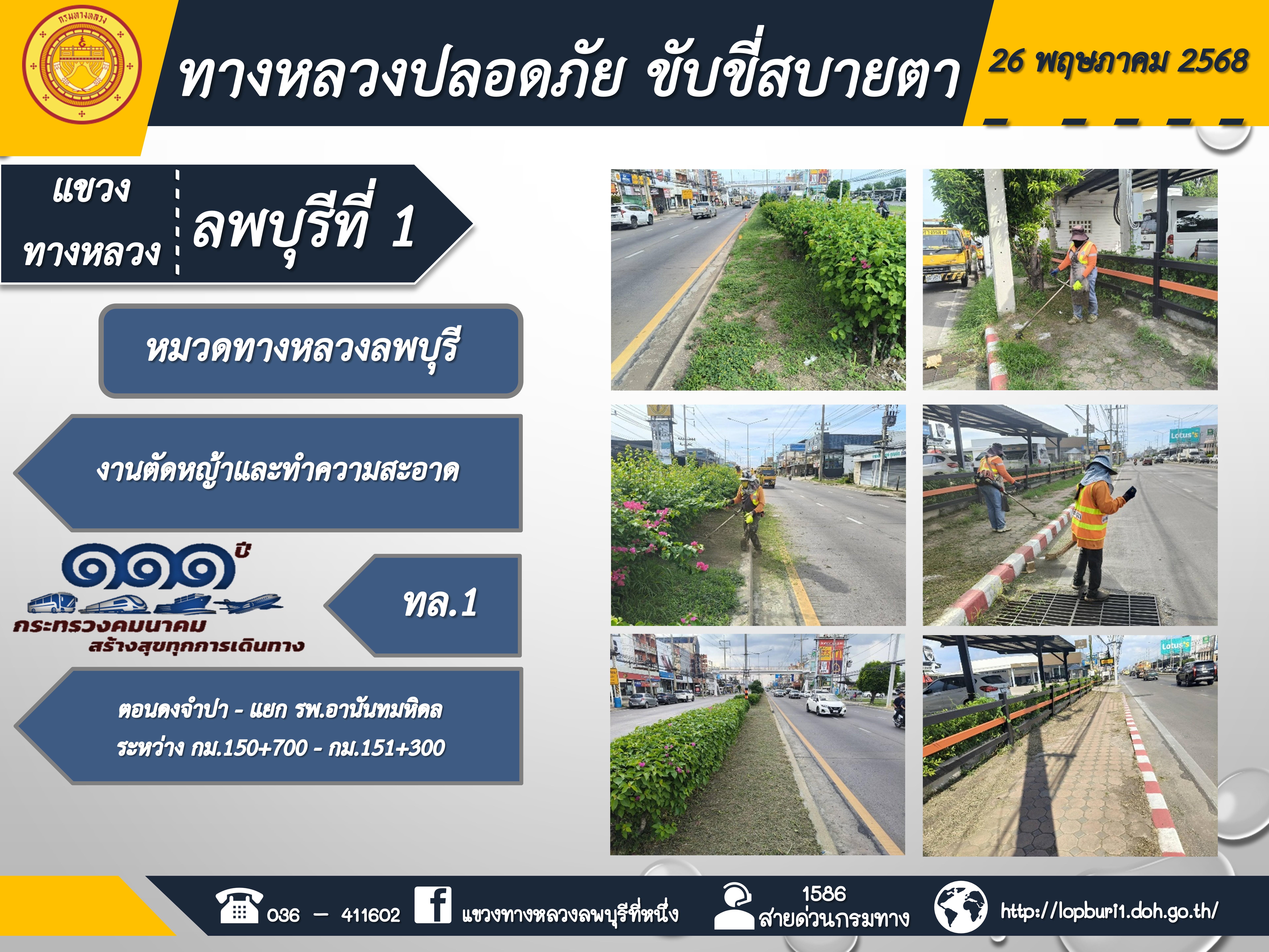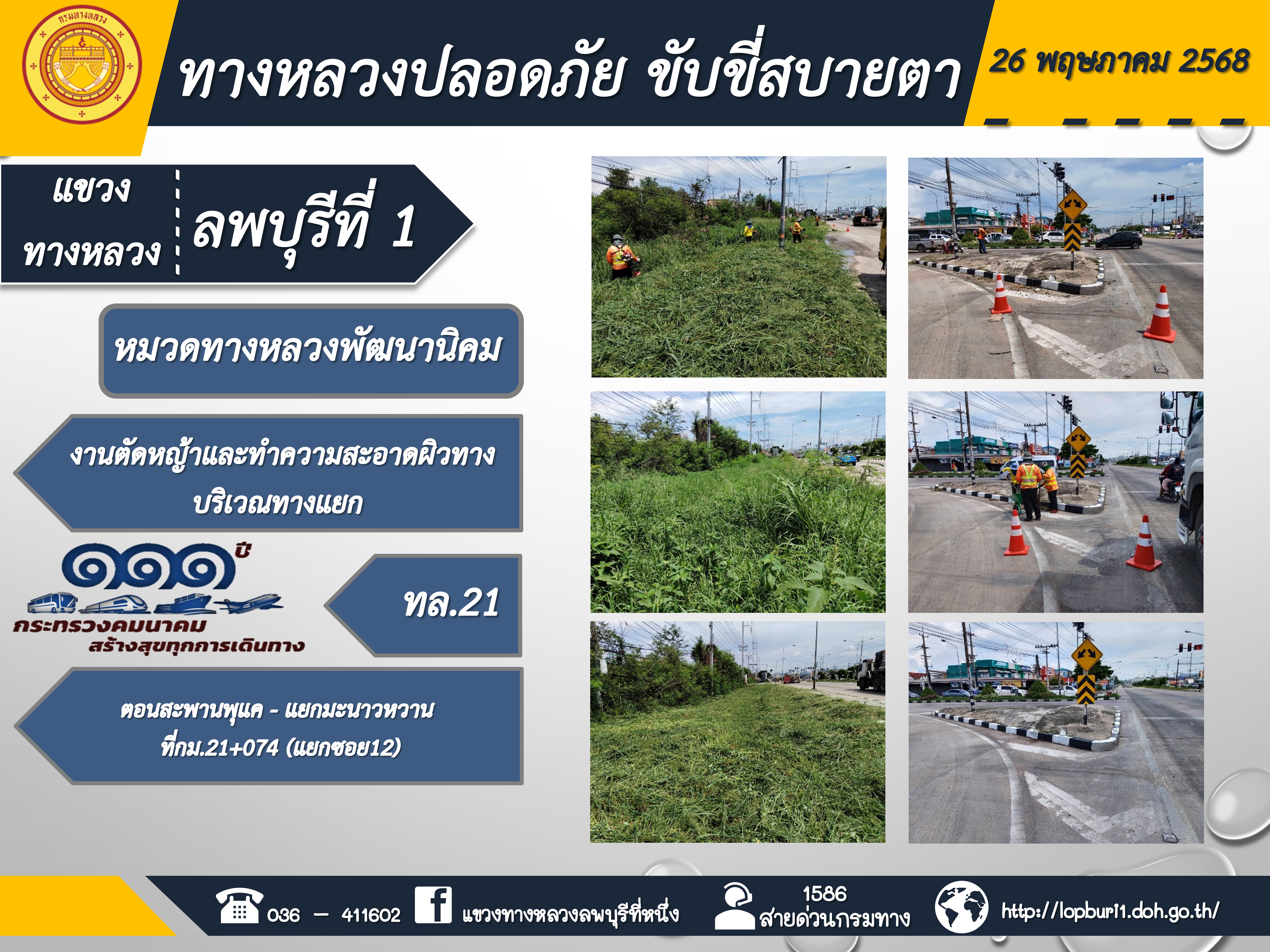 ทางหลวงปลอดภัยขับขี่สบายตา แขวงทางหลวงลพบุรีที่ 1 ประจำวันที่ 26 พฤษภาคม 2568