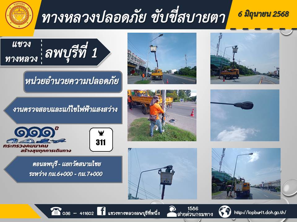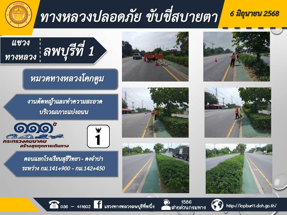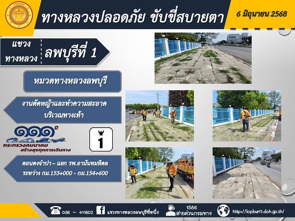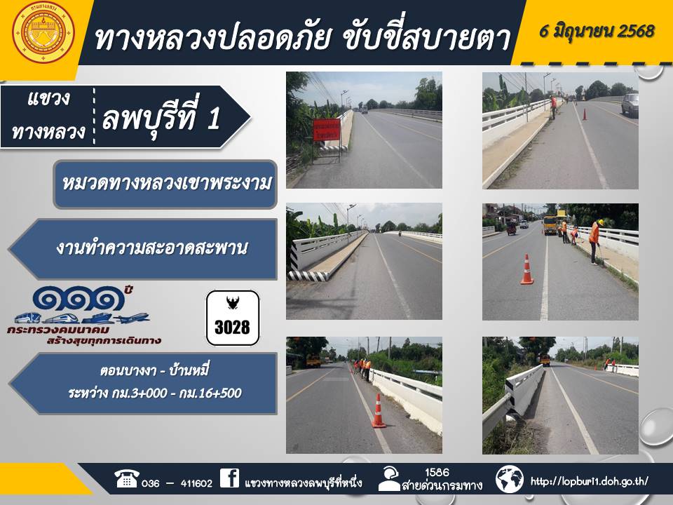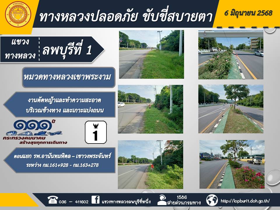 ทางหลวงปลอดภัยขับขี่สบายตา แขวงทางหลวงลพบุรีที่ 1 ประจำวันที่ 6 มิถุนายน 2568