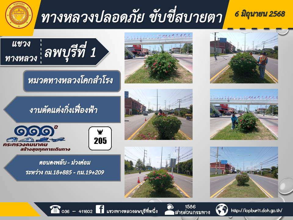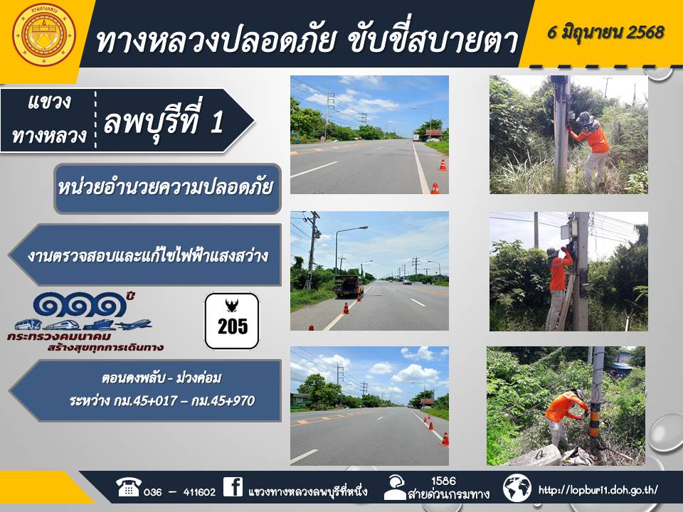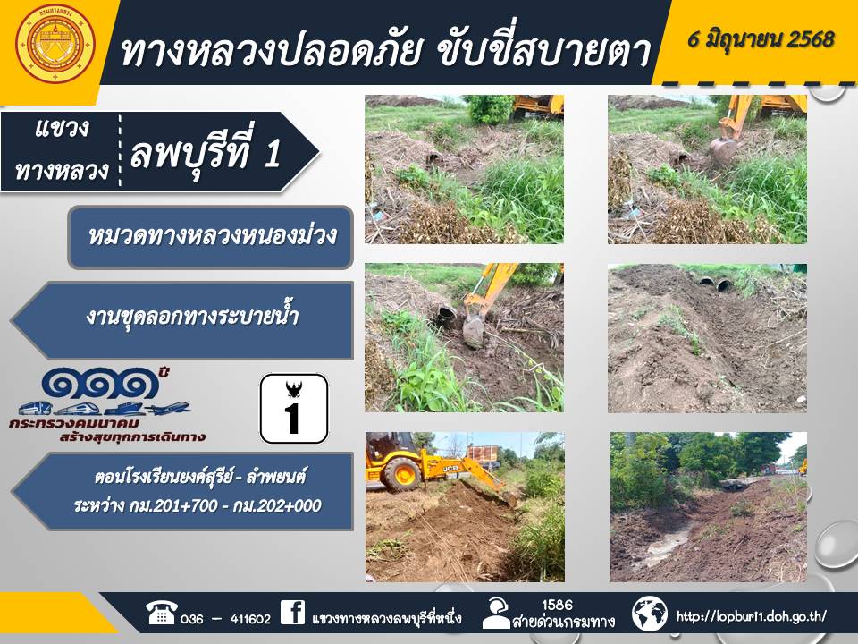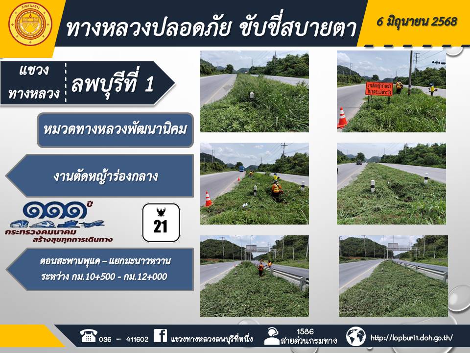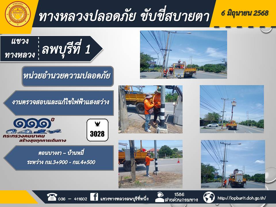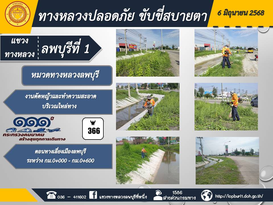 ทางหลวงปลอดภัยขับขี่สบายตา แขวงทางหลวงลพบุรีที่ 1 ประจำวันที่ 6 มิถุนายน 2568