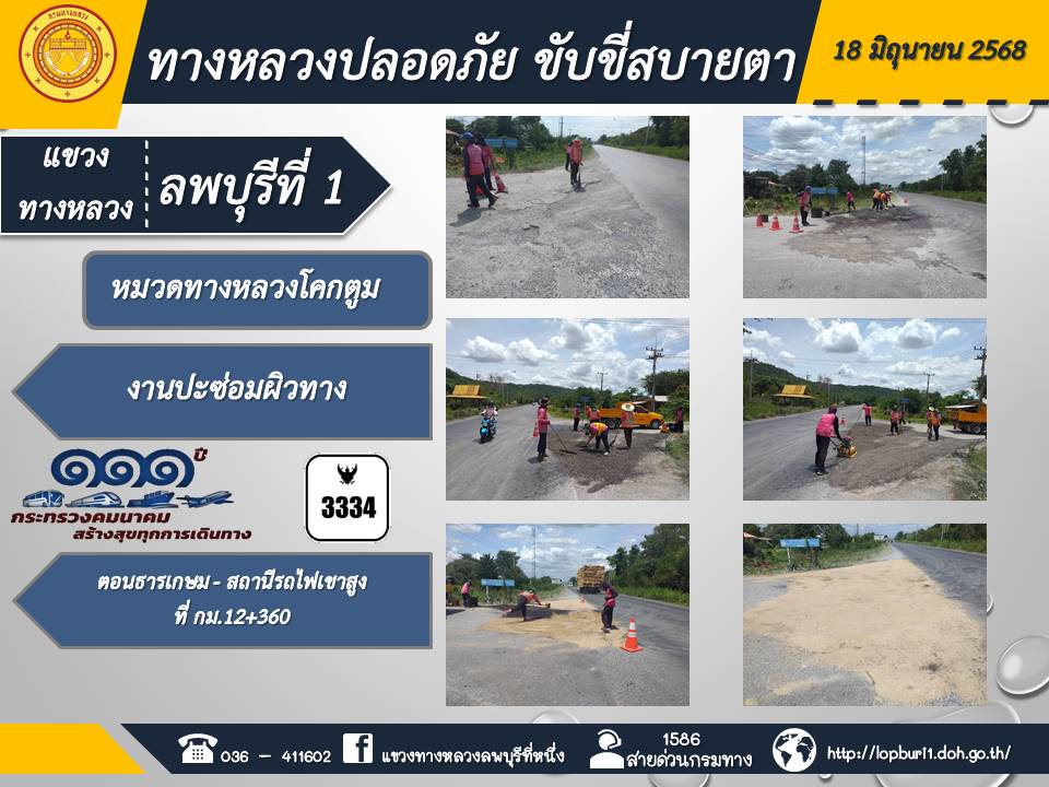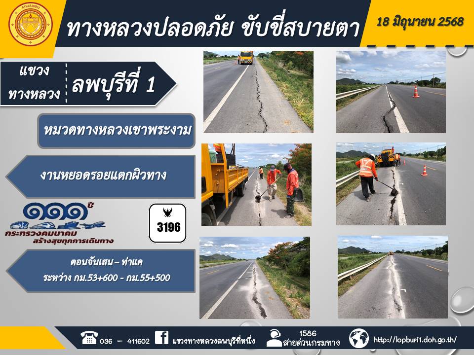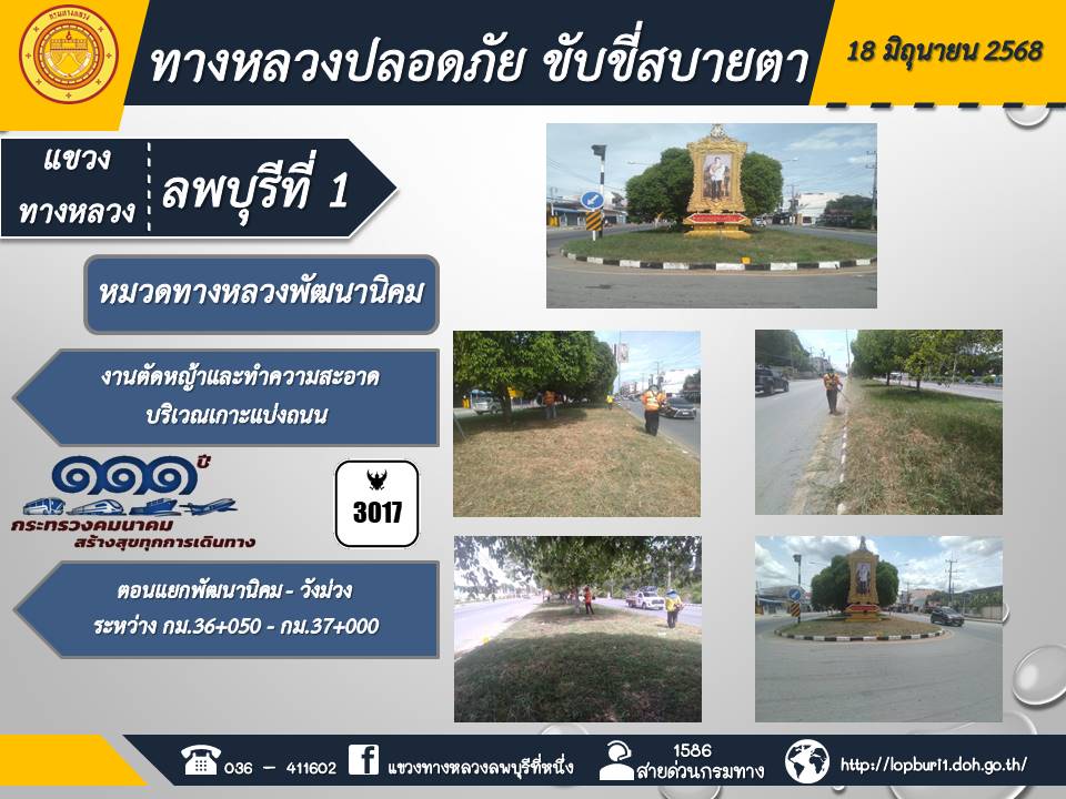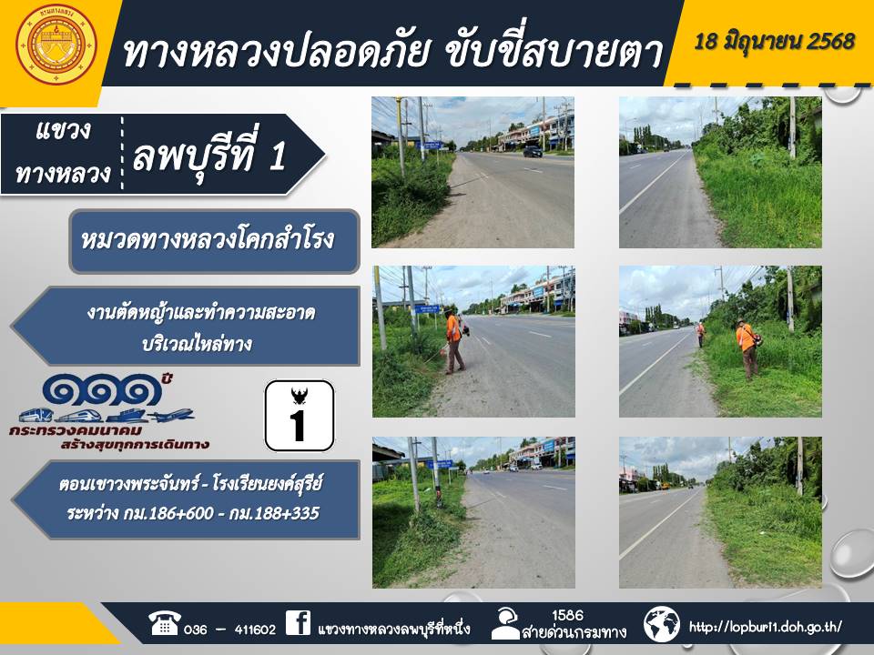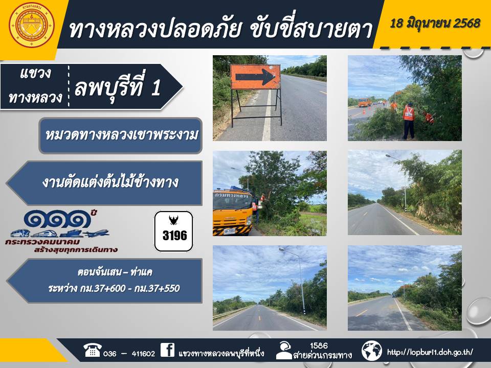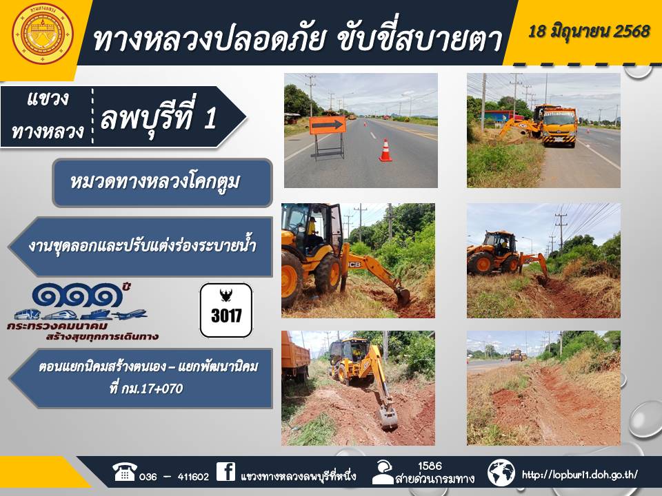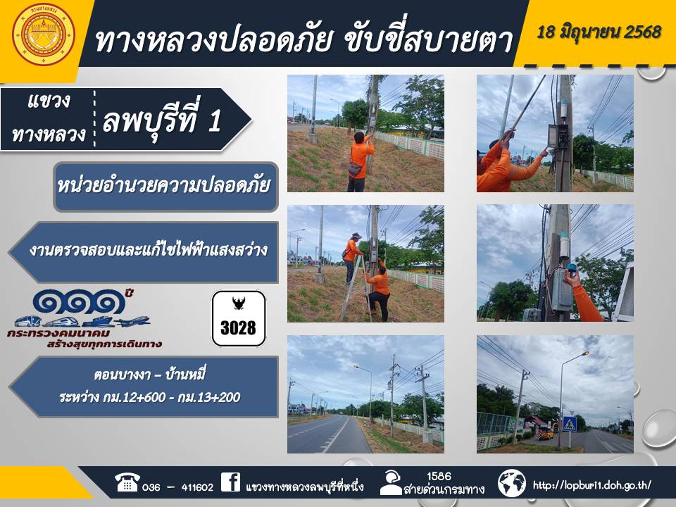 ทางหลวงปลอดภัยขับขี่สบายตา แขวงทางหลวงลพบุรีที่ 1 ประจำวันที่ 18 มิถุนายน 2568