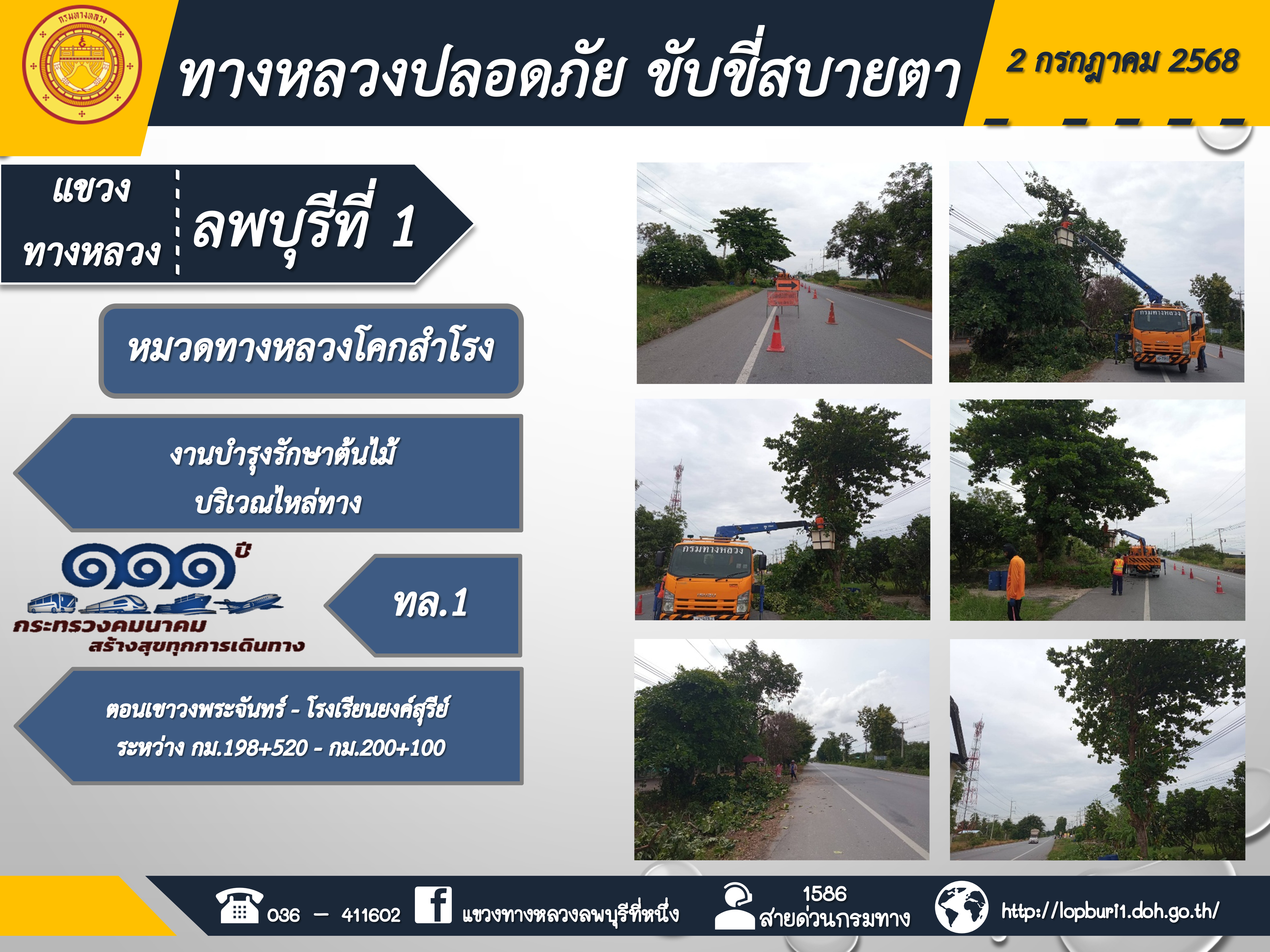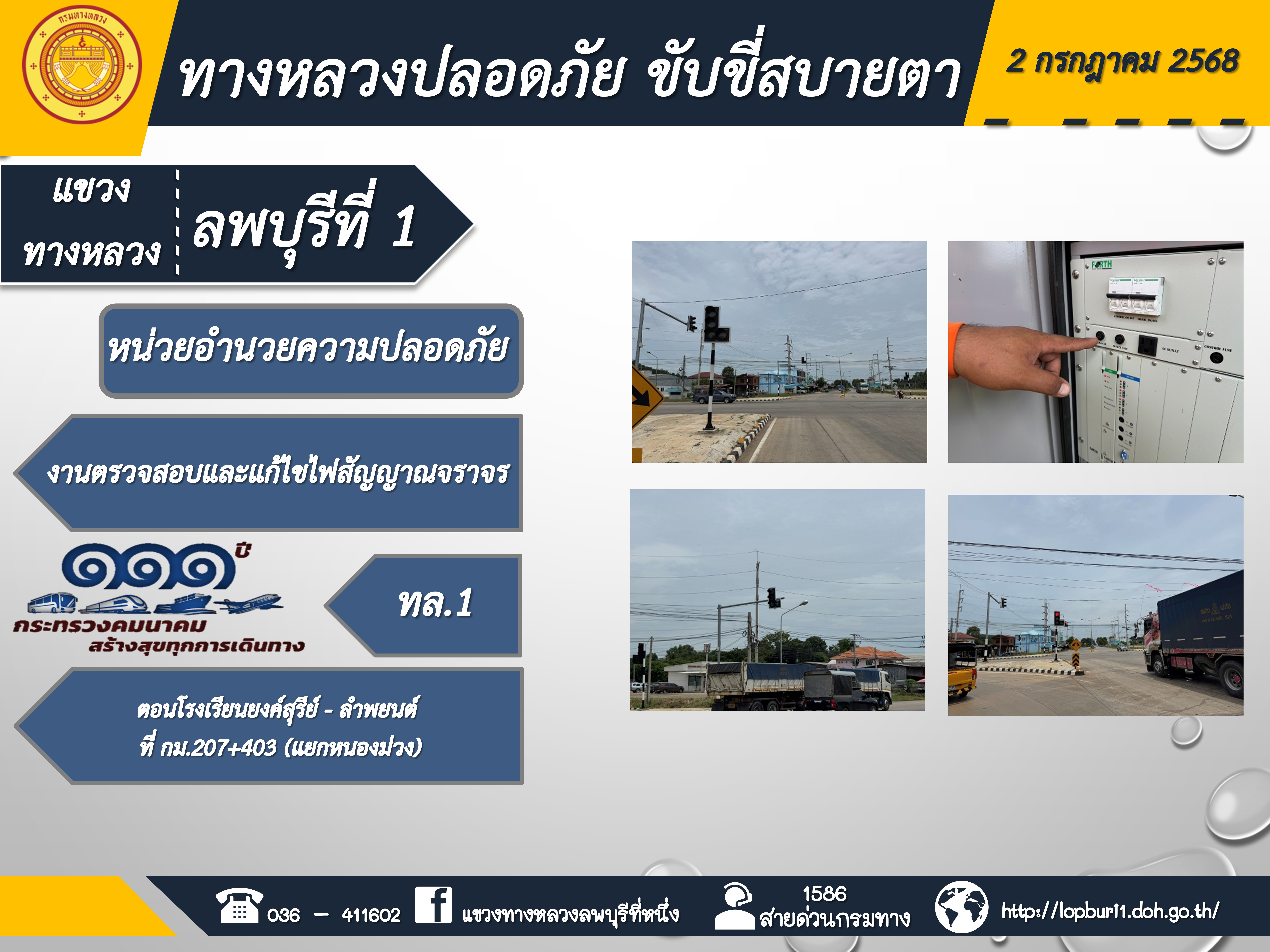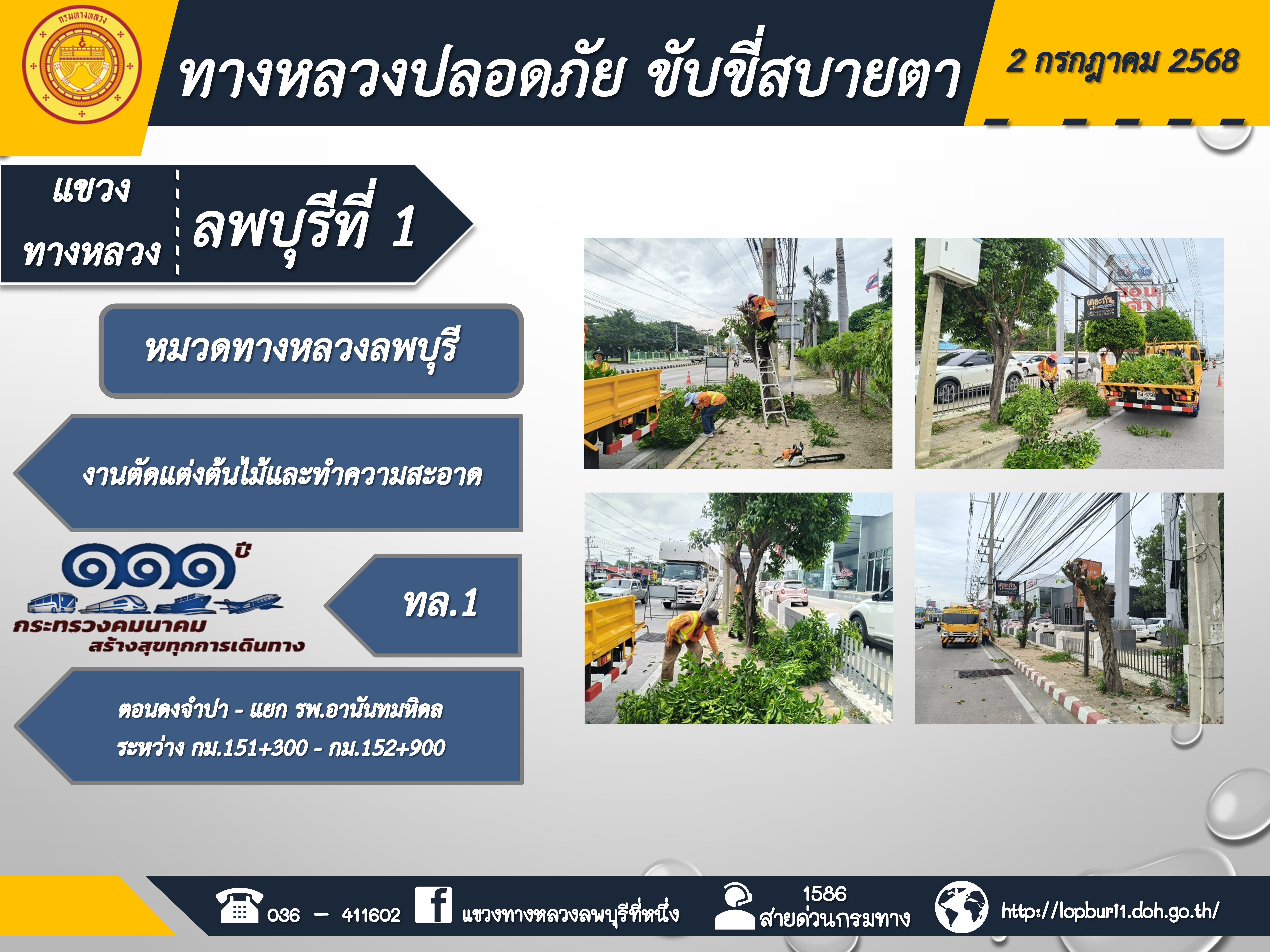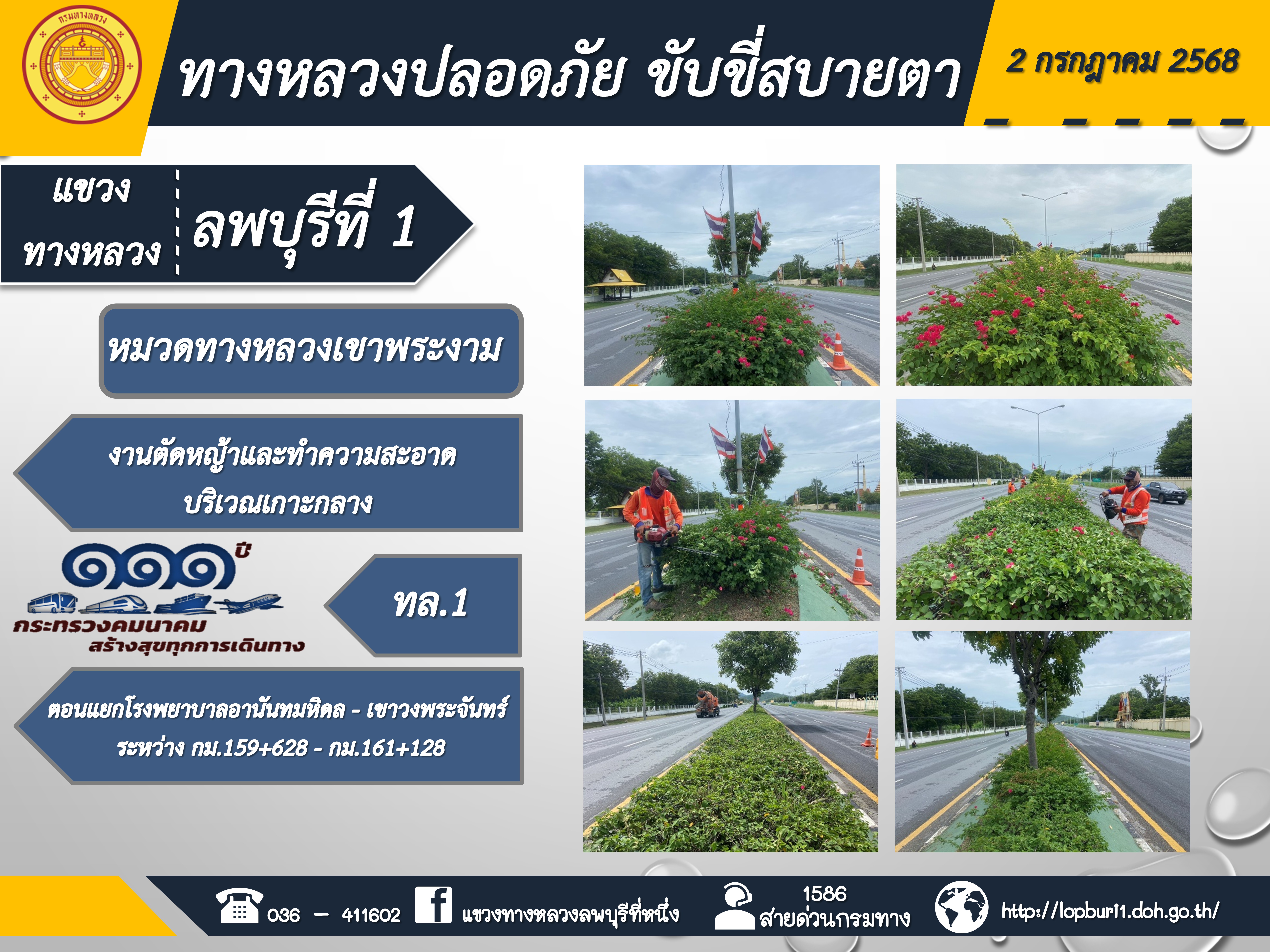 ทางหลวงปลอดภัยขับขี่สบายตา แขวงทางหลวงลพบุรีที่ 1 ประจำวันที่ 1 กรกฎาคม 2568