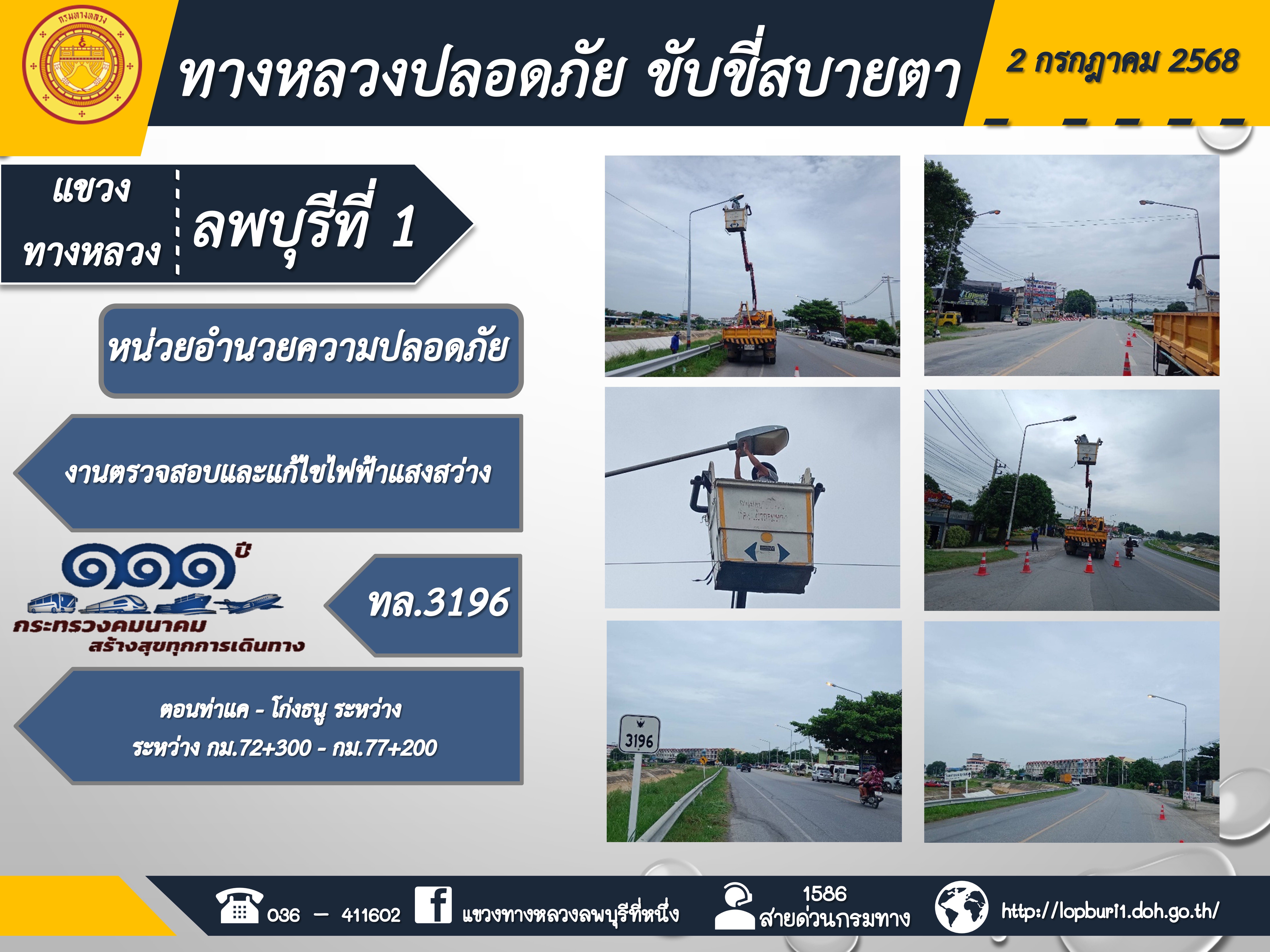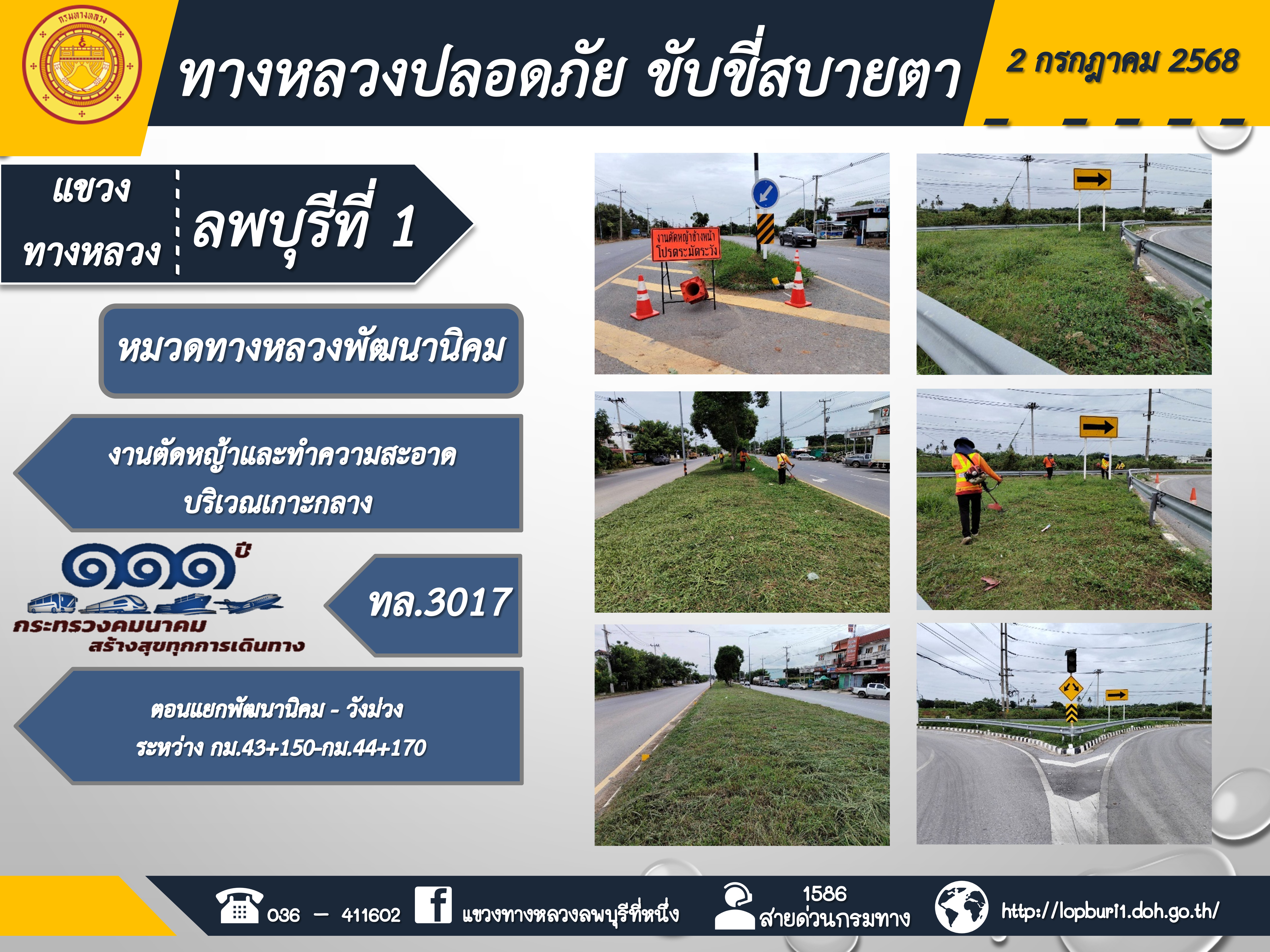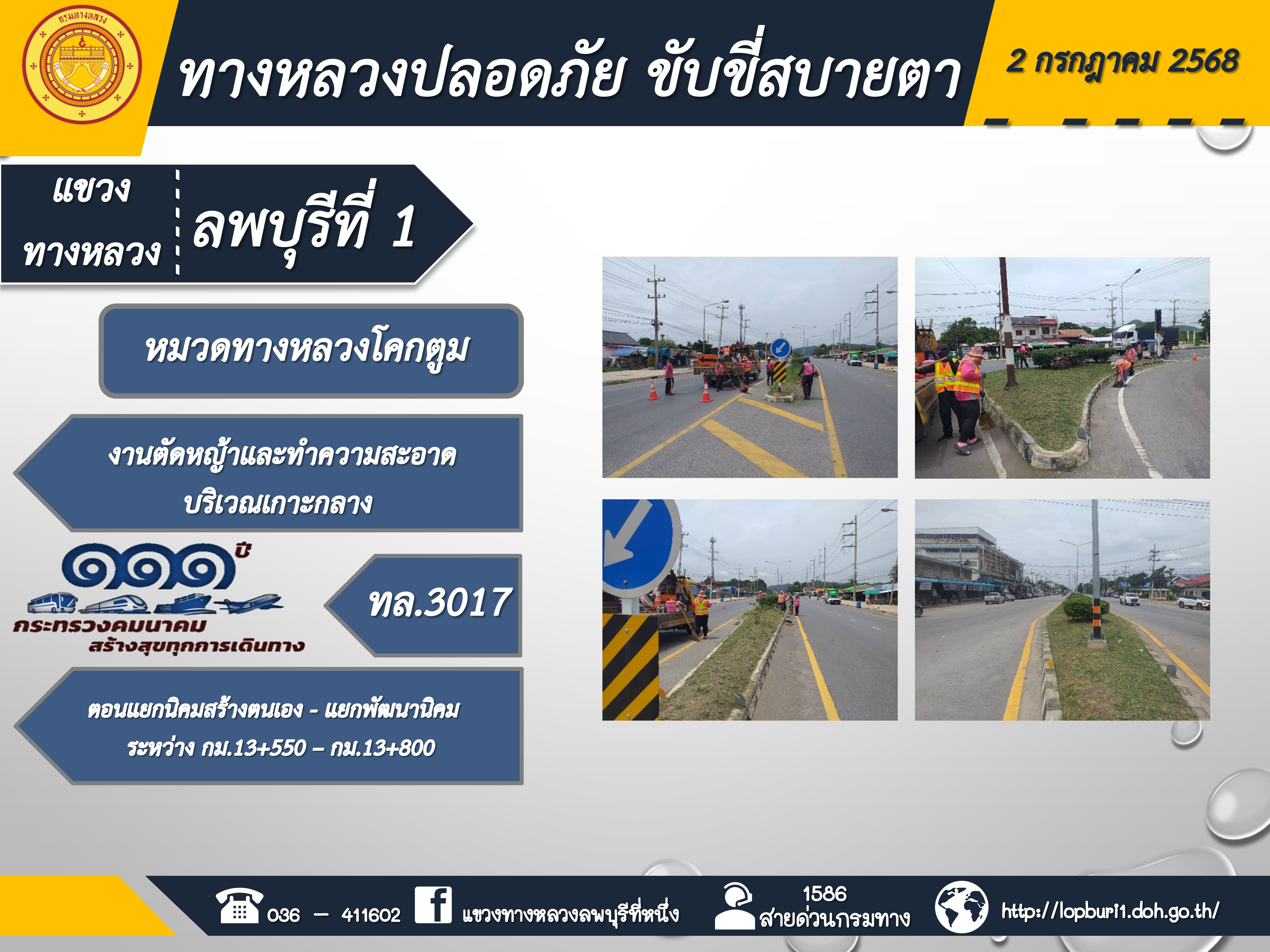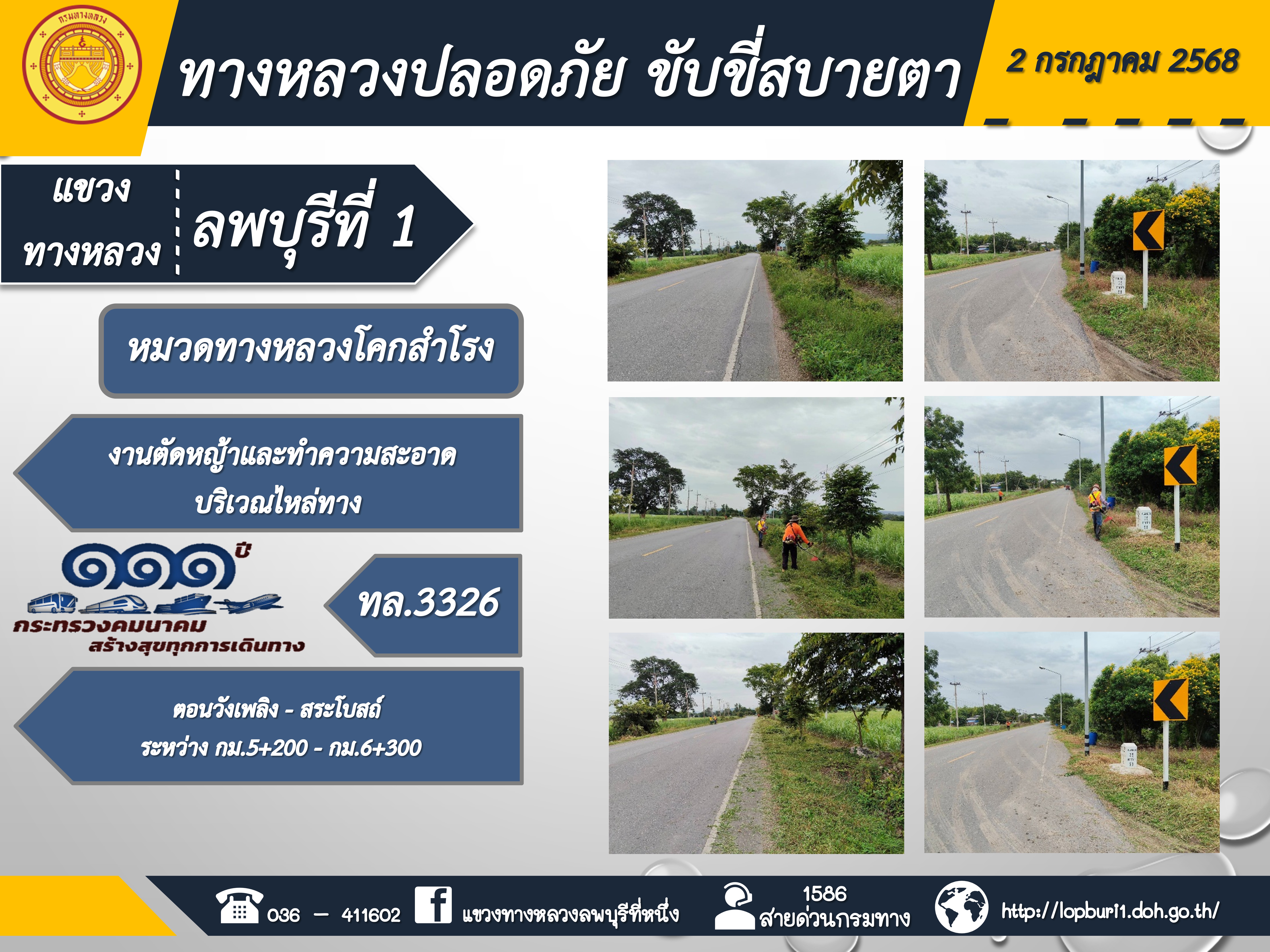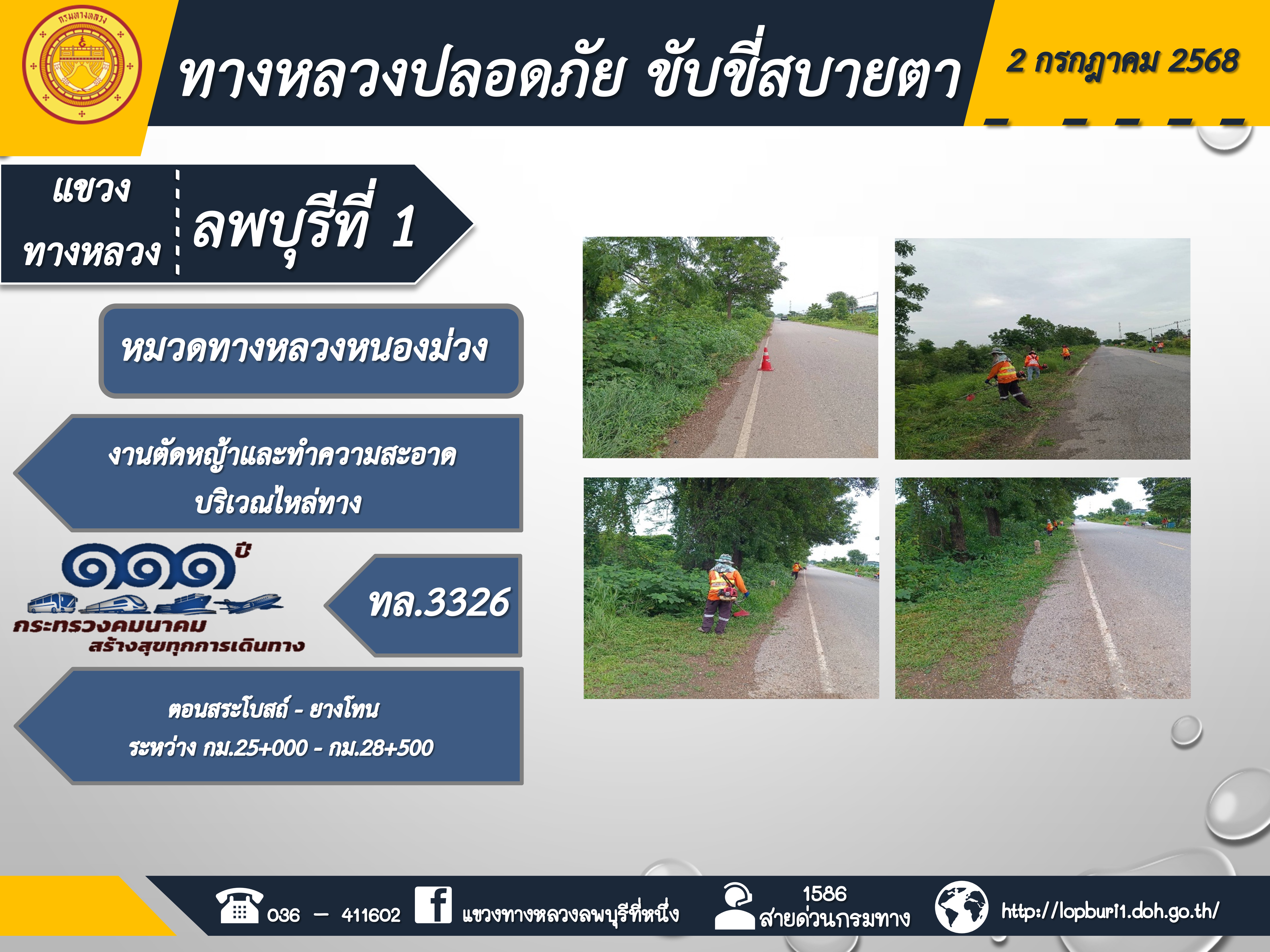 ทางหลวงปลอดภัยขับขี่สบายตา แขวงทางหลวงลพบุรีที่ 1 ประจำวันที่ 1 กรกฎาคม 2568
