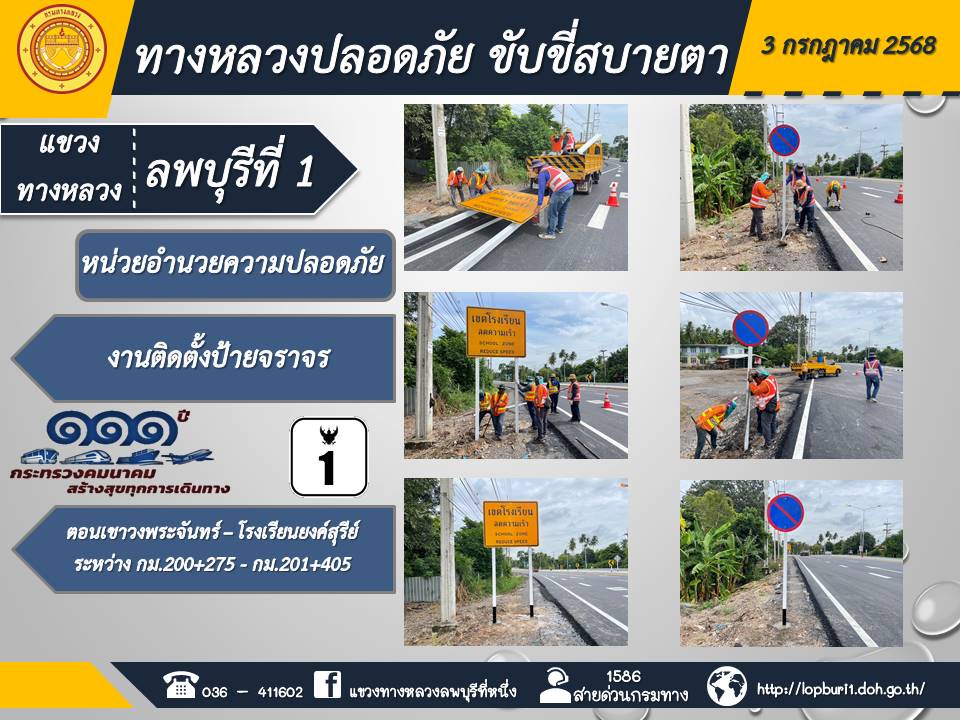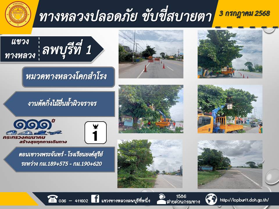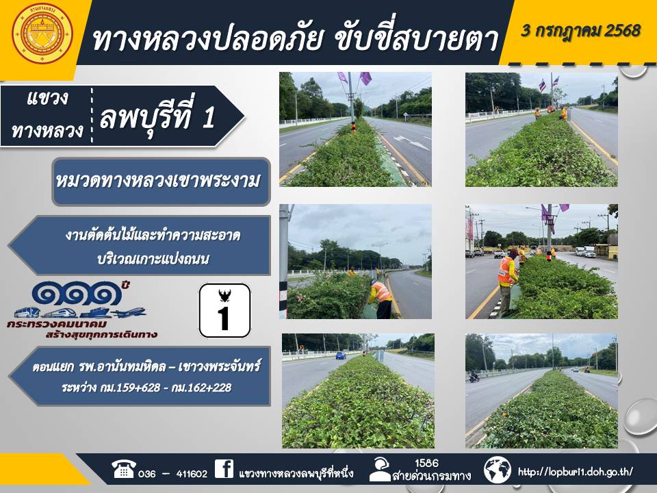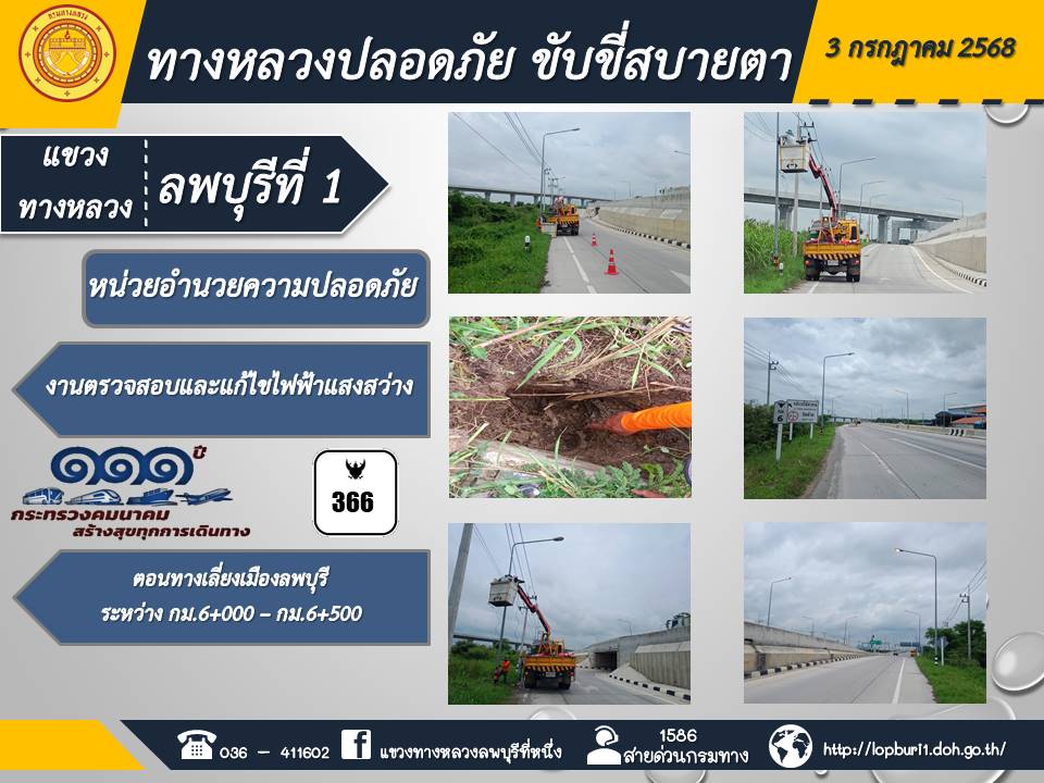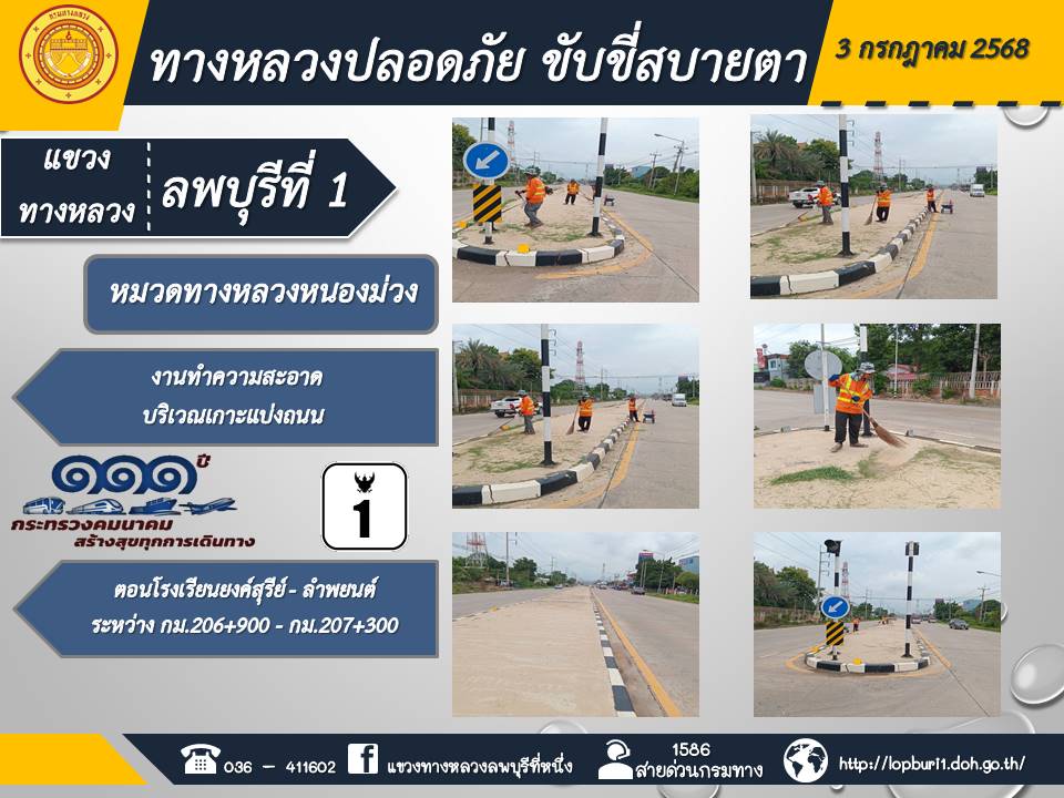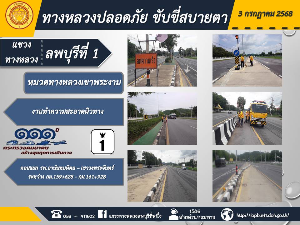 ทางหลวงปลอดภัยขับขี่สบายตา แขวงทางหลวงลพบุรีที่ 1 ประจำวันที่ 3 กรกฎาคม 2568