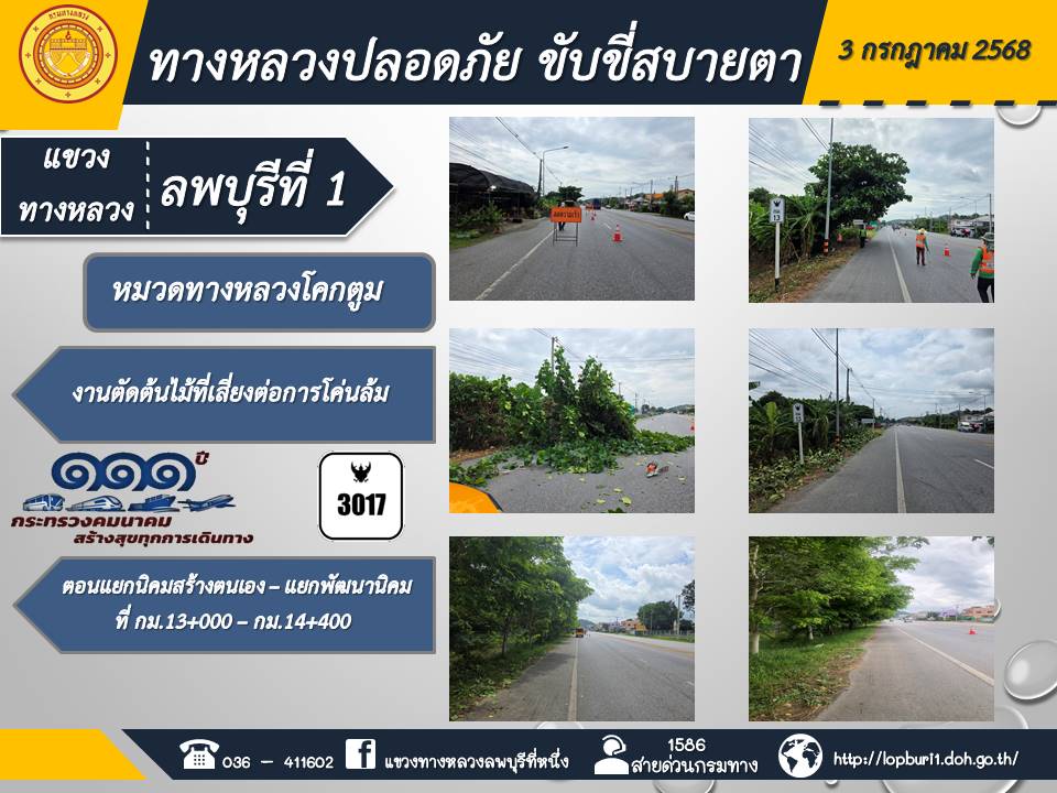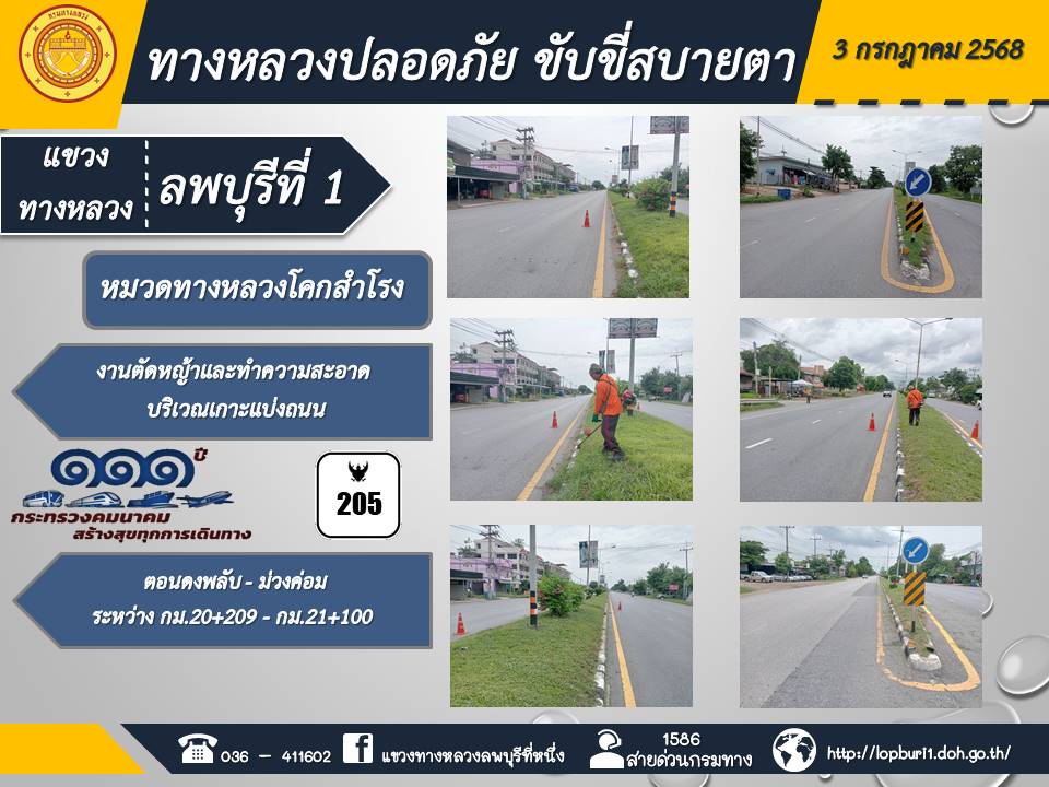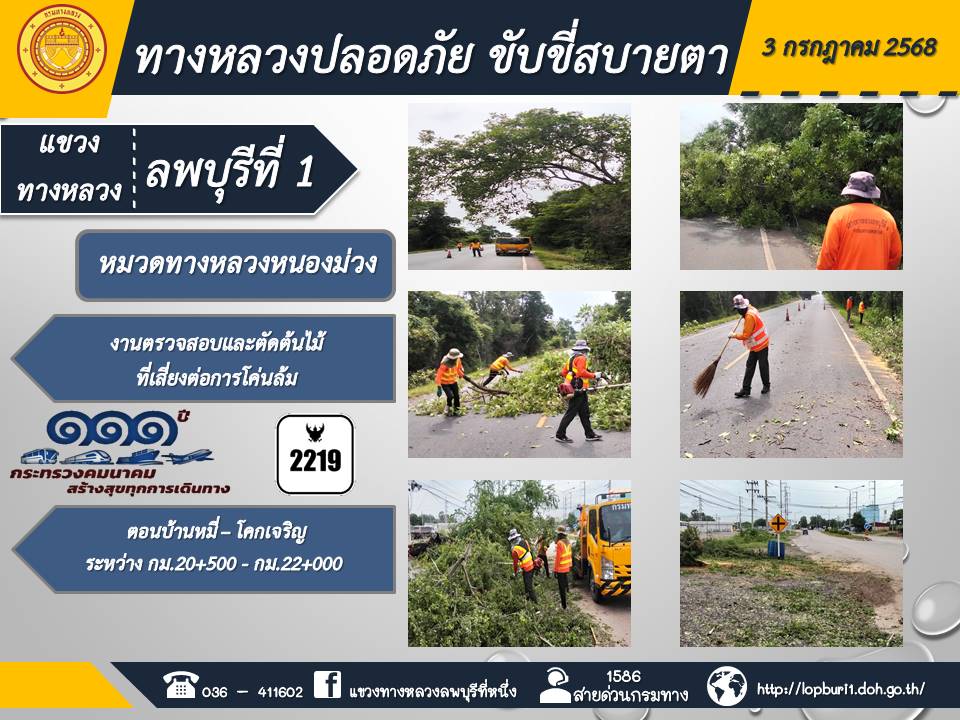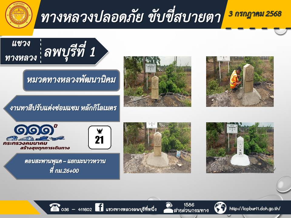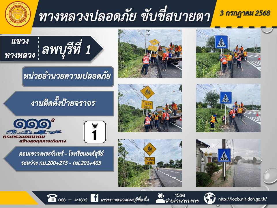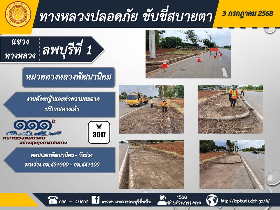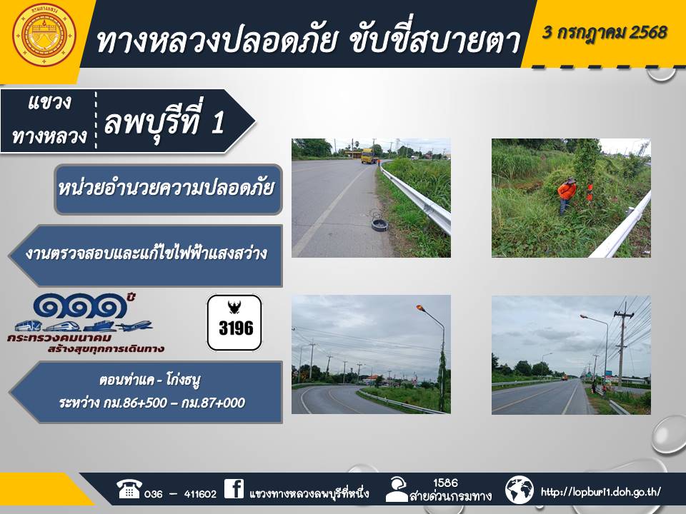 ทางหลวงปลอดภัยขับขี่สบายตา แขวงทางหลวงลพบุรีที่ 1 ประจำวันที่ 3 กรกฎาคม 2568