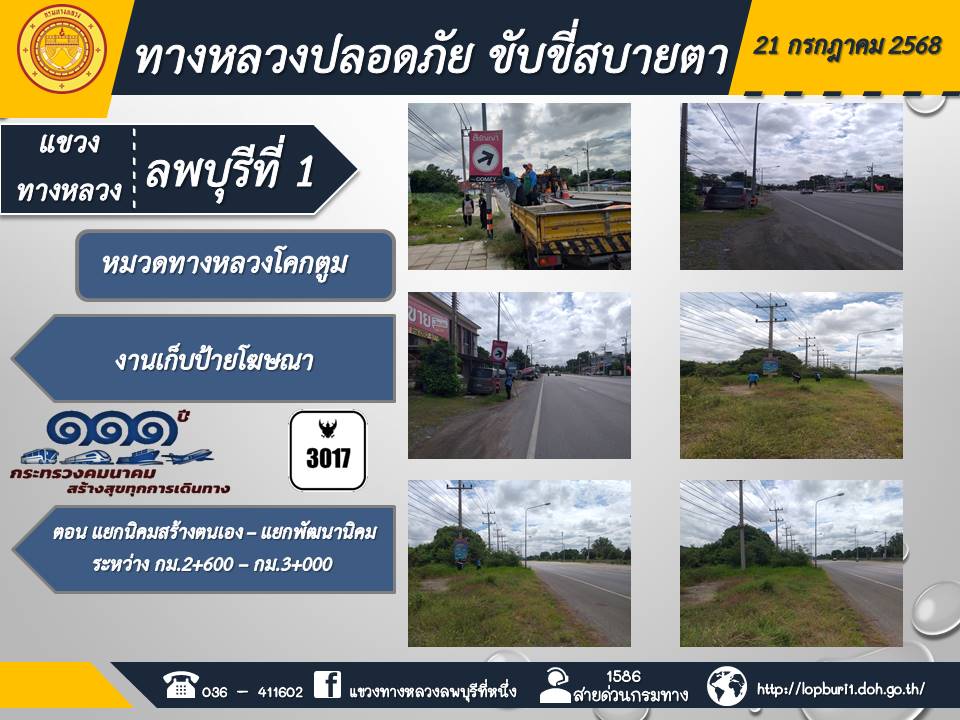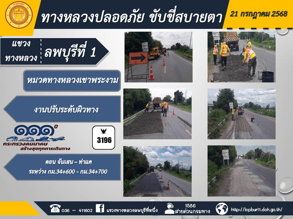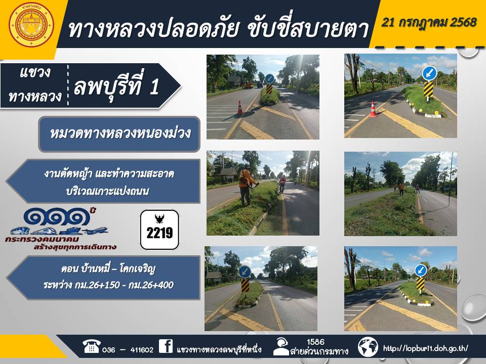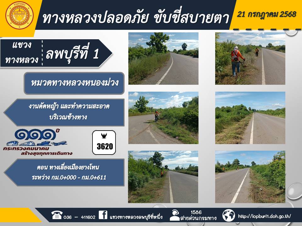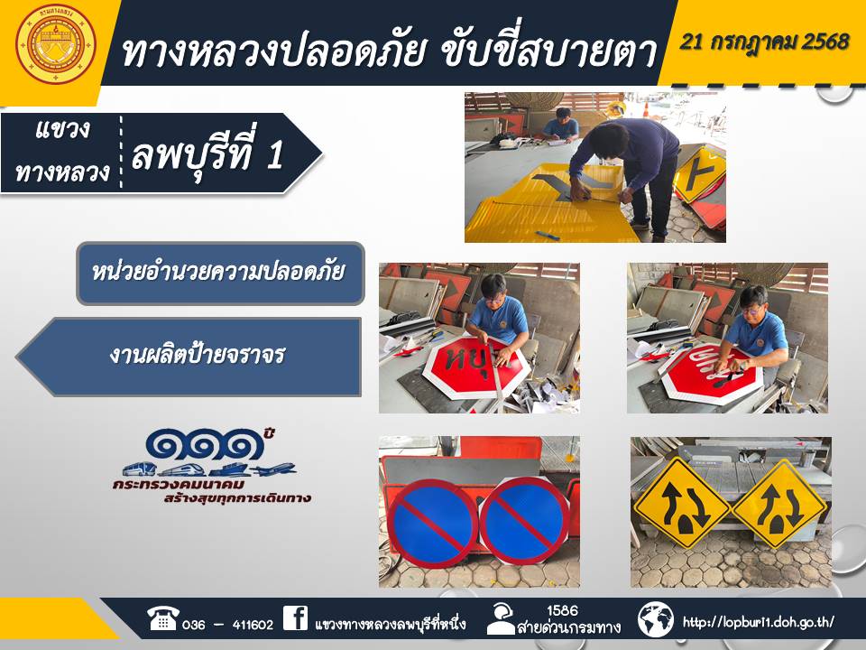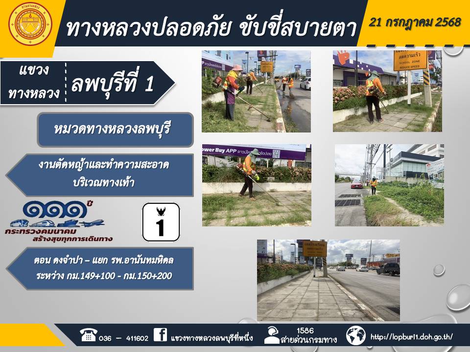 ทางหลวงปลอดภัยขับขี่สบายตา แขวงทางหลวงลพบุรีที่ 1 ประจำวันที่ 21 กรกฎาคม 2568