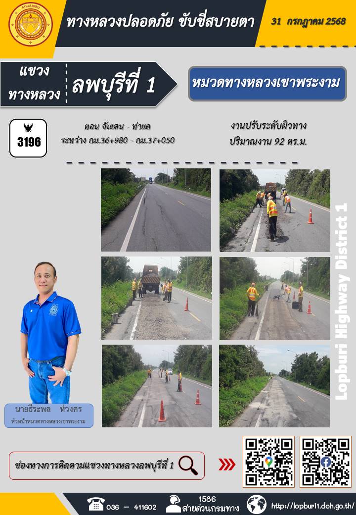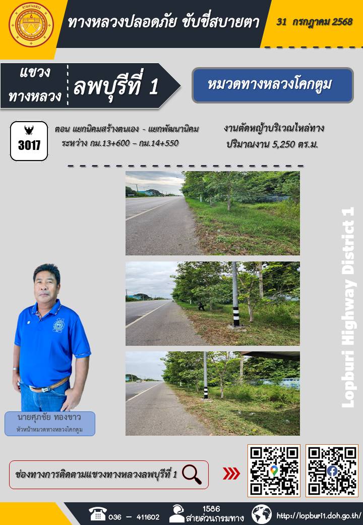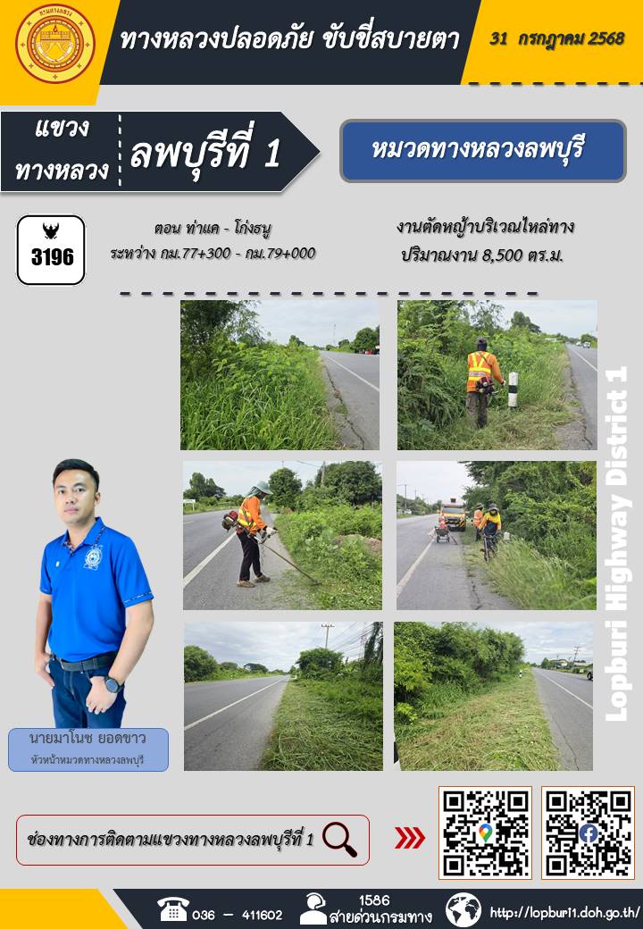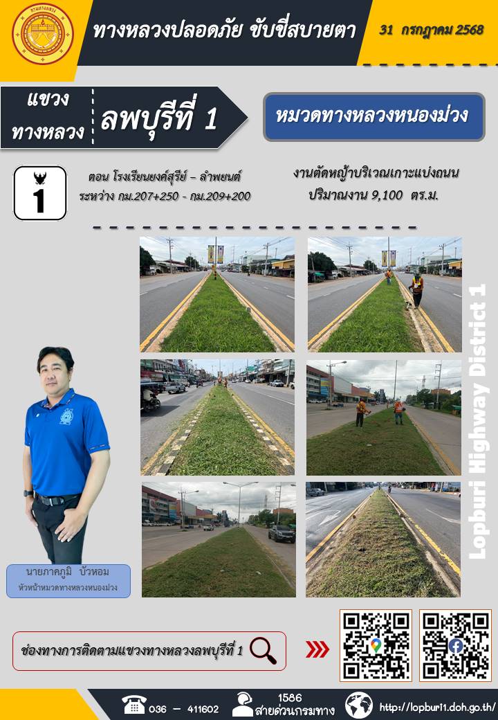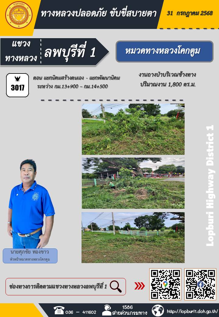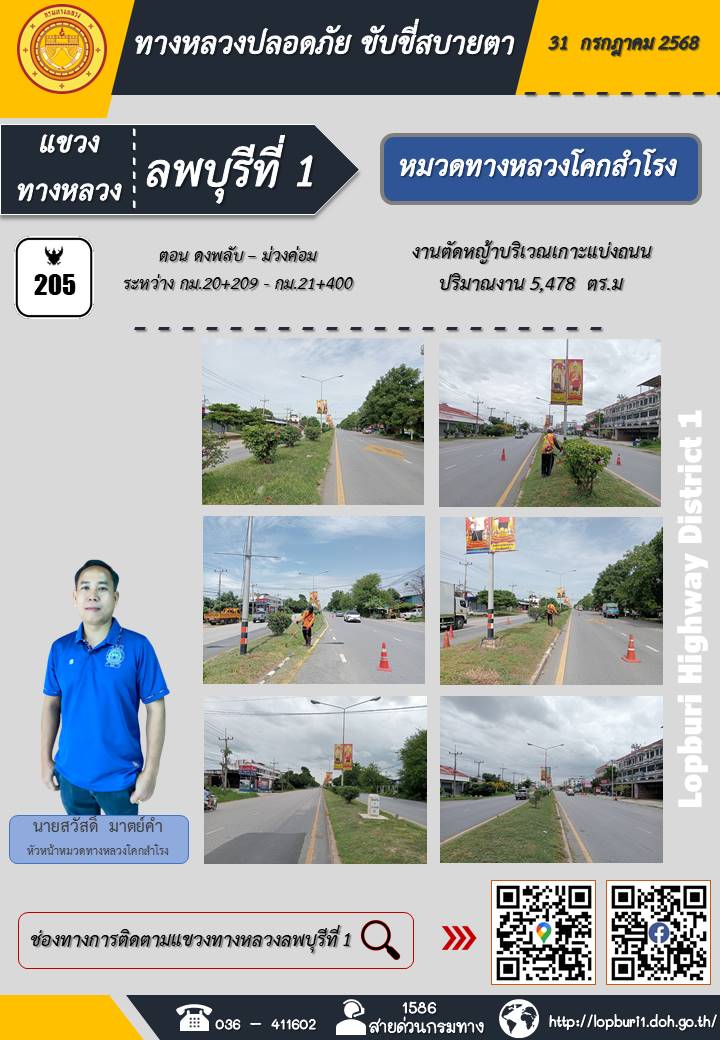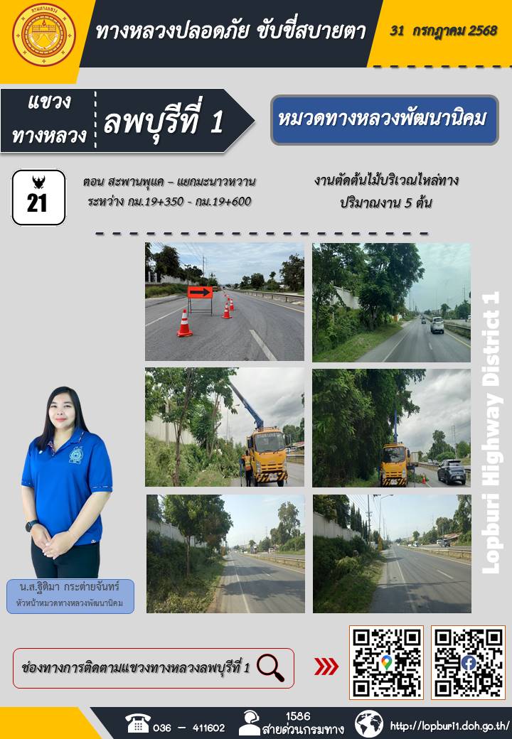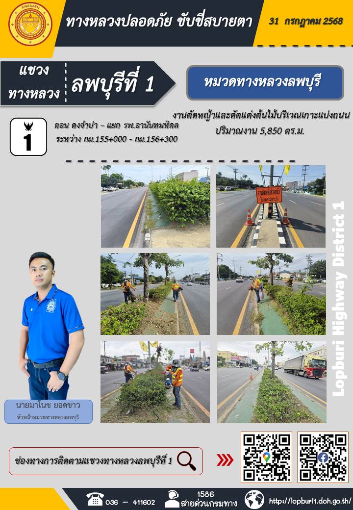 ทางหลวงปลอดภัยขับขี่สบายตา แขวงทางหลวงลพบุรีที่ 1 ประจำวันที่ 31 กรกฎาคม 2568