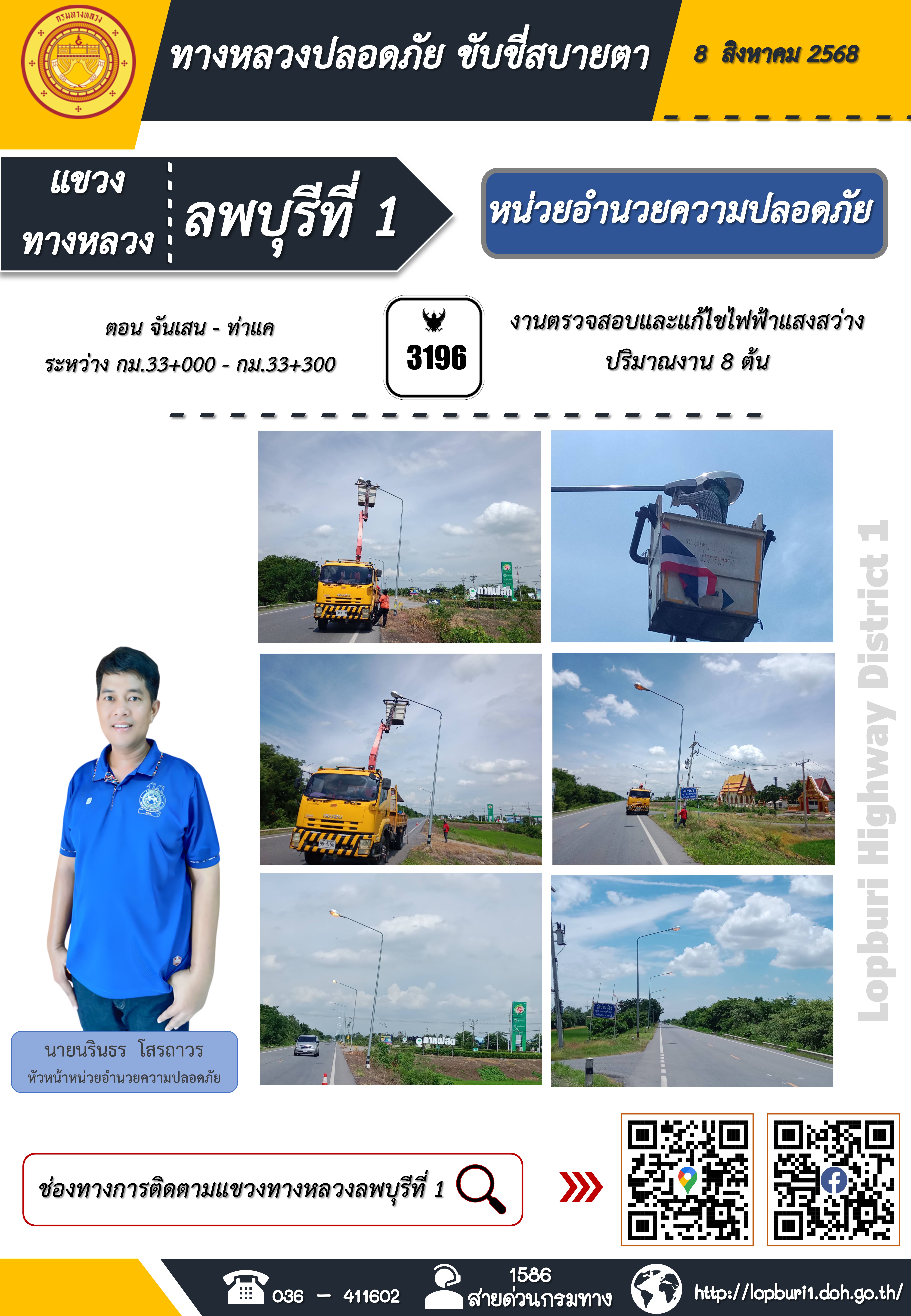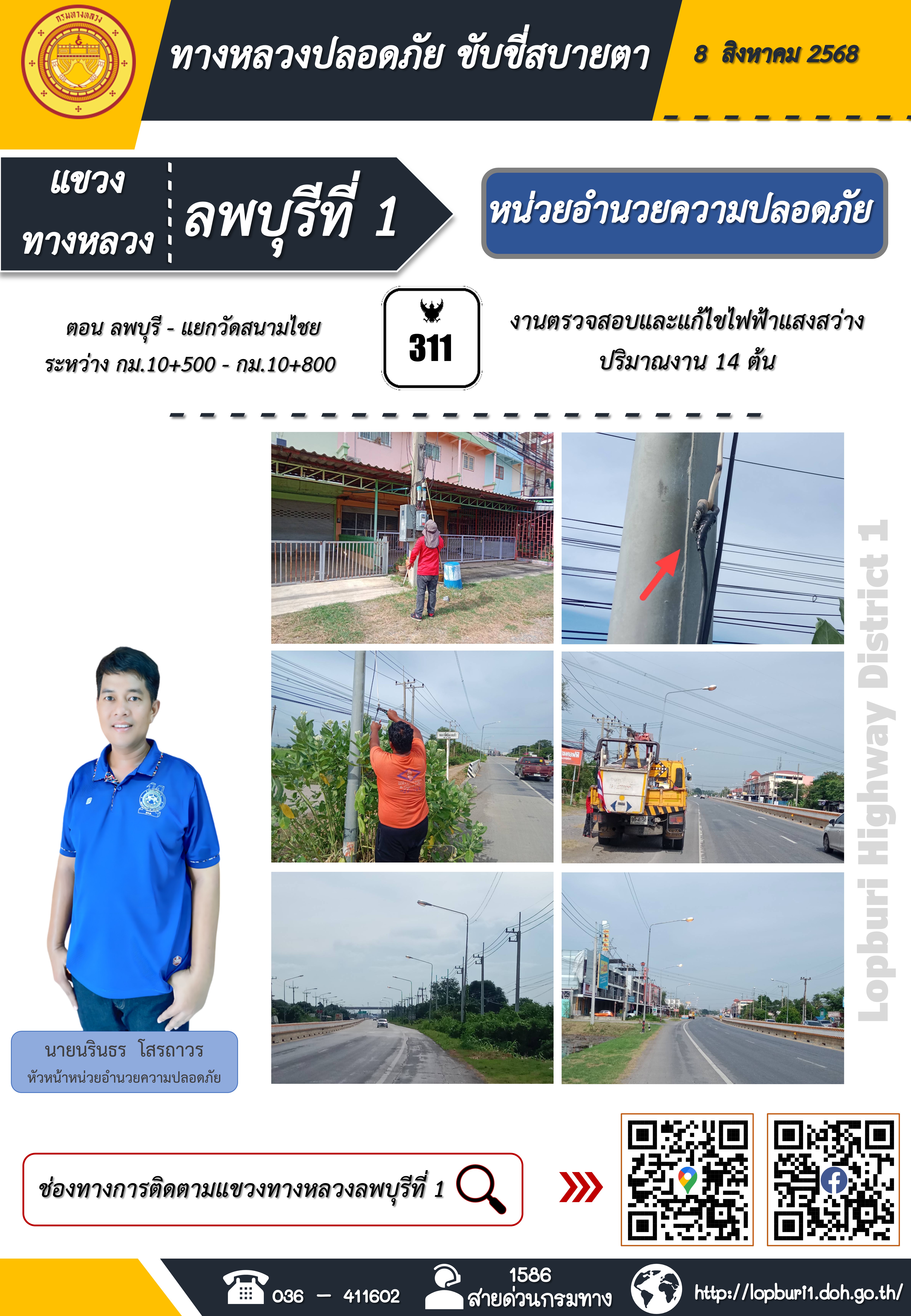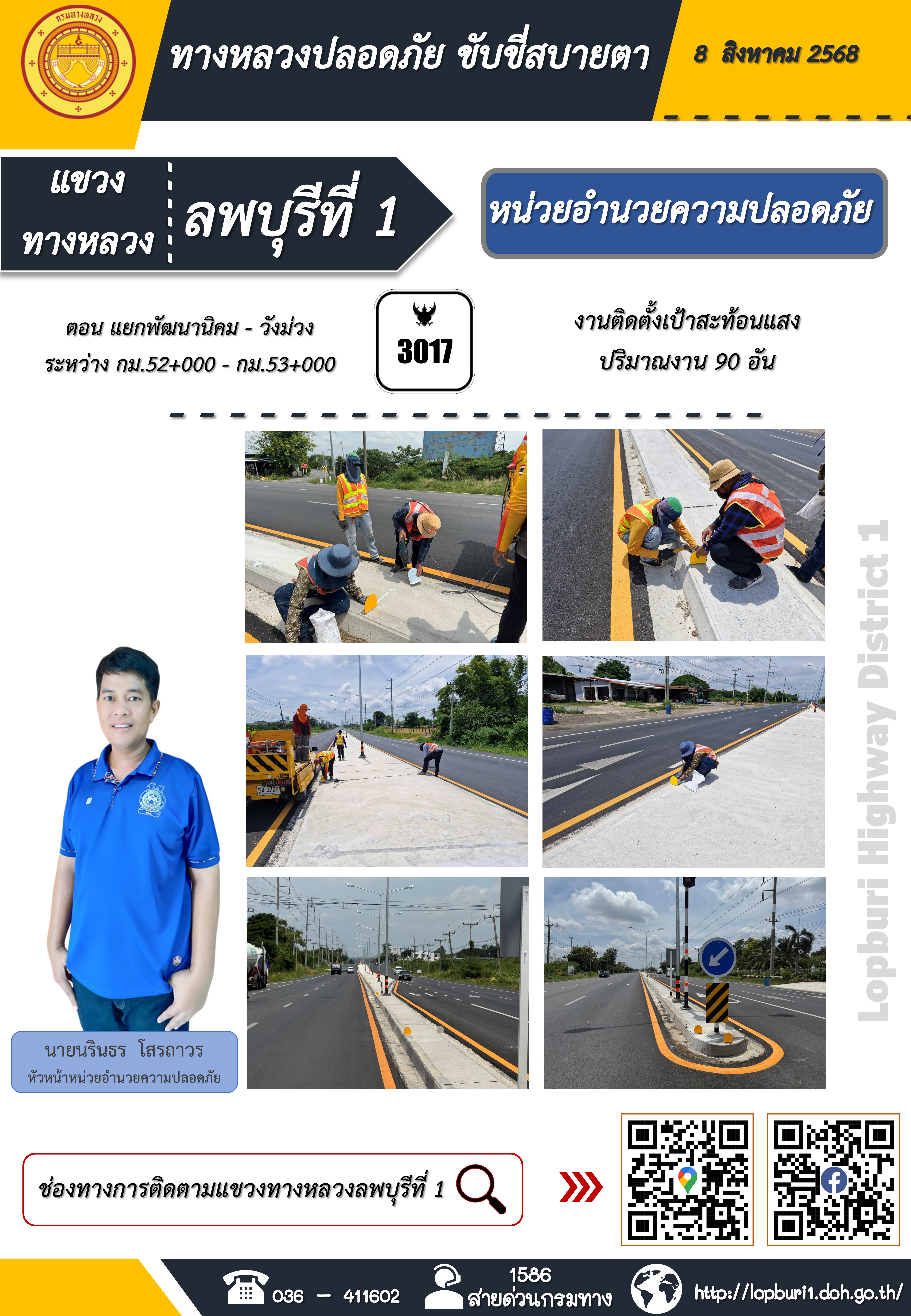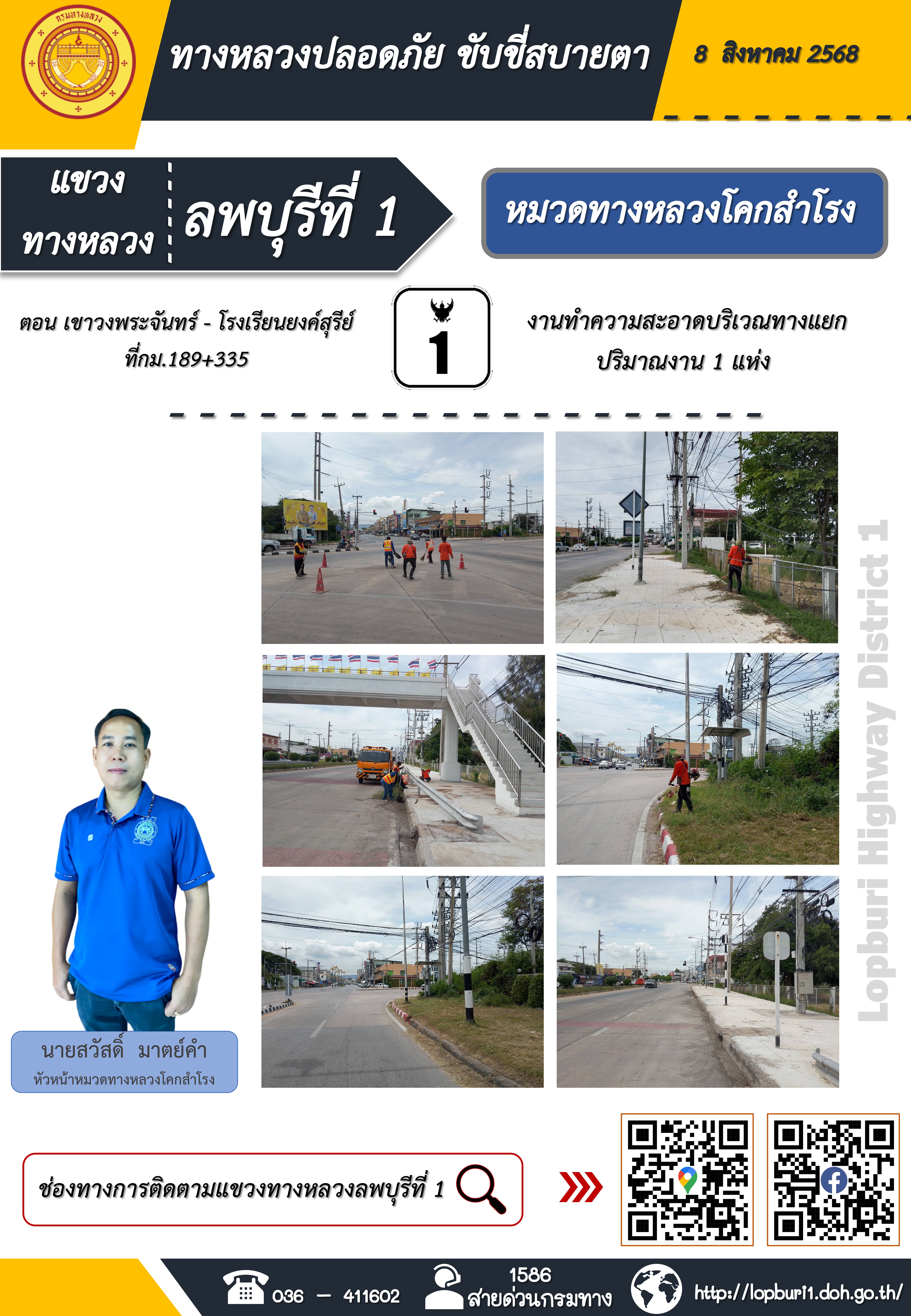 ทางหลวงปลอดภัยขับขี่สบายตา แขวงทางหลวงลพบุรีที่ 1 ประจำวันที่ 8 สิงหาคม 2568
