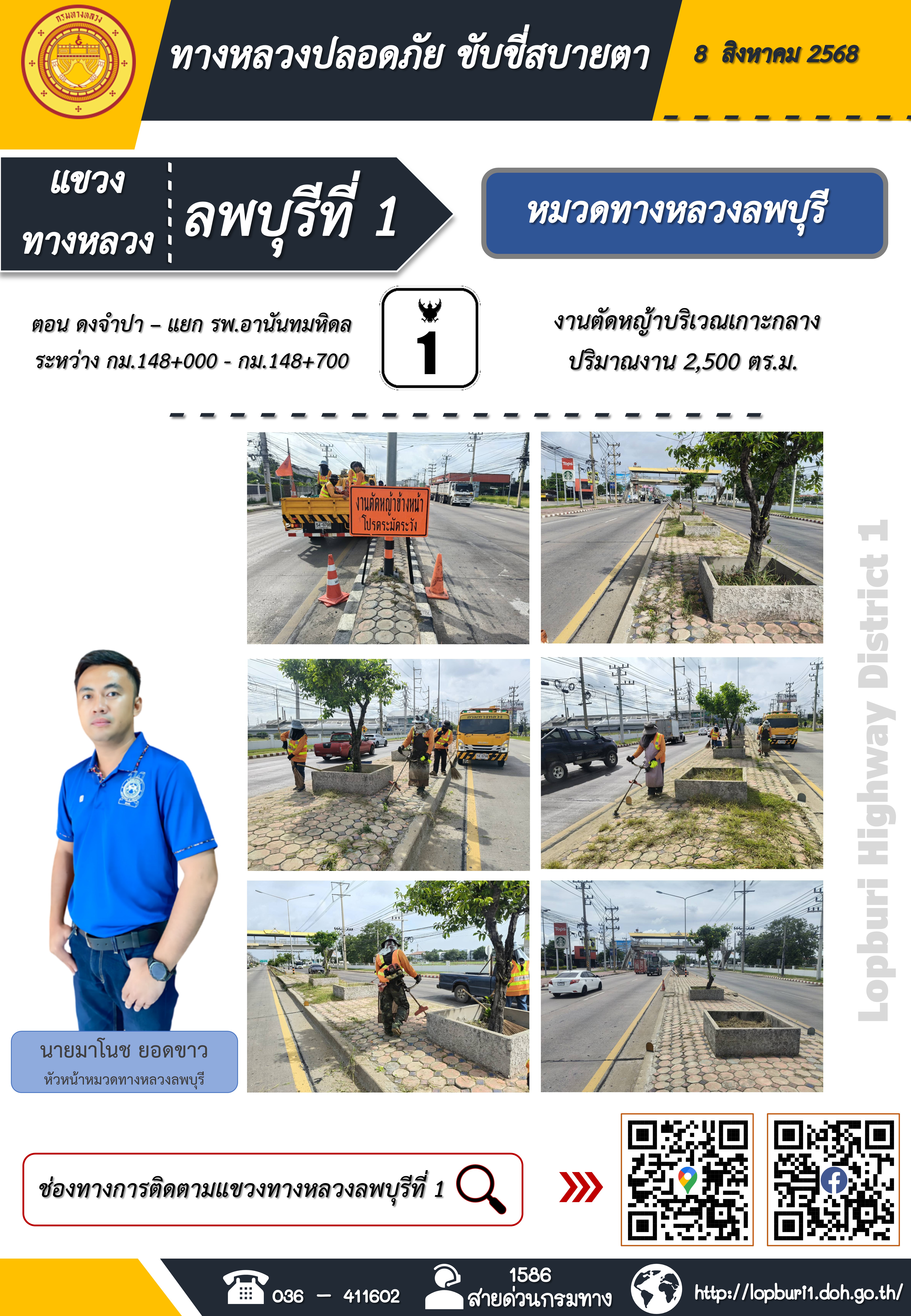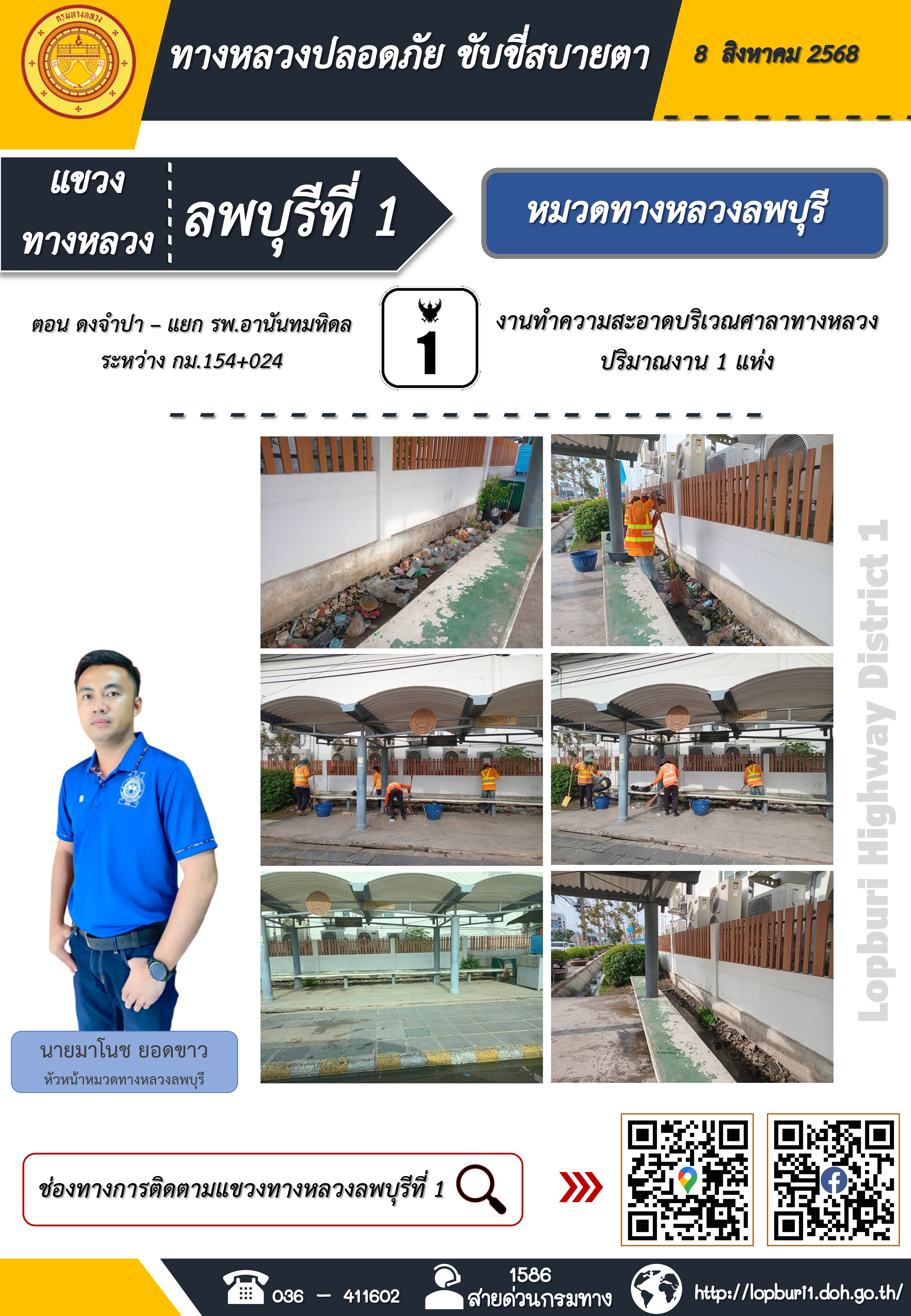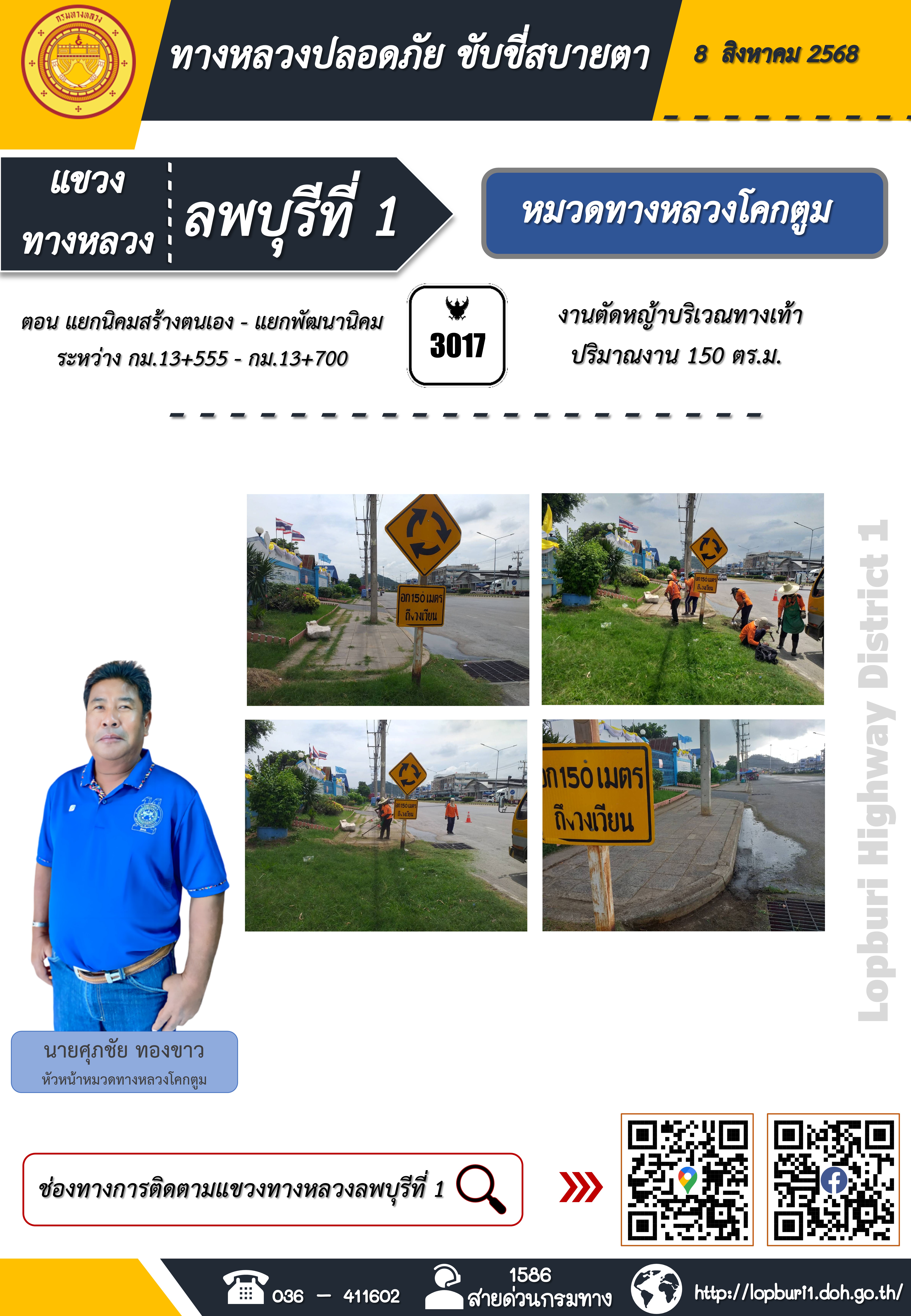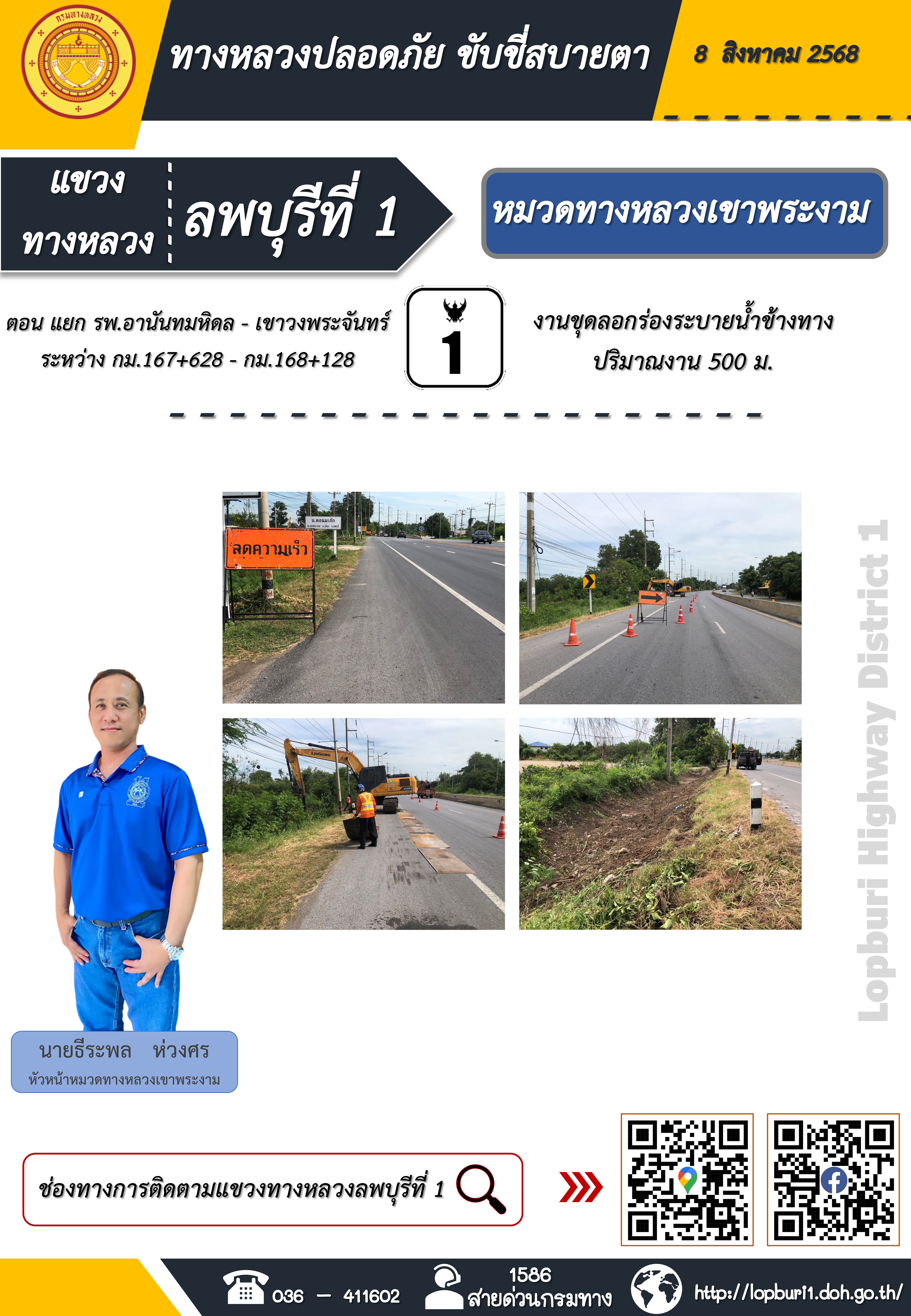 ทางหลวงปลอดภัยขับขี่สบายตา แขวงทางหลวงลพบุรีที่ 1 ประจำวันที่ 8 สิงหาคม 2568