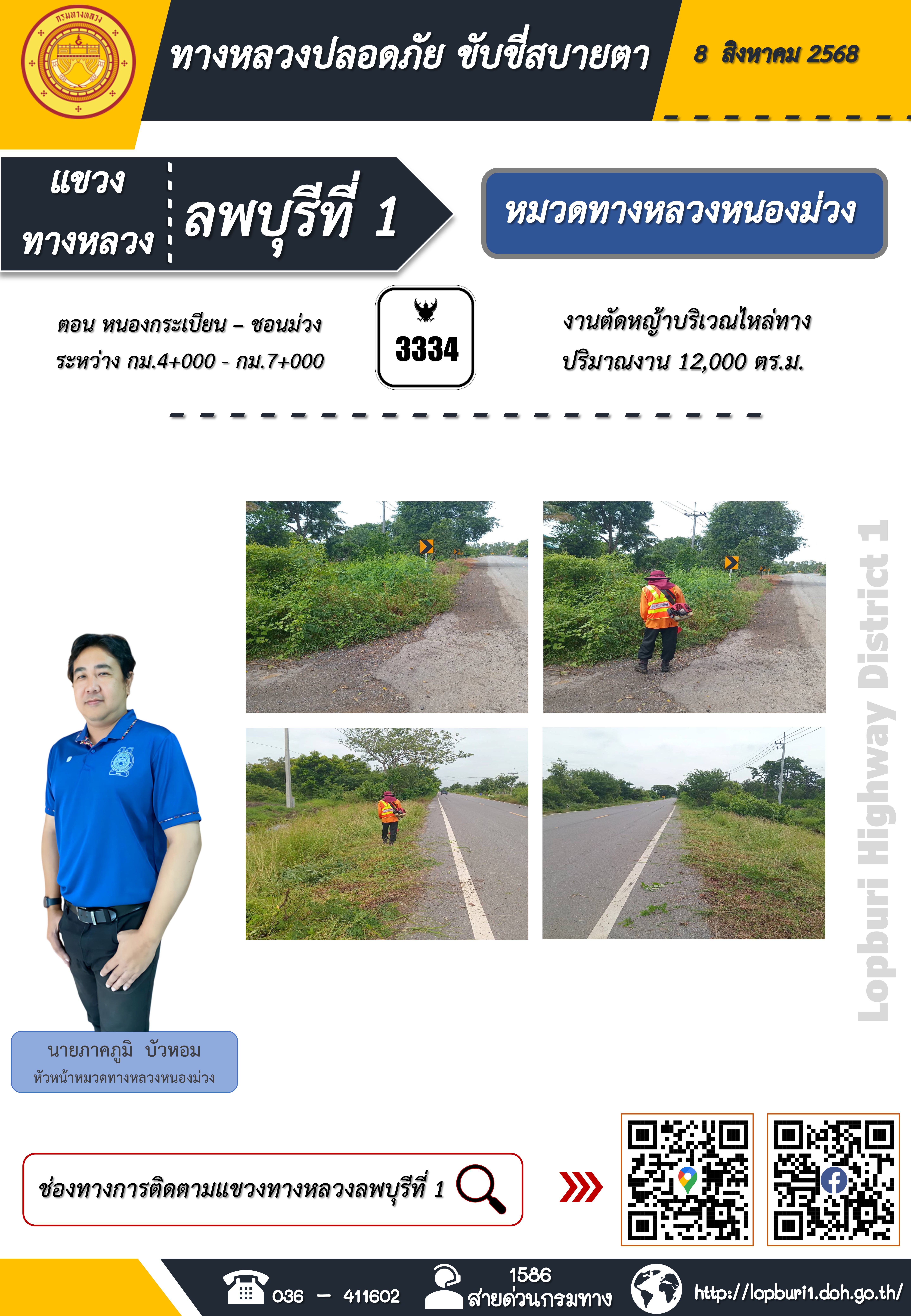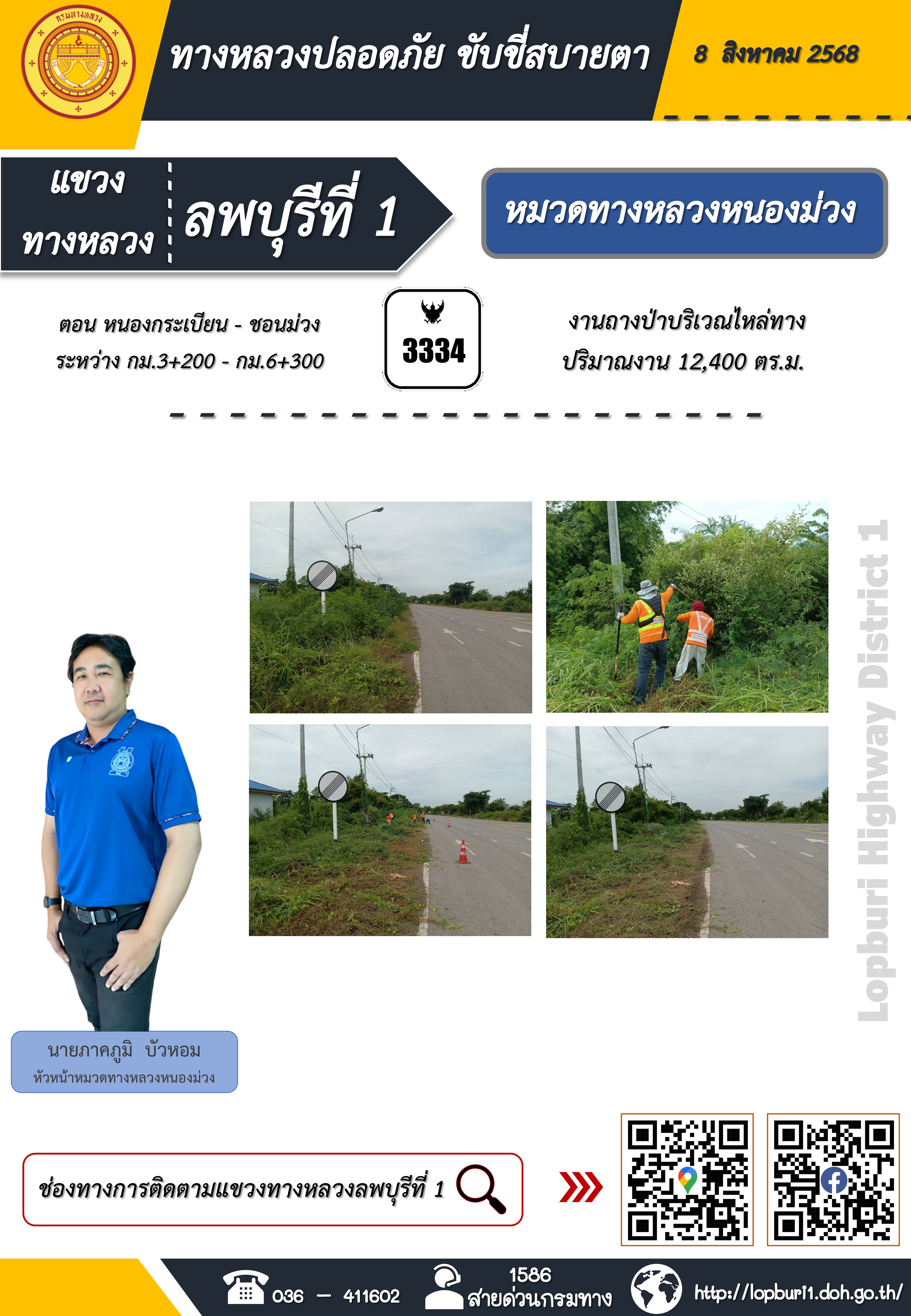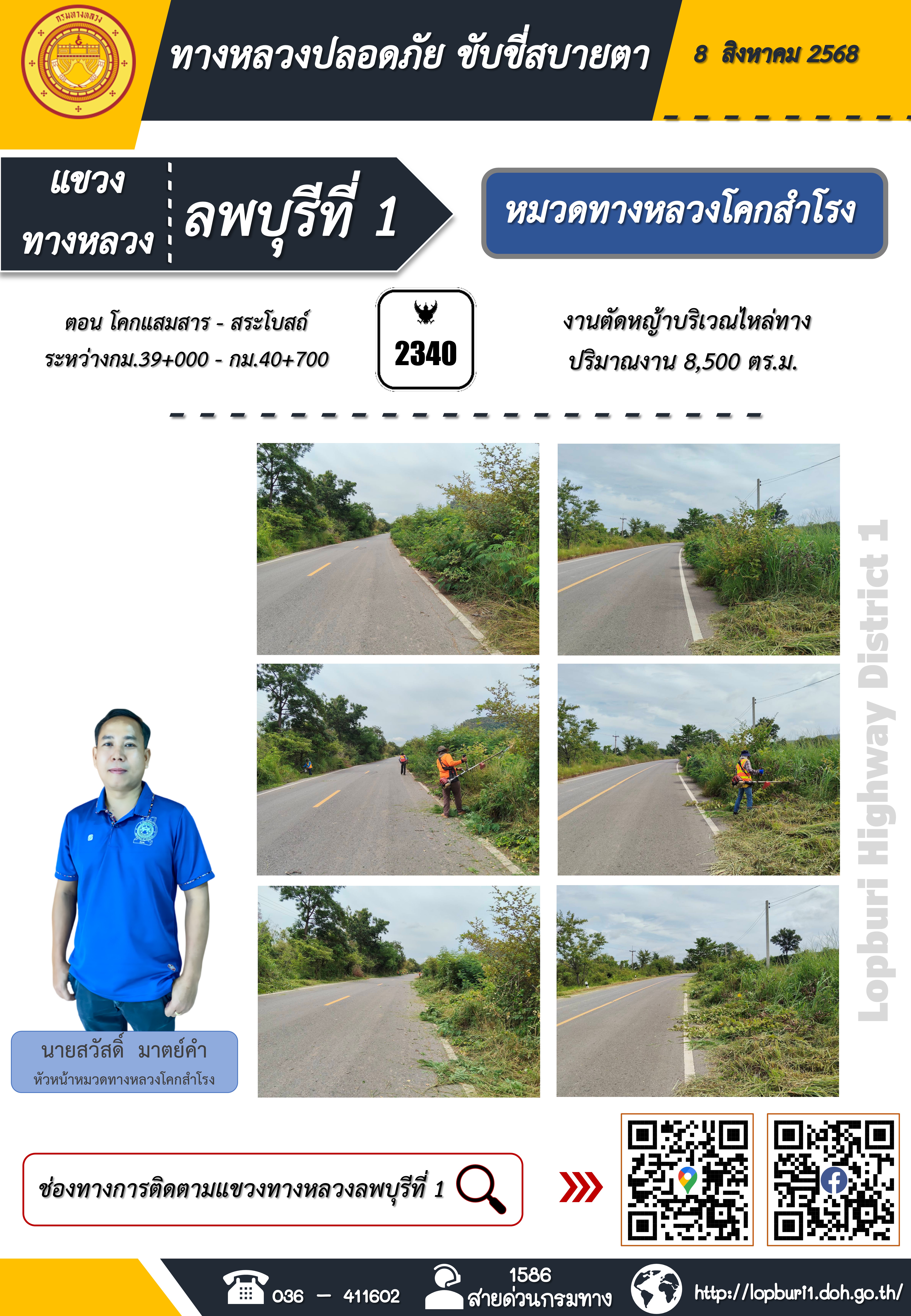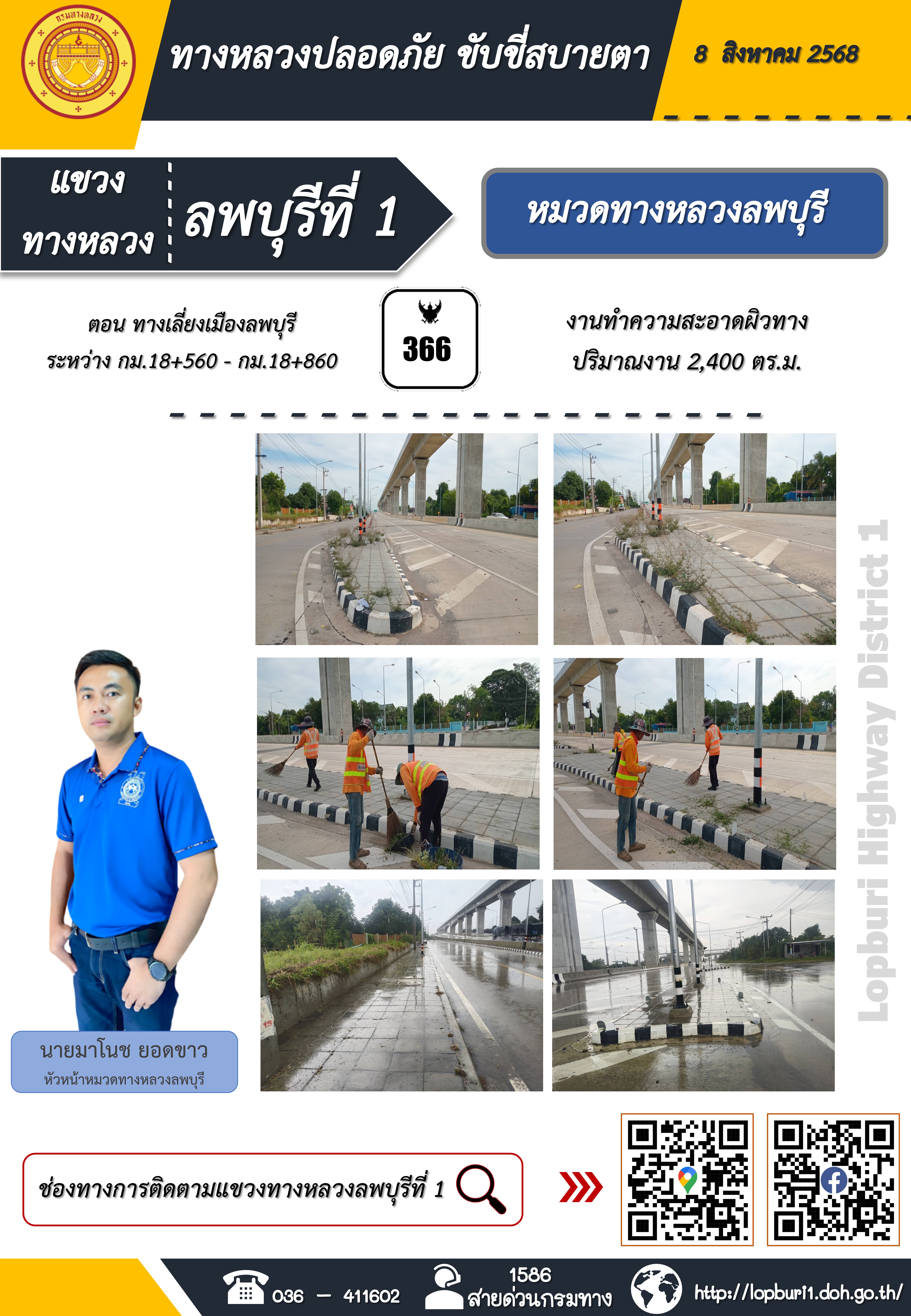ทางหลวงปลอดภัยขับขี่สบายตา แขวงทางหลวงลพบุรีที่ 1 ประจำวันที่ 8 สิงหาคม 2568