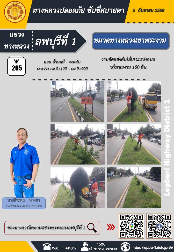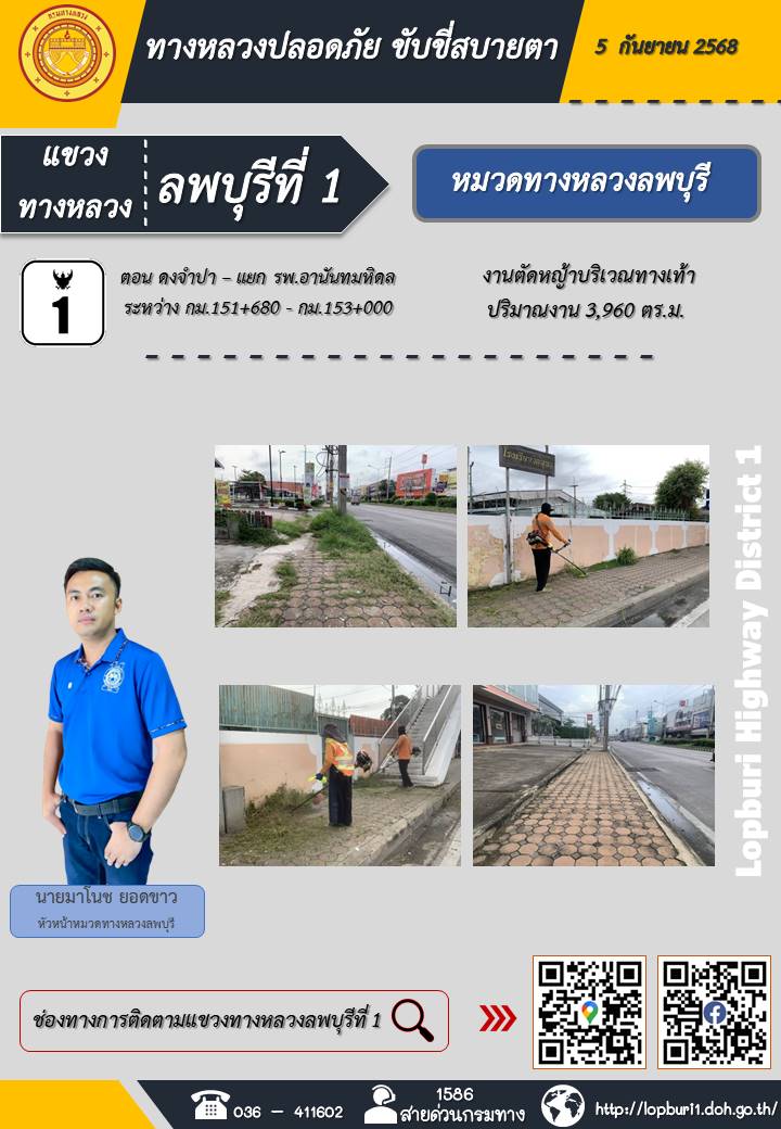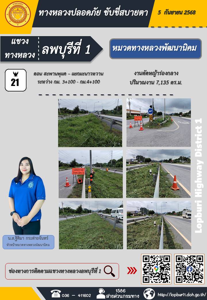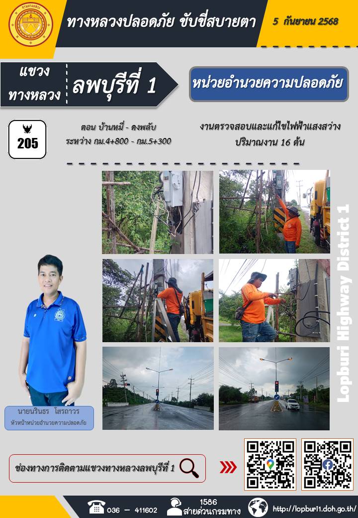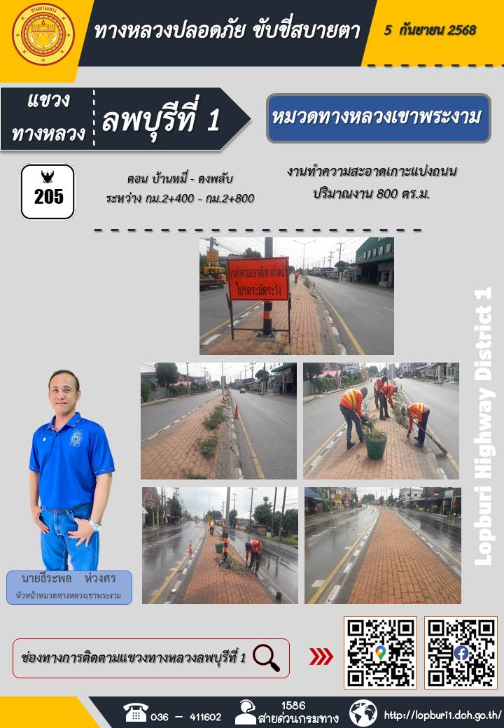 ทางหลวงปลอดภัยขับขี่สบายตา แขวงทางหลวงลพบุรีที่ 1 ประจำวันที่ 5 กันยายน 2568