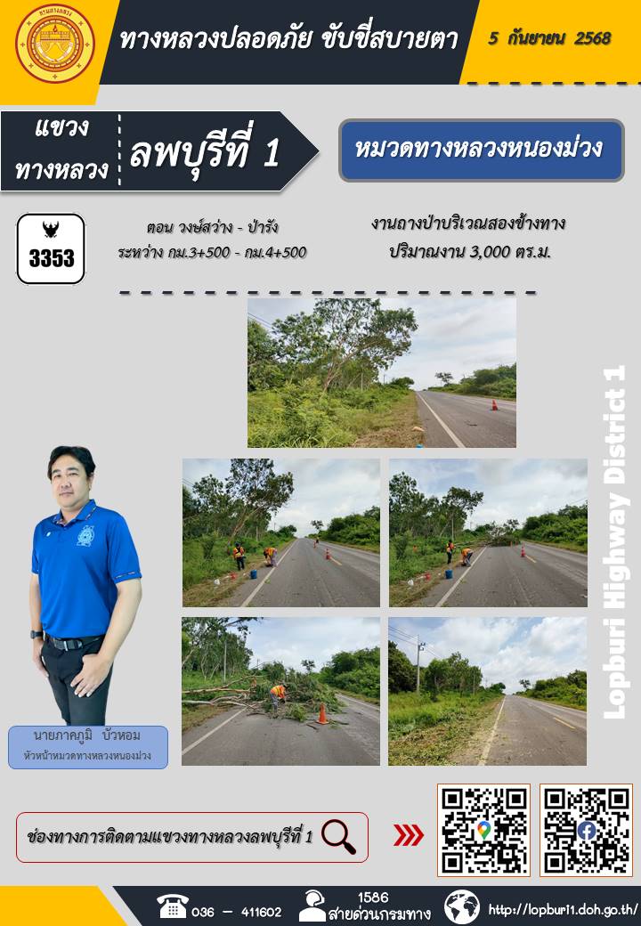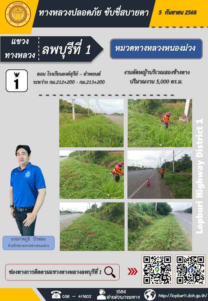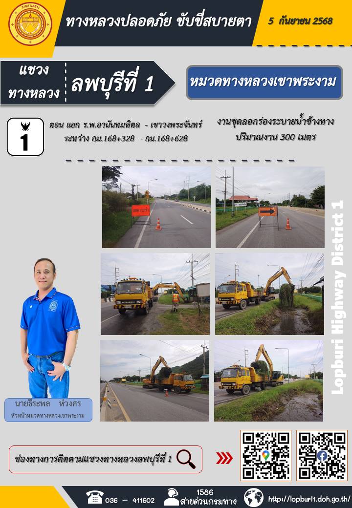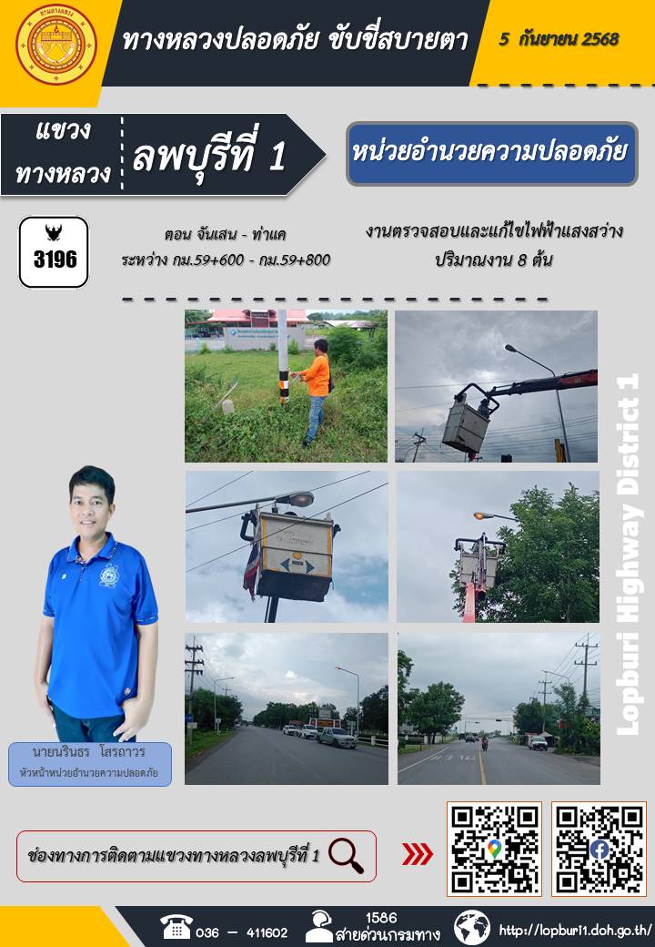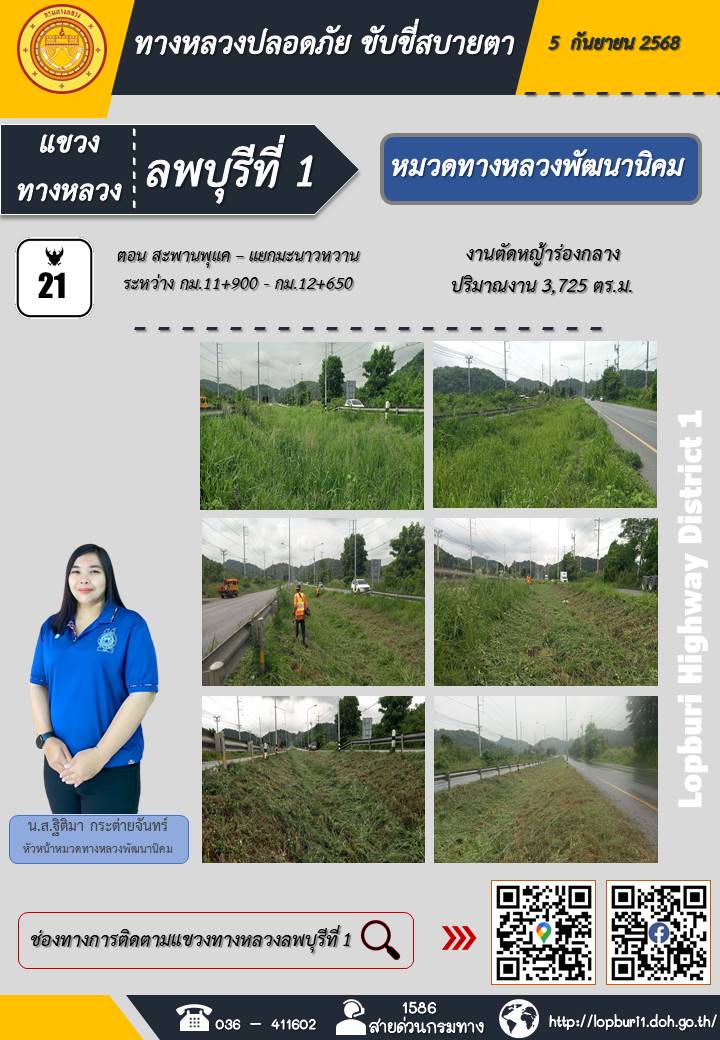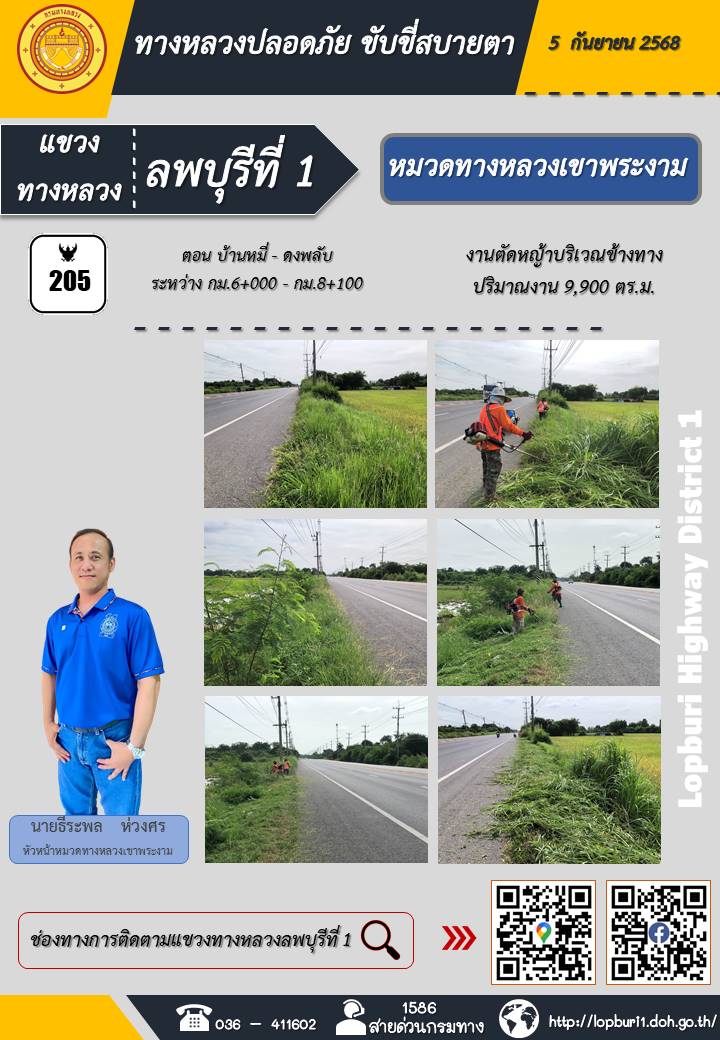 ทางหลวงปลอดภัยขับขี่สบายตา แขวงทางหลวงลพบุรีที่ 1 ประจำวันที่ 5 กันยายน 2568