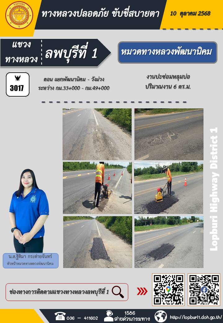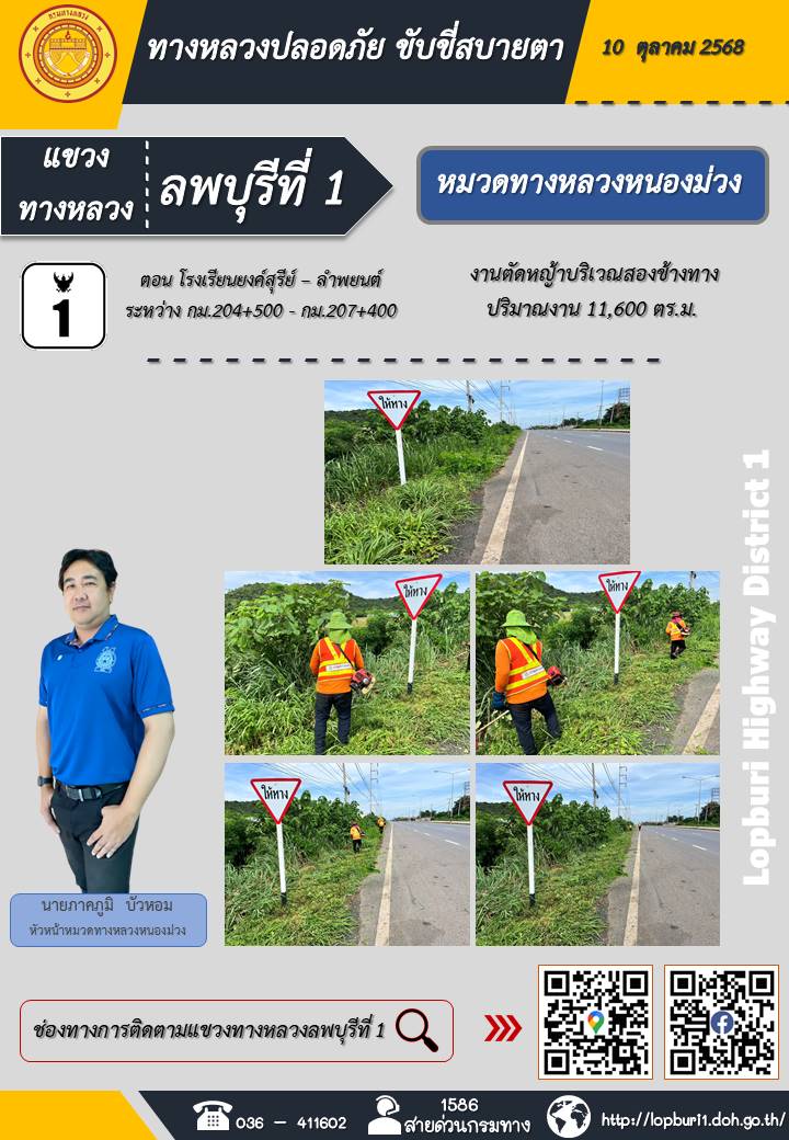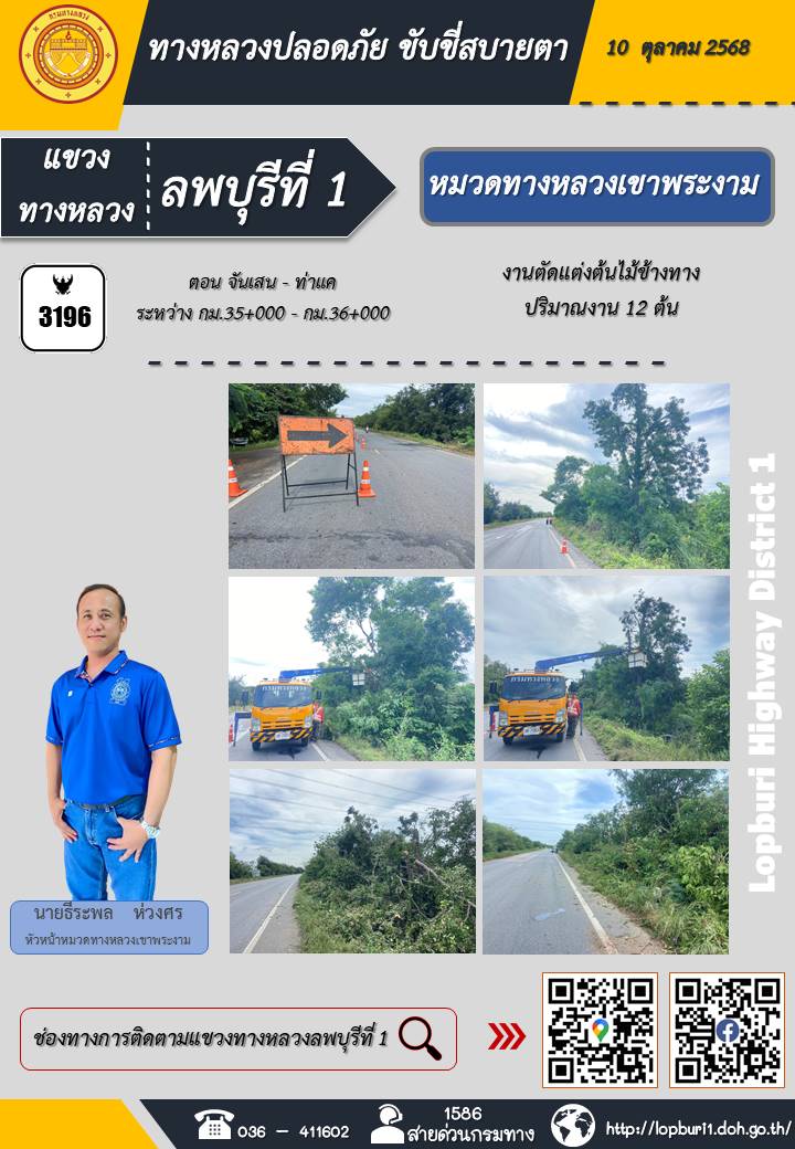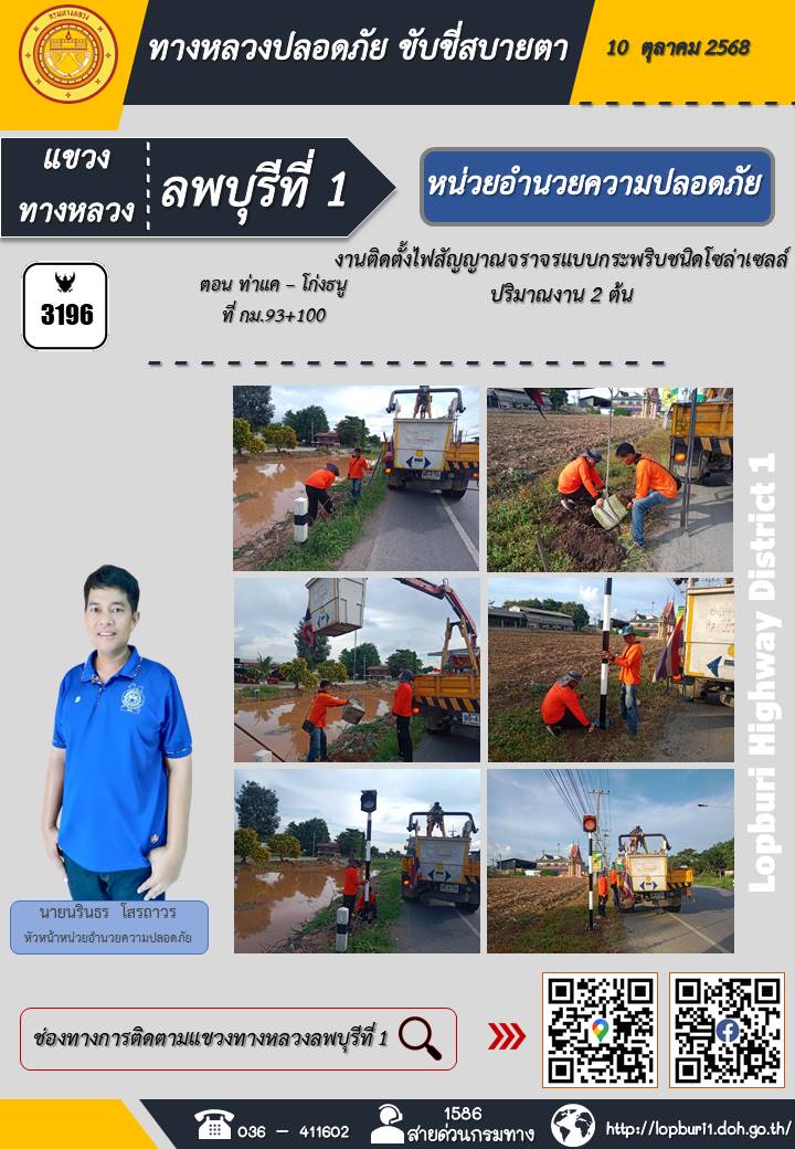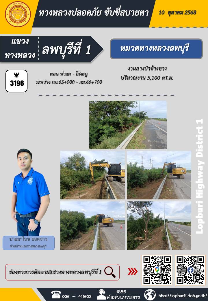 ทางหลวงปลอดภัยขับขี่สบายตา แขวงทางหลวงลพบุรีที่ 1 ประจำวันที่ 10 ตุลาคม 2568