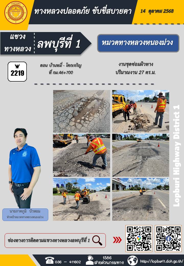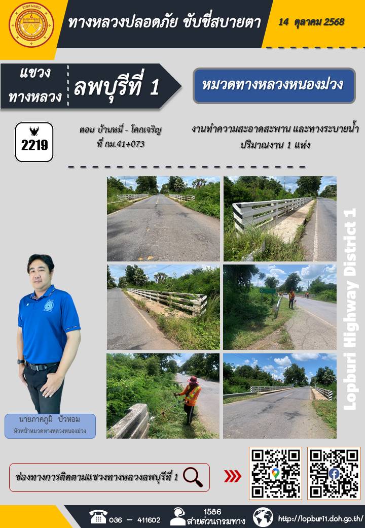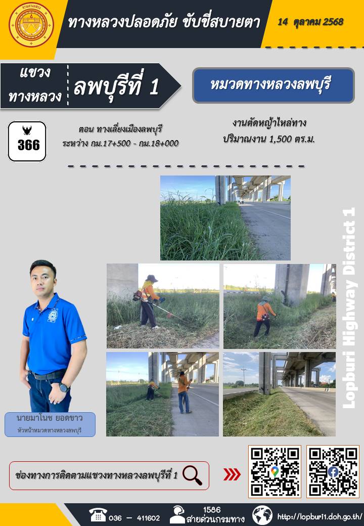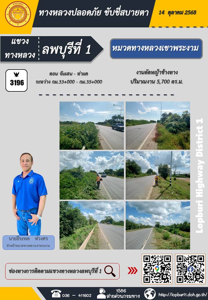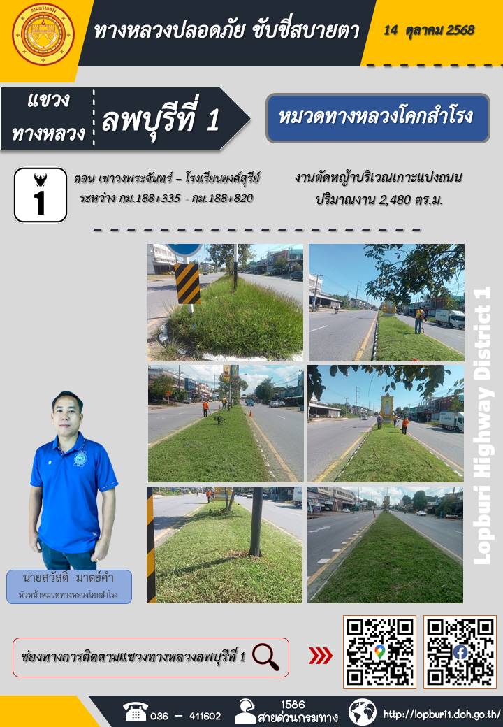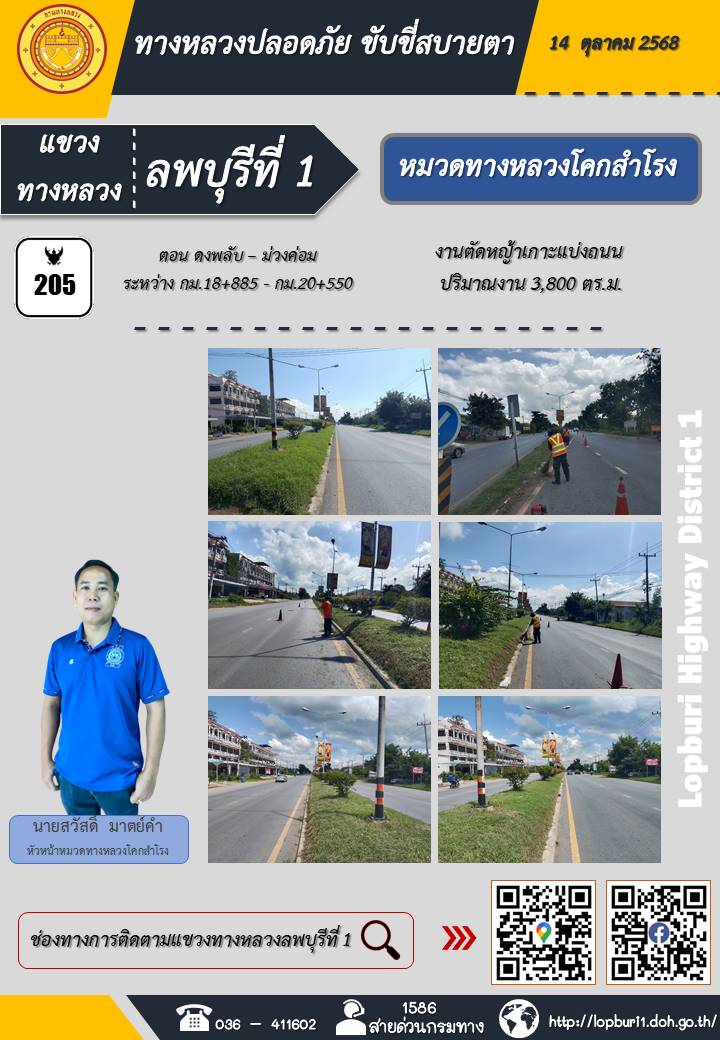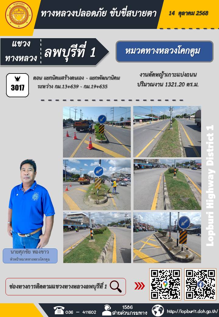 ทางหลวงปลอดภัยขับขี่สบายตา แขวงทางหลวงลพบุรีที่ 1 ประจำวันที่ 14 ตุลาคม 2568
