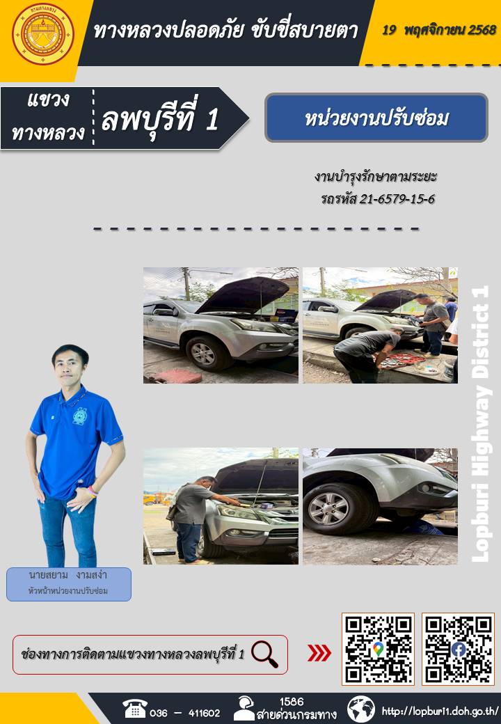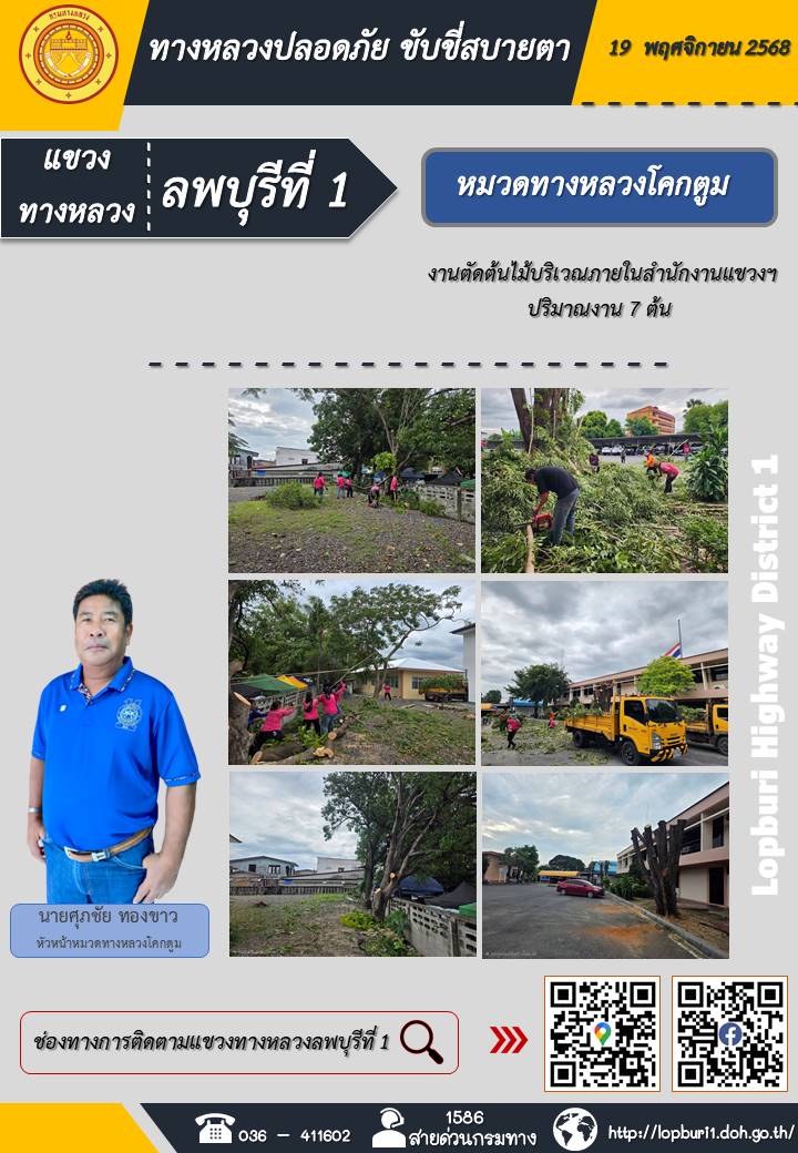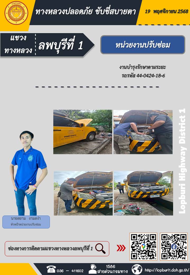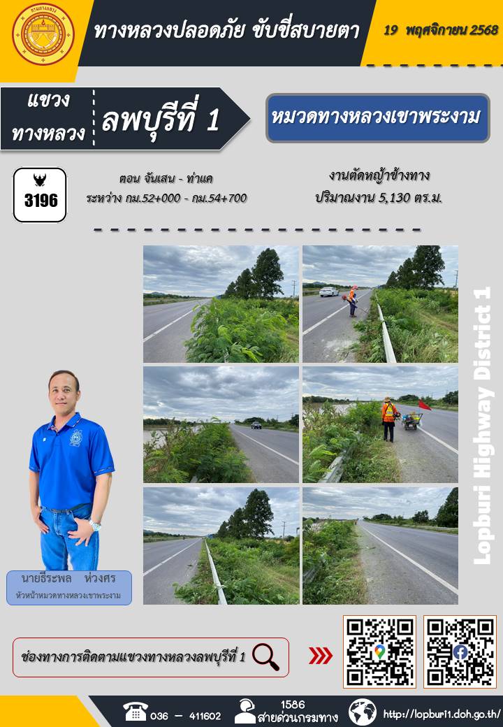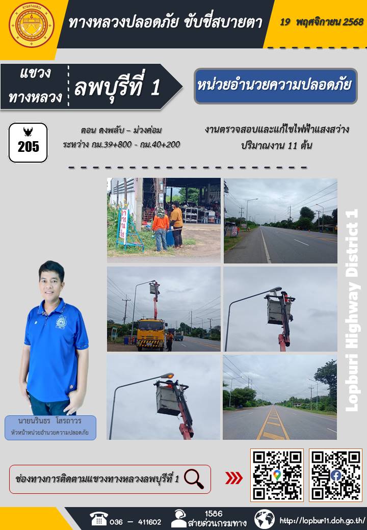 ทางหลวงปลอดภัยขับขี่สบายตา แขวงทางหลวงลพบุรีที่ 1 ประจำวันที่ 19 พฤศจิกายน 2568