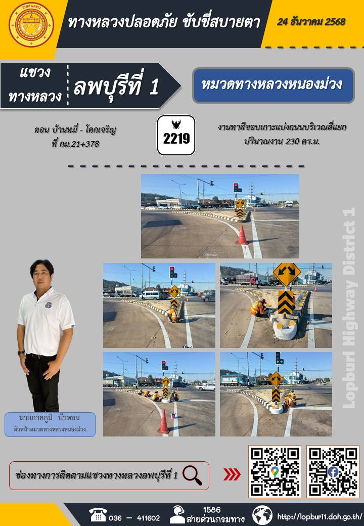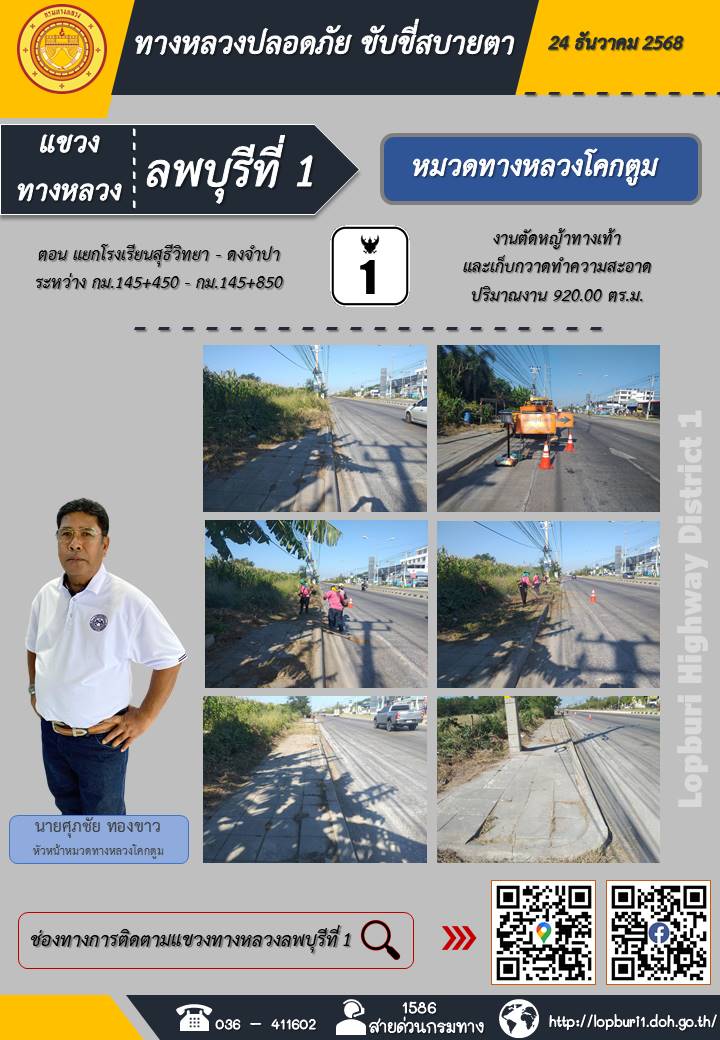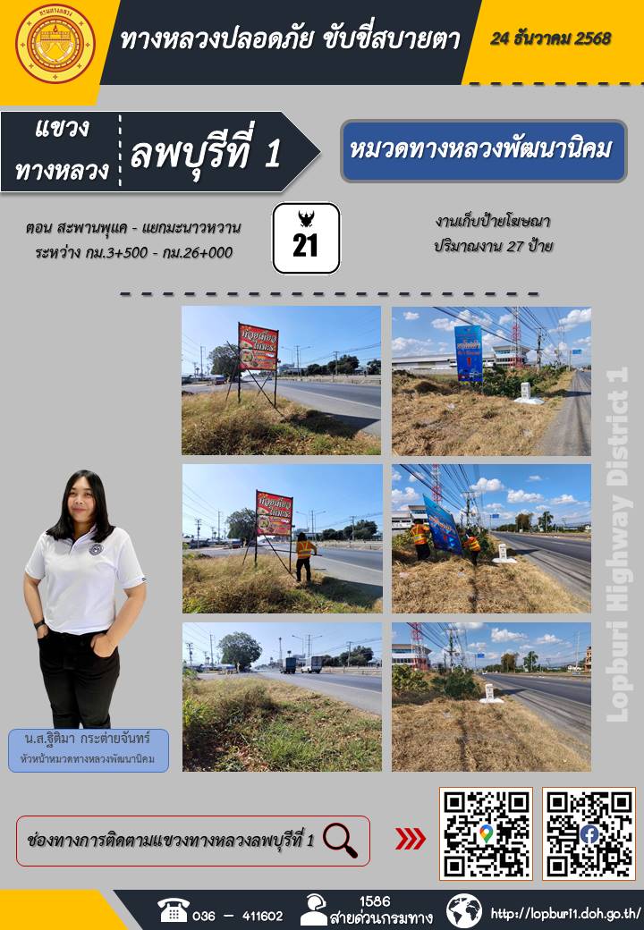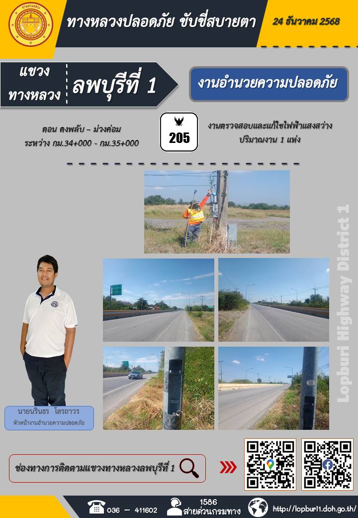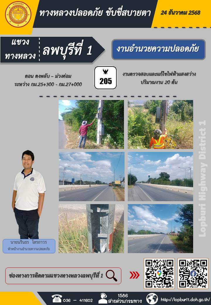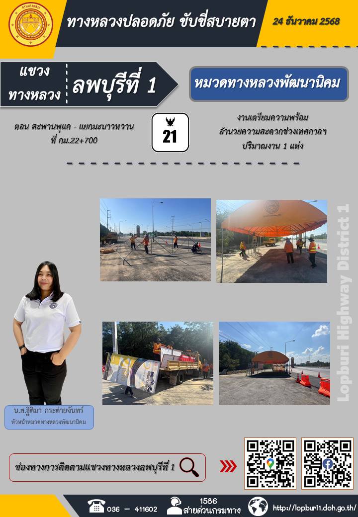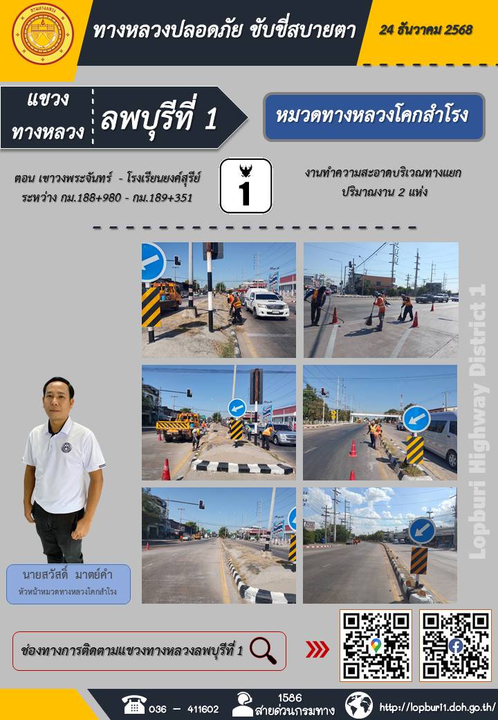 ทางหลวงปลอดภัยขับขี่สบายตา แขวงทางหลวงลพบุรีที่ 1 ประจำวันที่ 24 ธันวาคม 2568