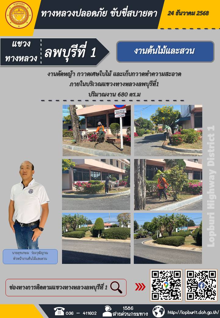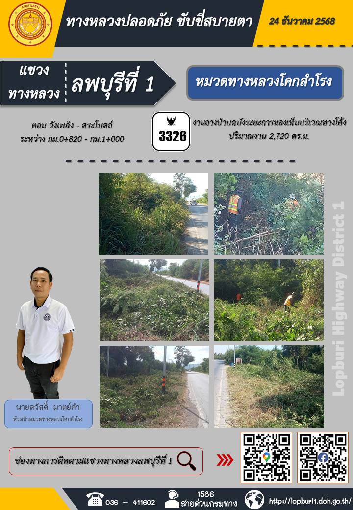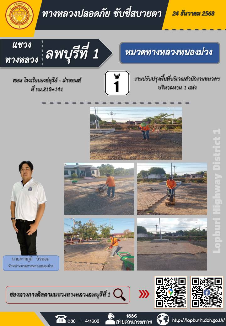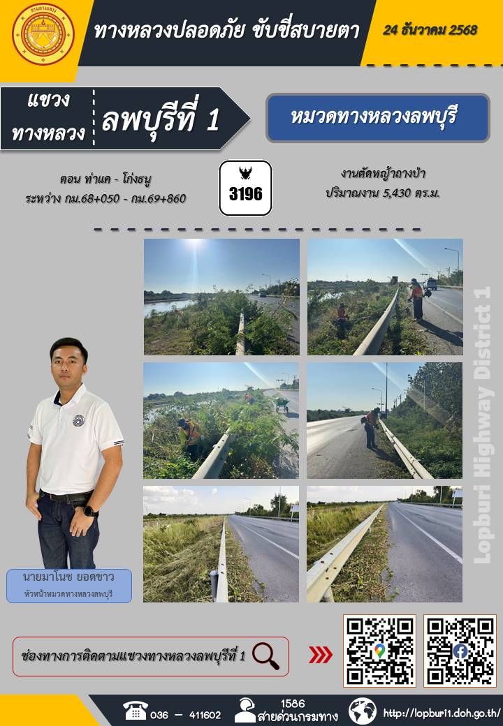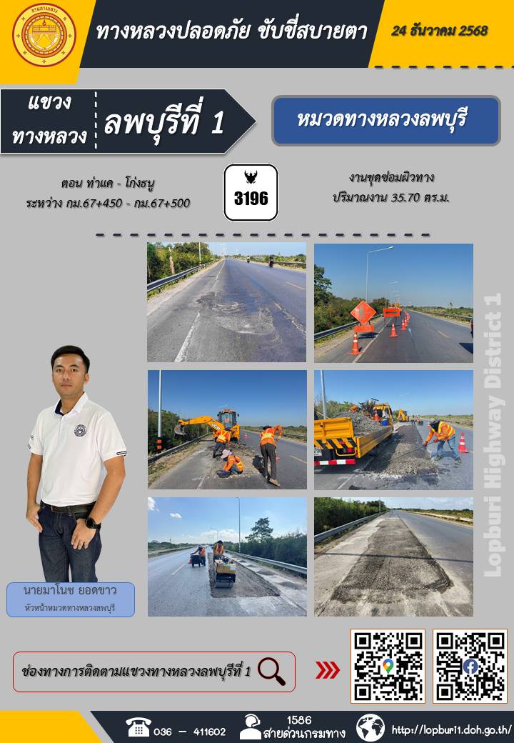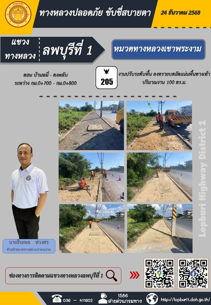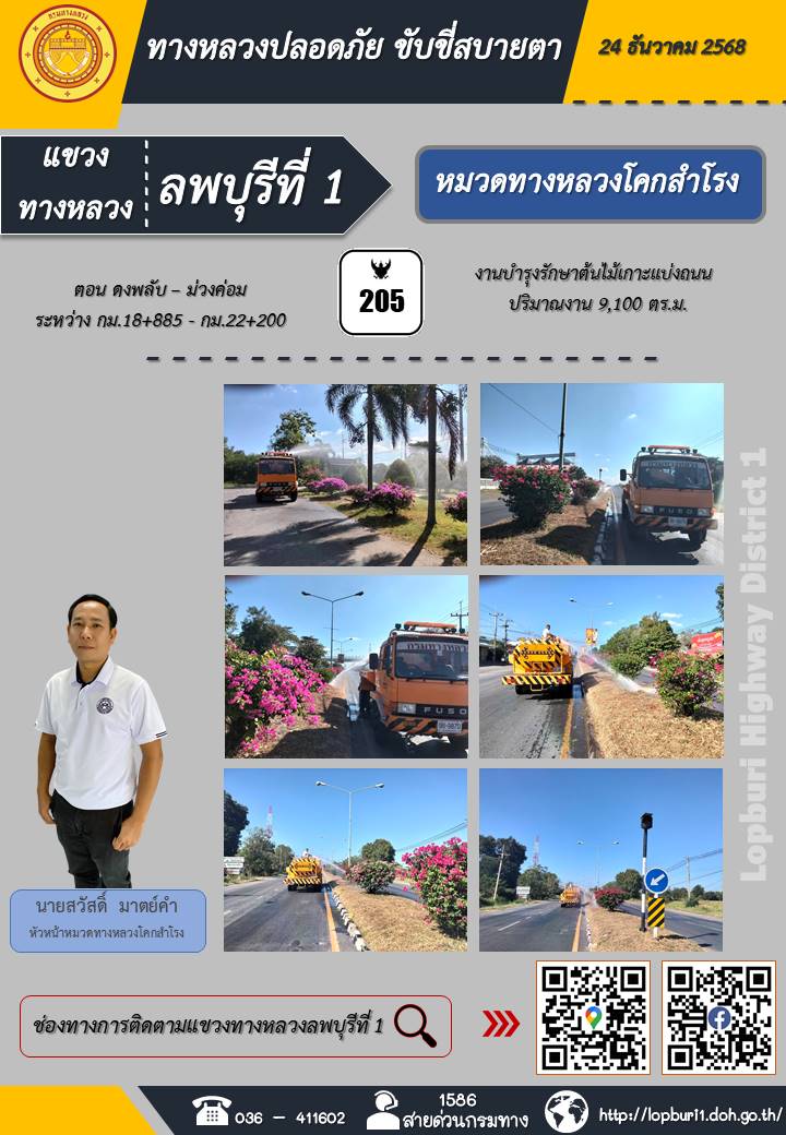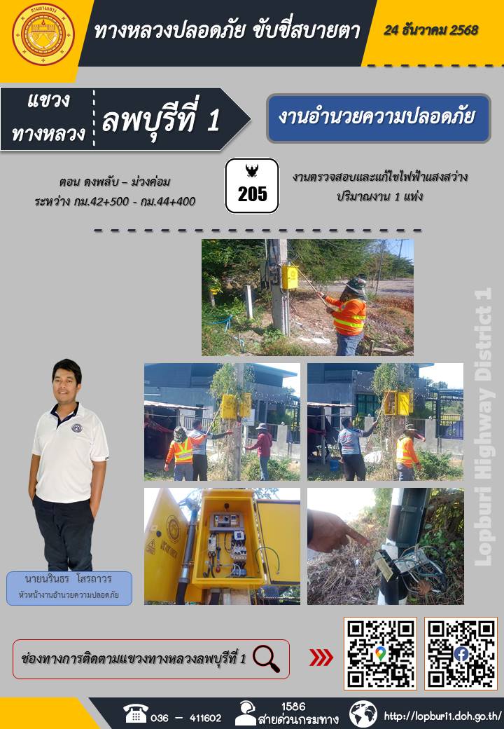 ทางหลวงปลอดภัยขับขี่สบายตา แขวงทางหลวงลพบุรีที่ 1 ประจำวันที่ 24 ธันวาคม 2568