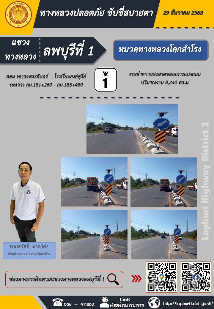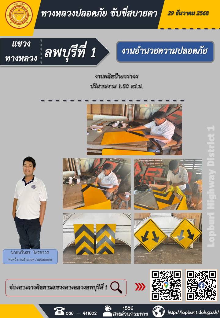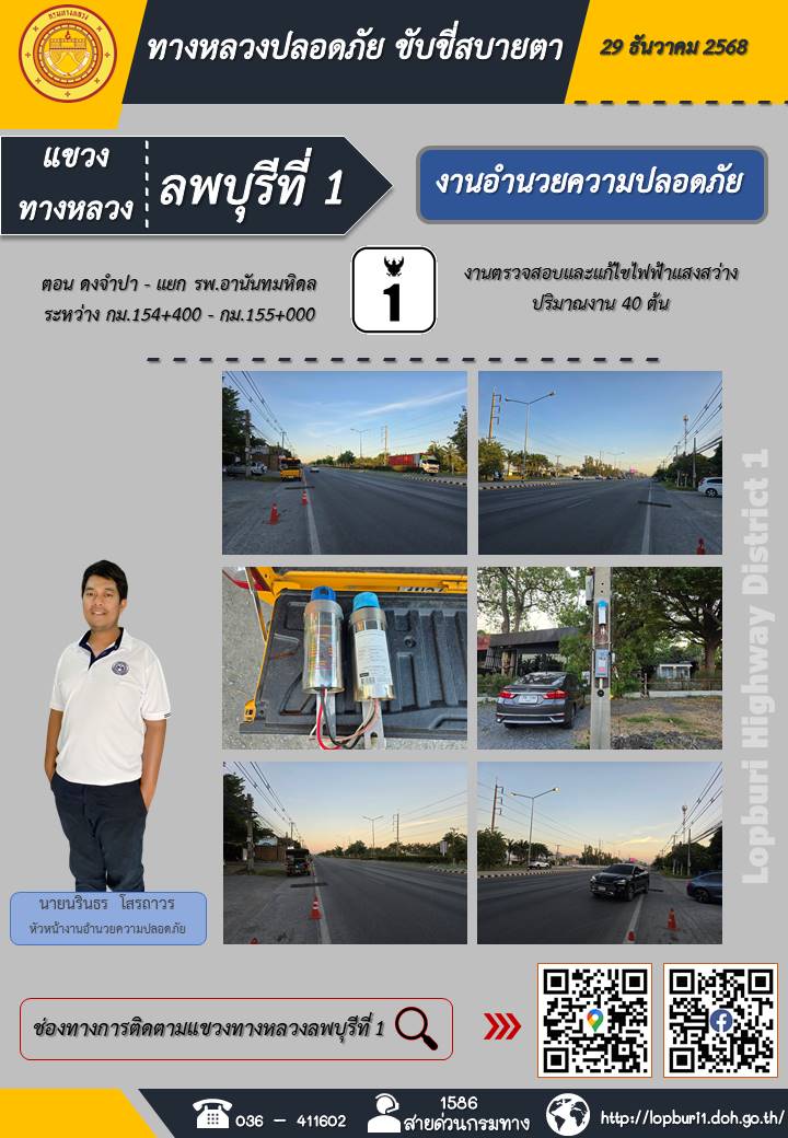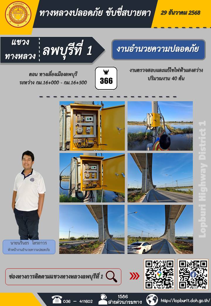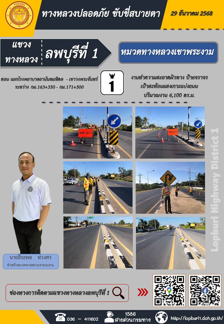 ทางหลวงปลอดภัยขับขี่สบายตา แขวงทางหลวงลพบุรีที่ 1 ประจำวันที่ 29 ธันวาคม 2568