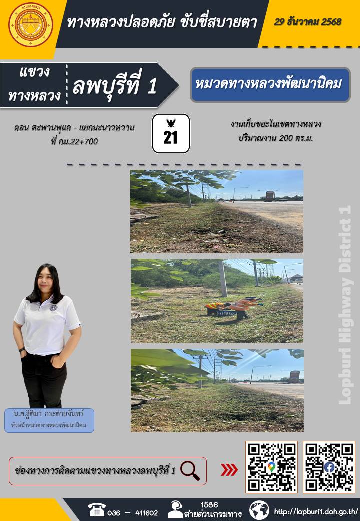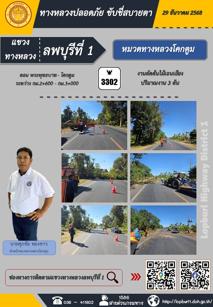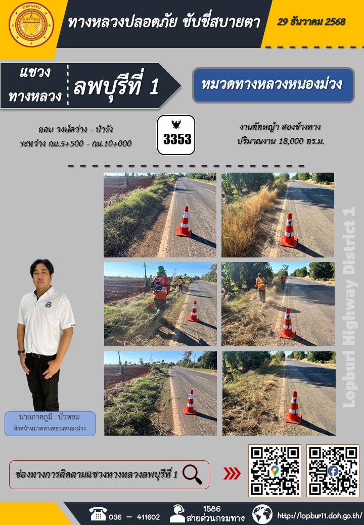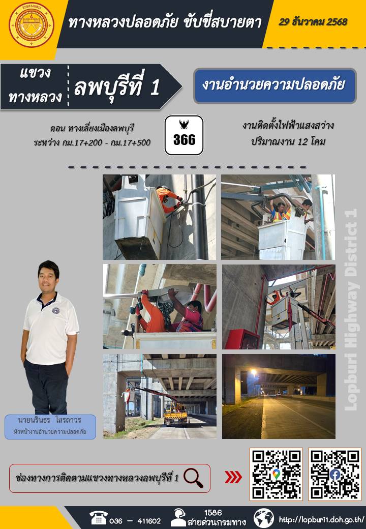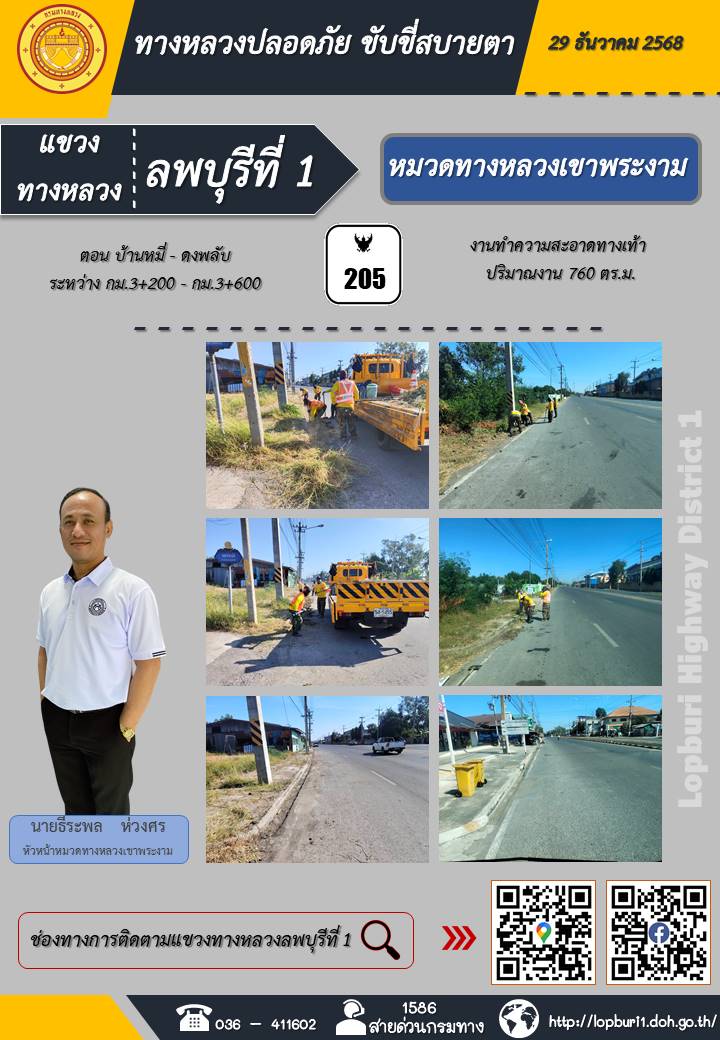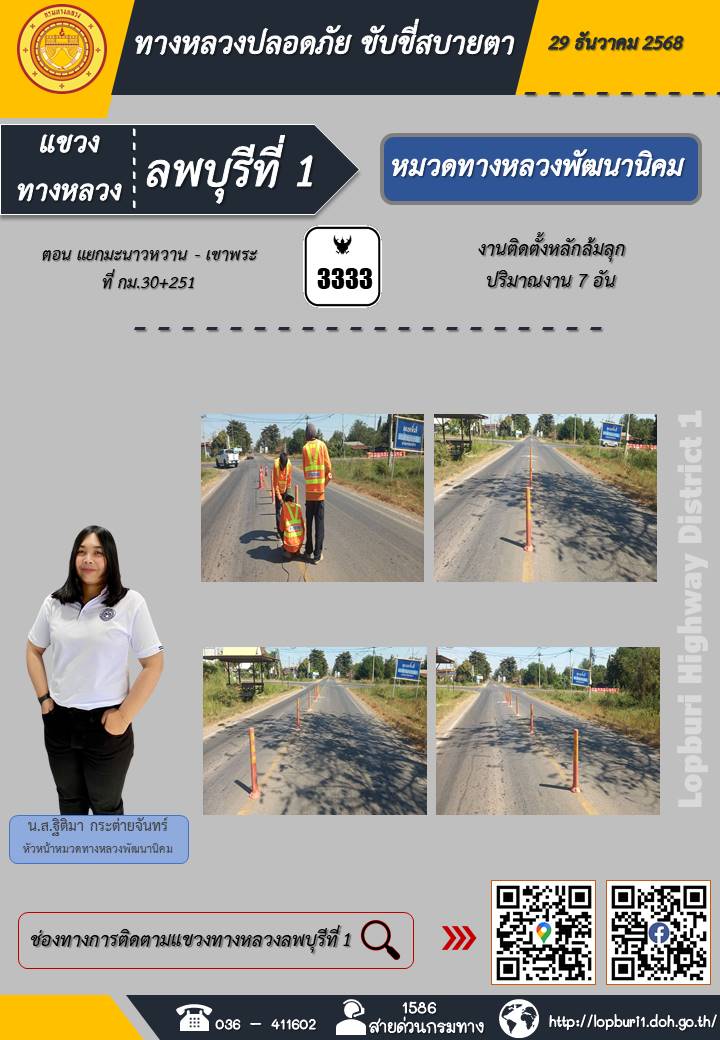 ทางหลวงปลอดภัยขับขี่สบายตา แขวงทางหลวงลพบุรีที่ 1 ประจำวันที่ 29 ธันวาคม 2568
