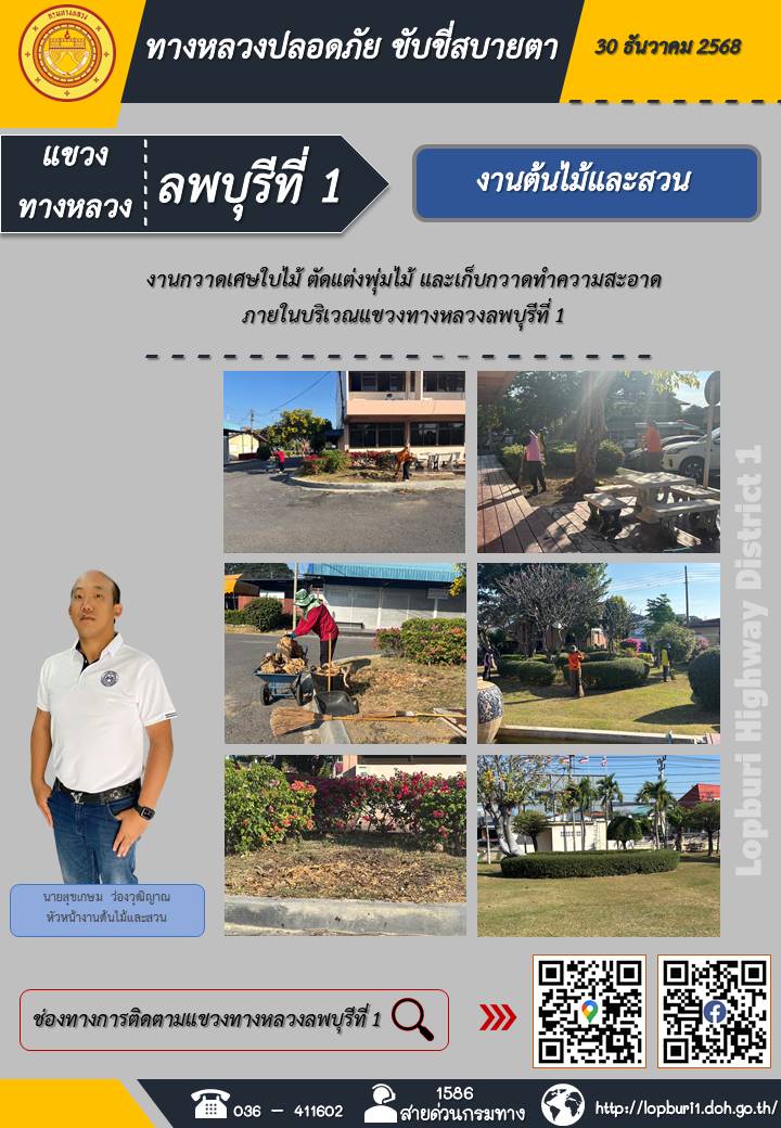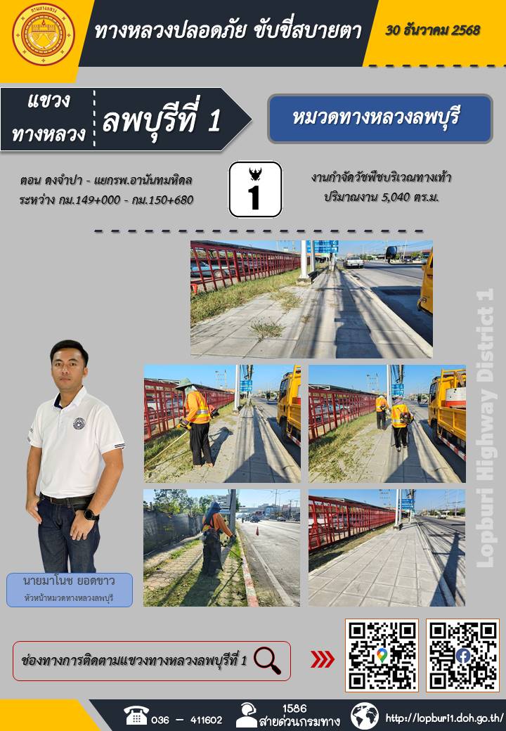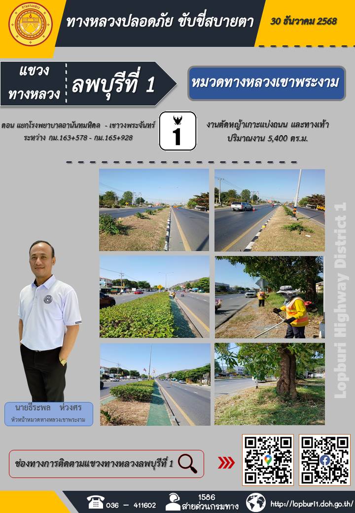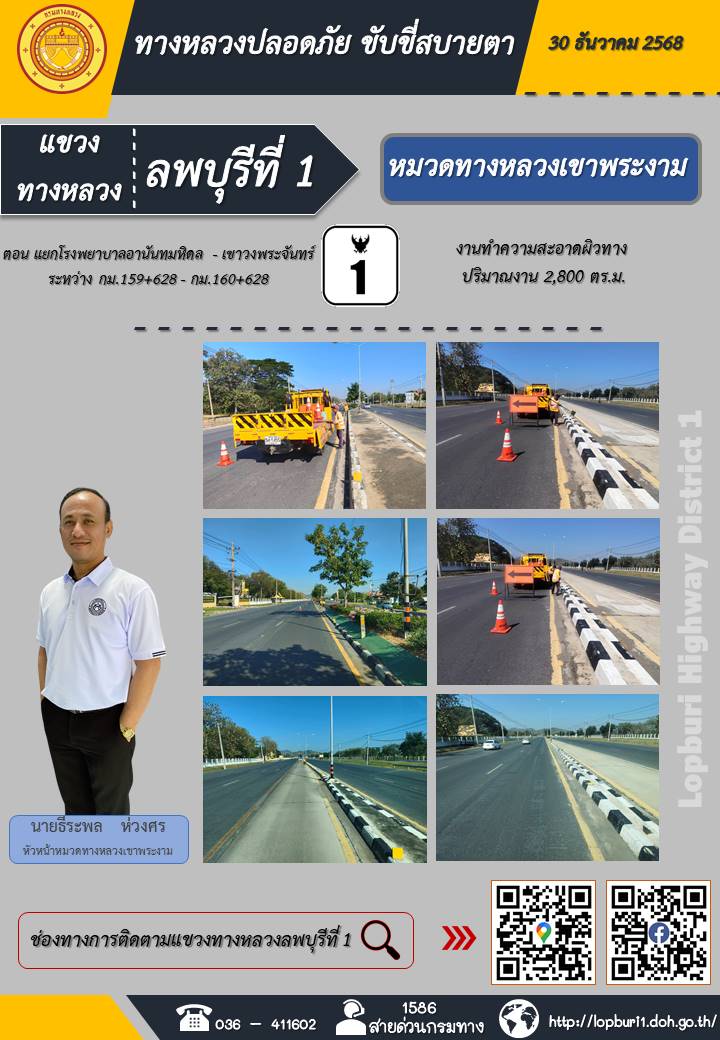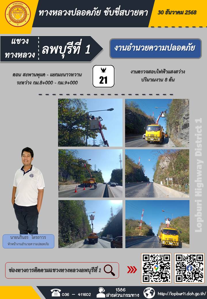 ทางหลวงปลอดภัยขับขี่สบายตา แขวงทางหลวงลพบุรีที่ 1 ประจำวันที่ 30 ธันวาคม 2568