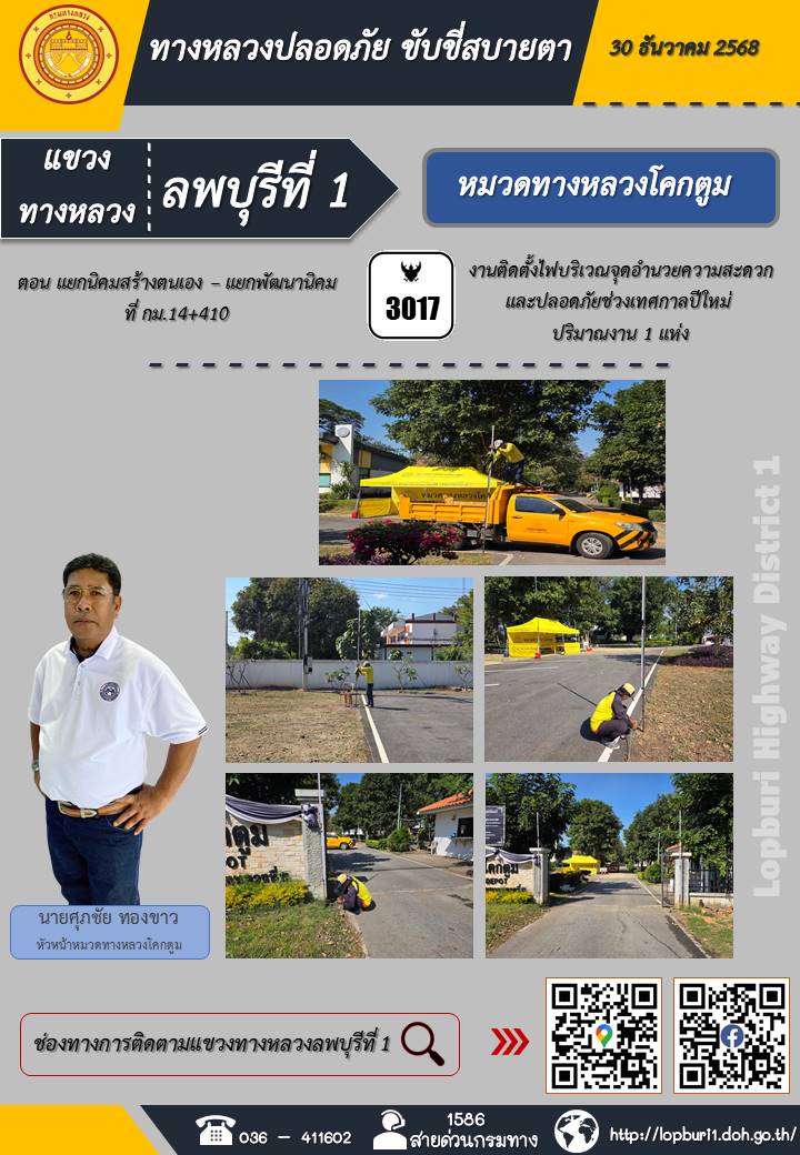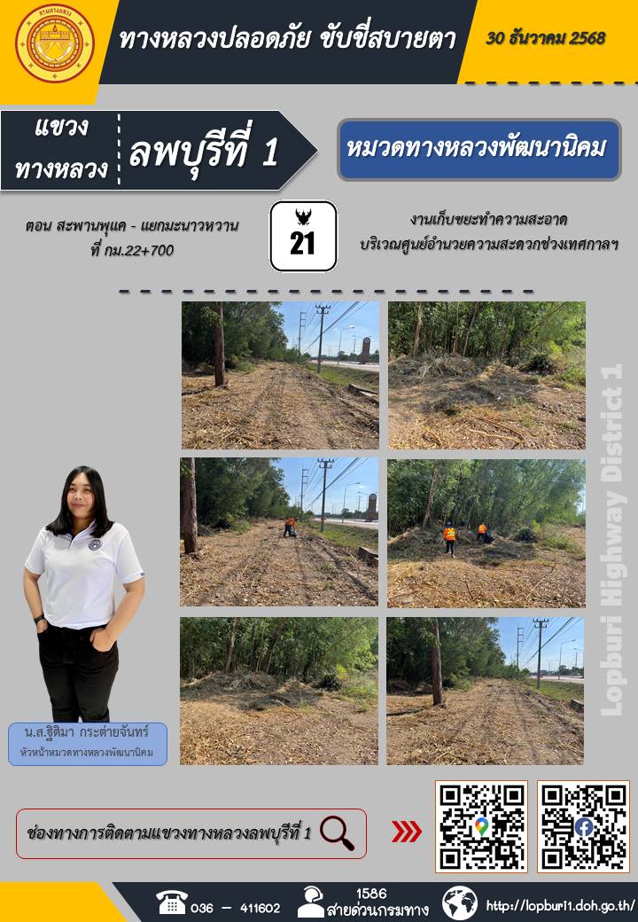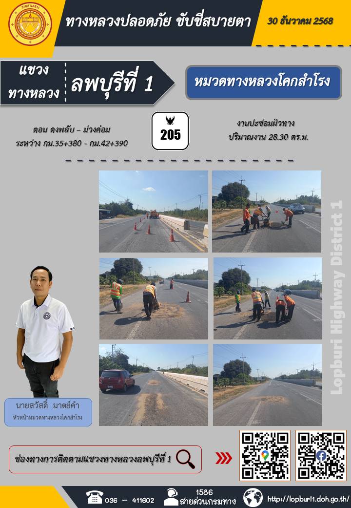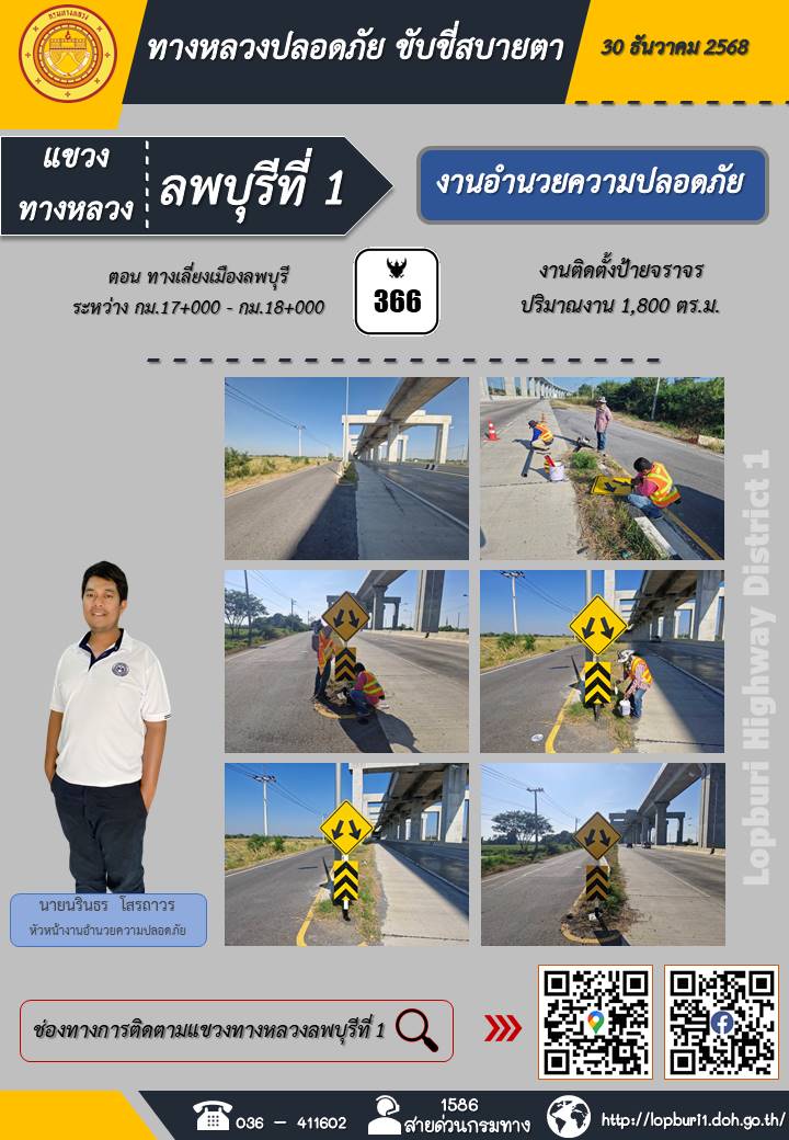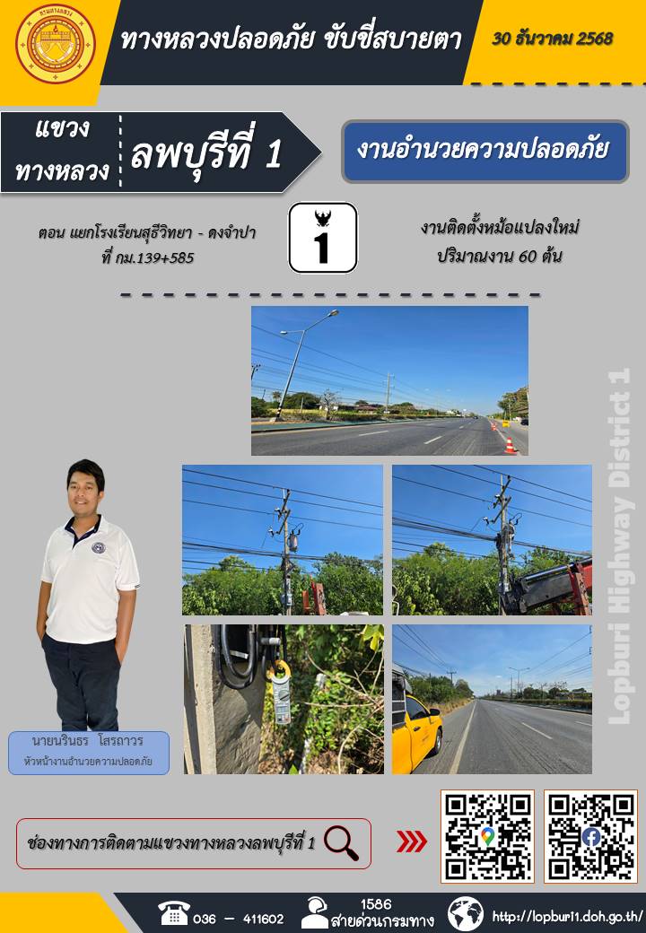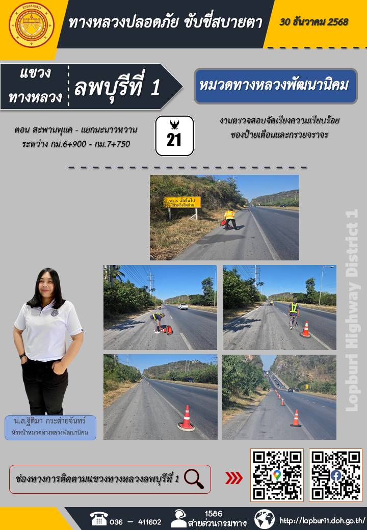 ทางหลวงปลอดภัยขับขี่สบายตา แขวงทางหลวงลพบุรีที่ 1 ประจำวันที่ 5 มกราคม 2569