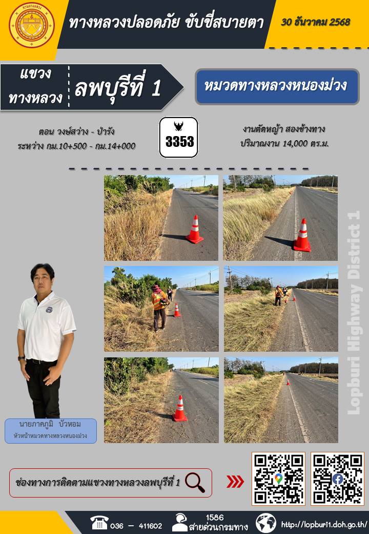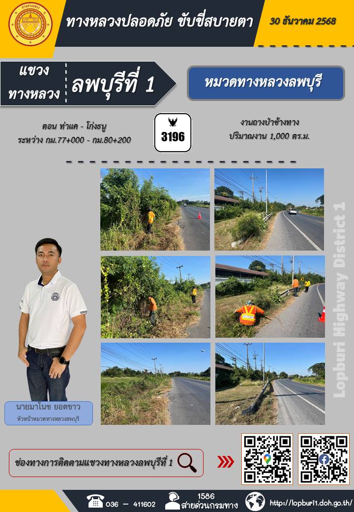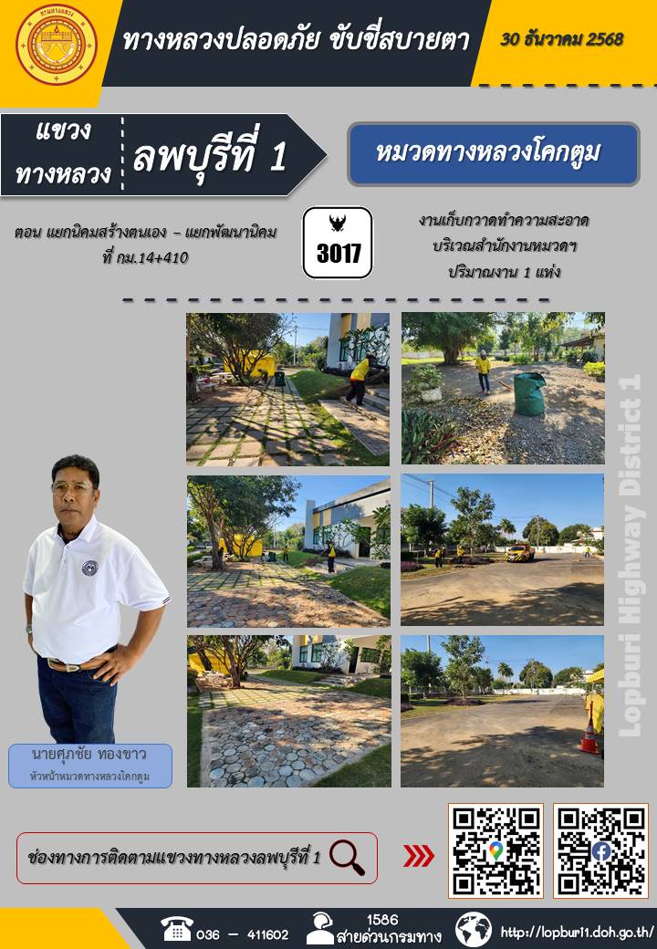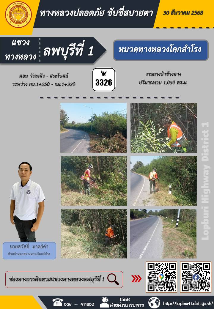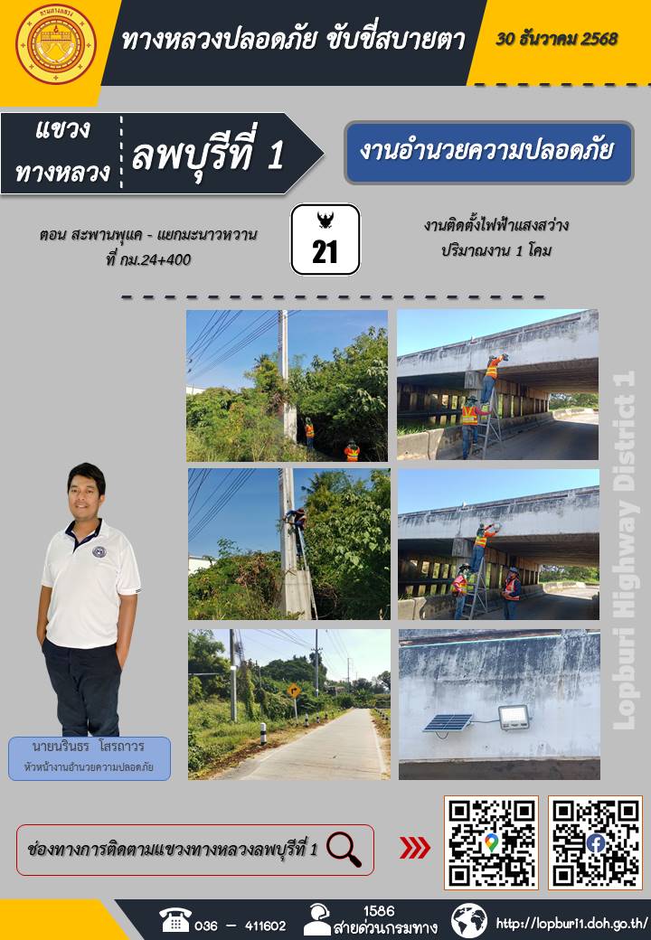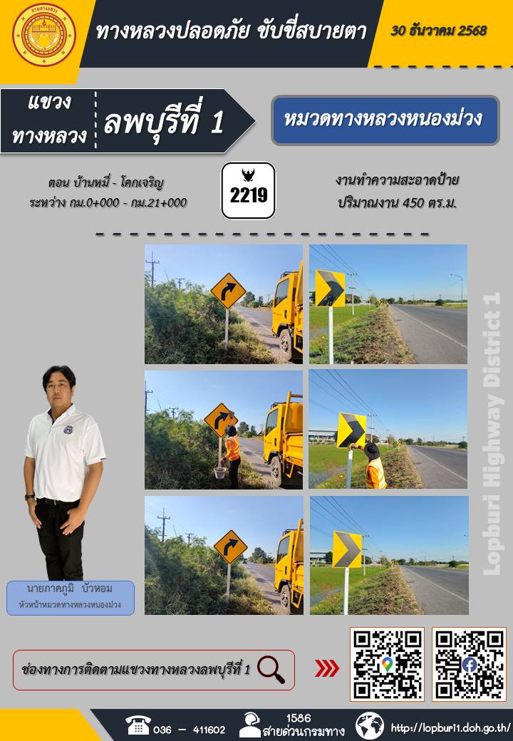 ทางหลวงปลอดภัยขับขี่สบายตา แขวงทางหลวงลพบุรีที่ 1 ประจำวันที่ 5 มกราคม 2569