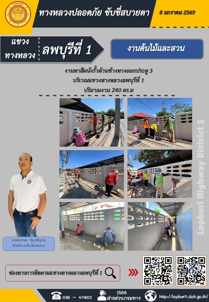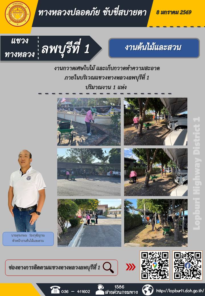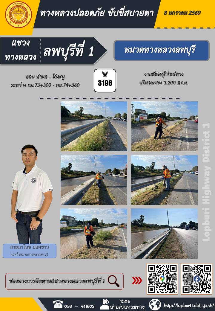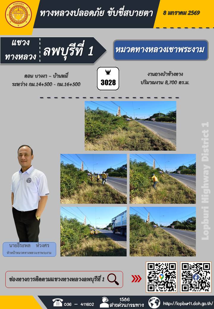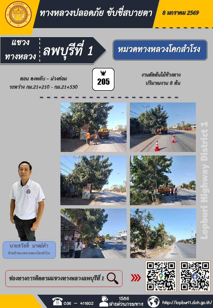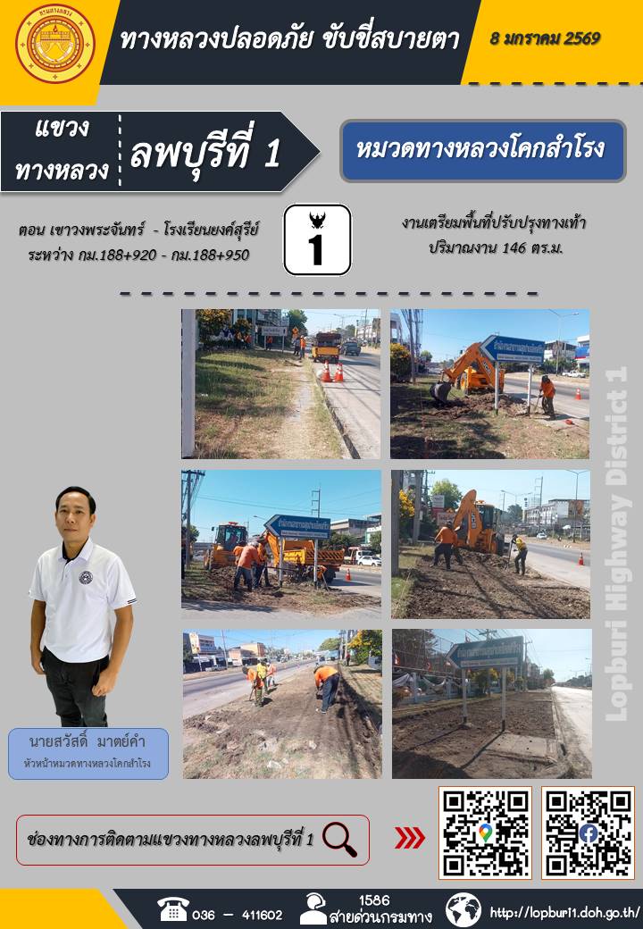 ทางหลวงปลอดภัยขับขี่สบายตา แขวงทางหลวงลพบุรีที่ 1 ประจำวันที่ 8 มกราคม 2569