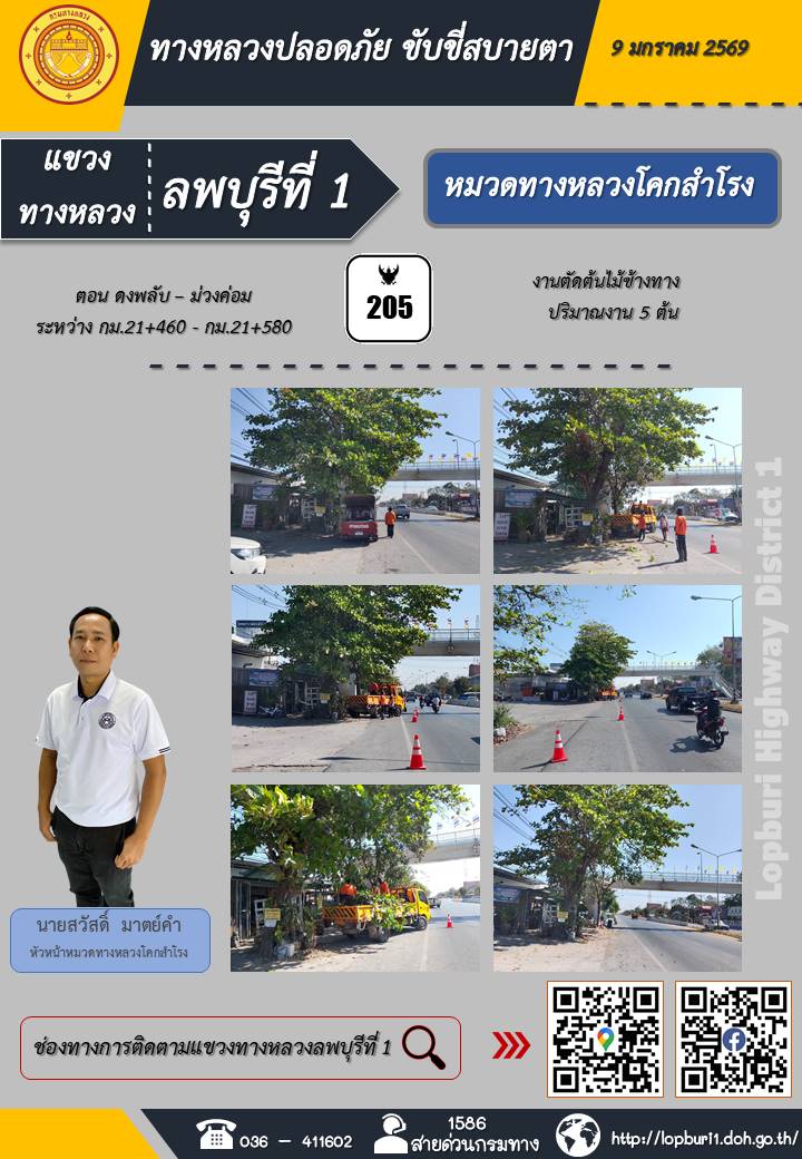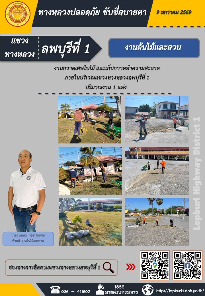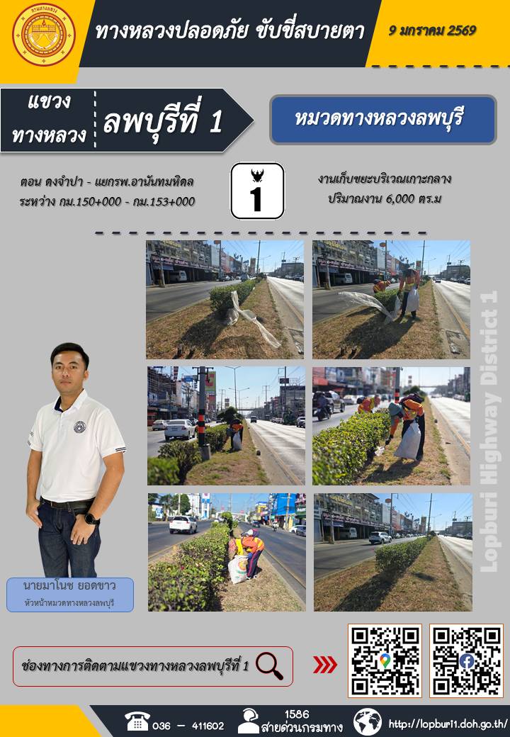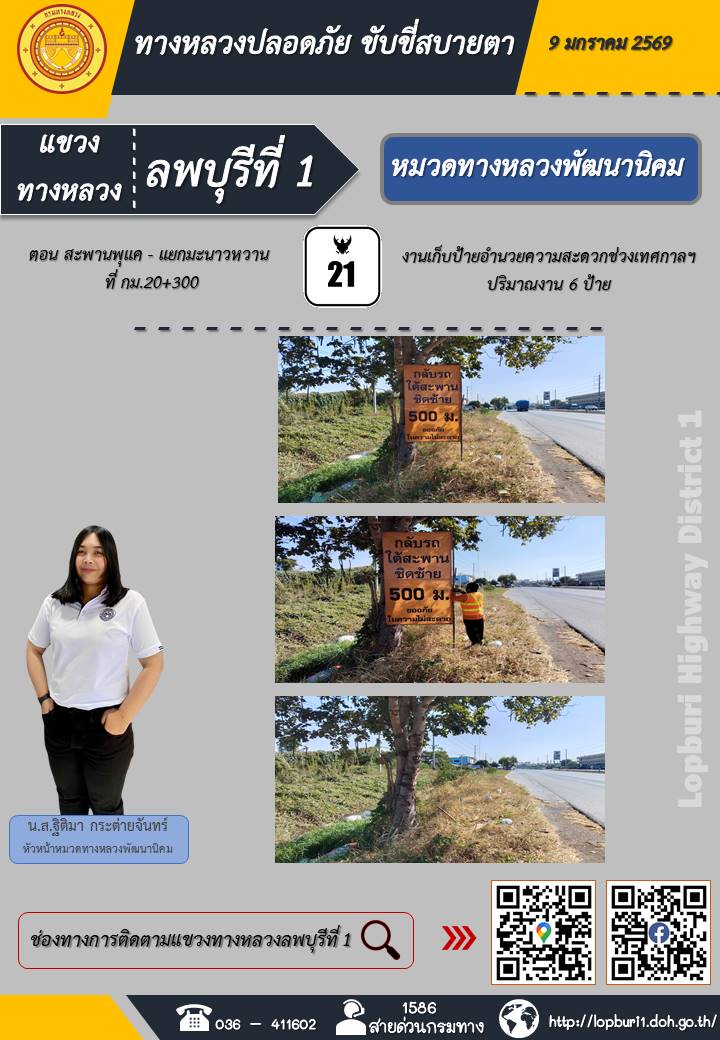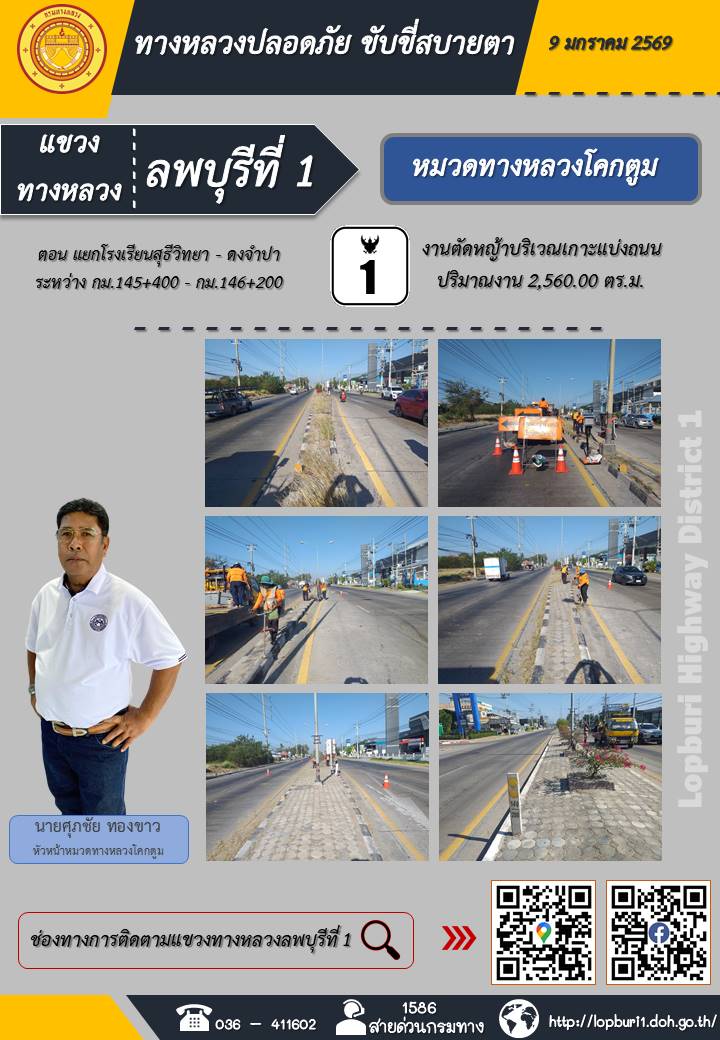 ทางหลวงปลอดภัยขับขี่สบายตา แขวงทางหลวงลพบุรีที่ 1 ประจำวันที่ 9 มกราคม 2569