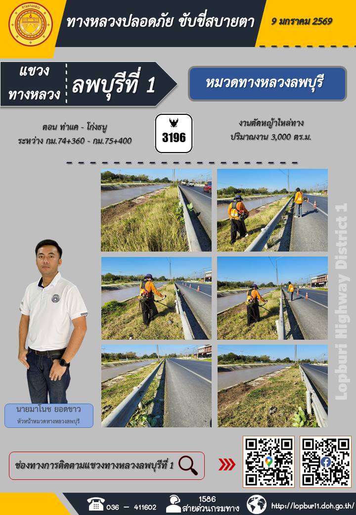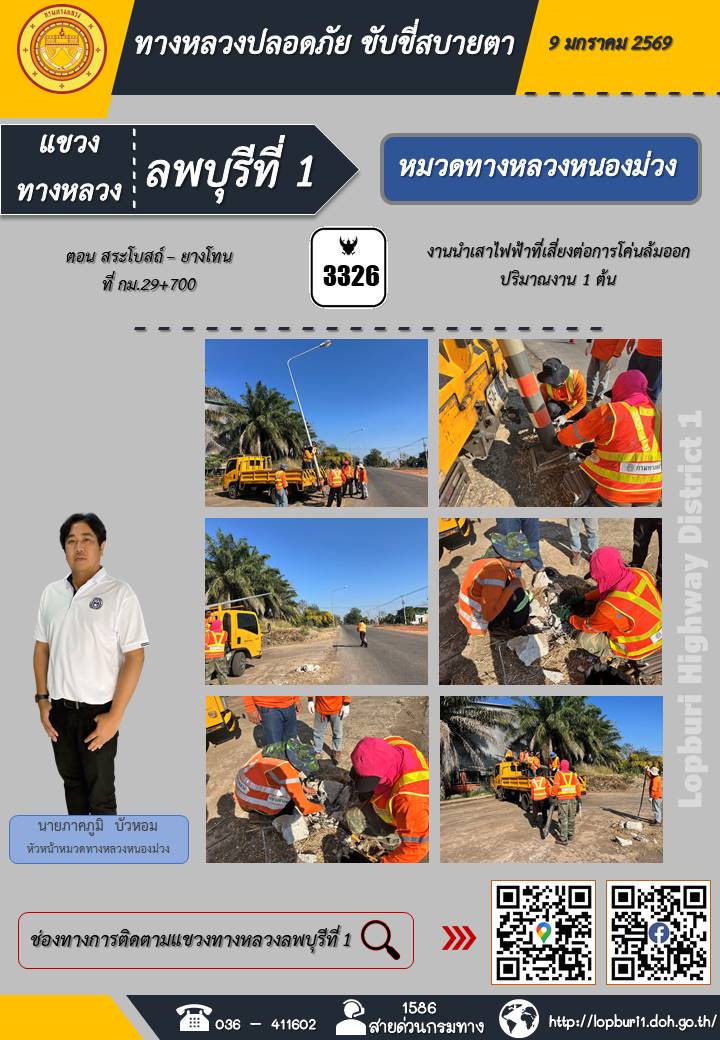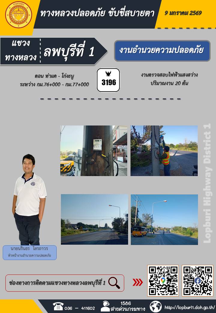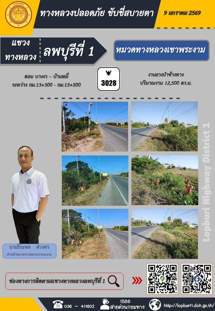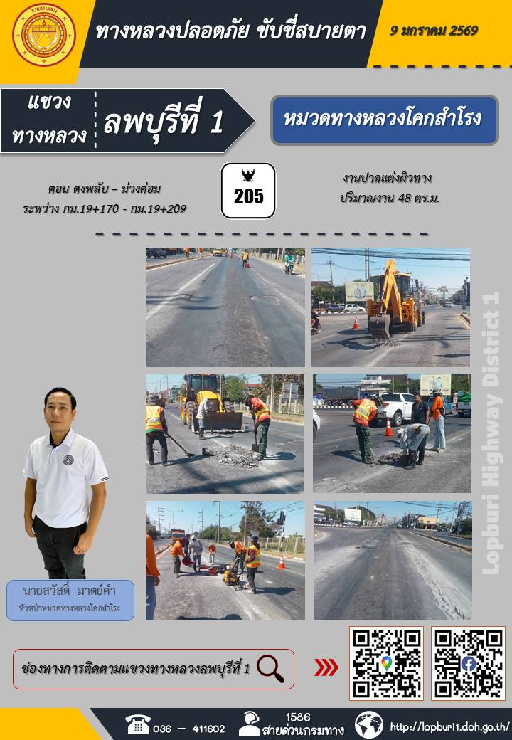 ทางหลวงปลอดภัยขับขี่สบายตา แขวงทางหลวงลพบุรีที่ 1 ประจำวันที่ 9 มกราคม 2569