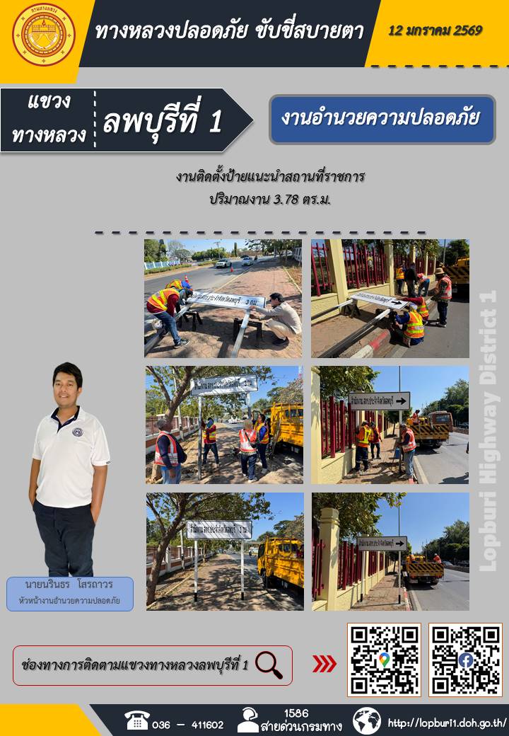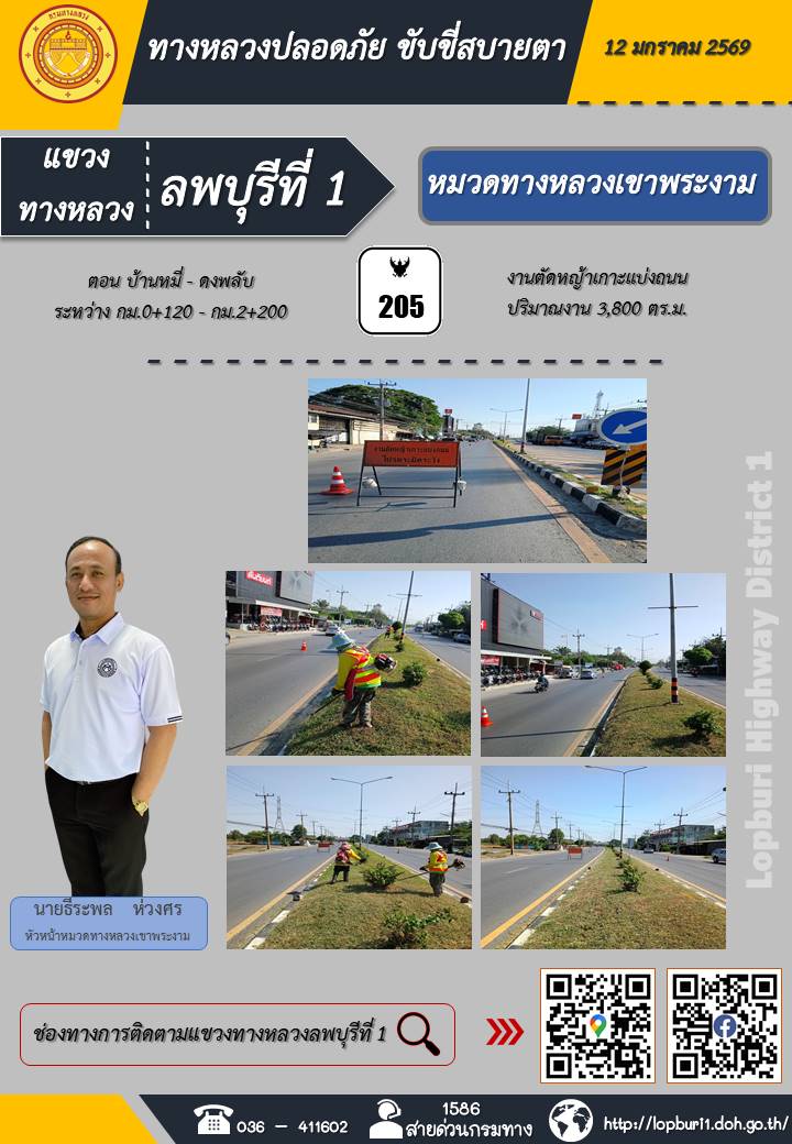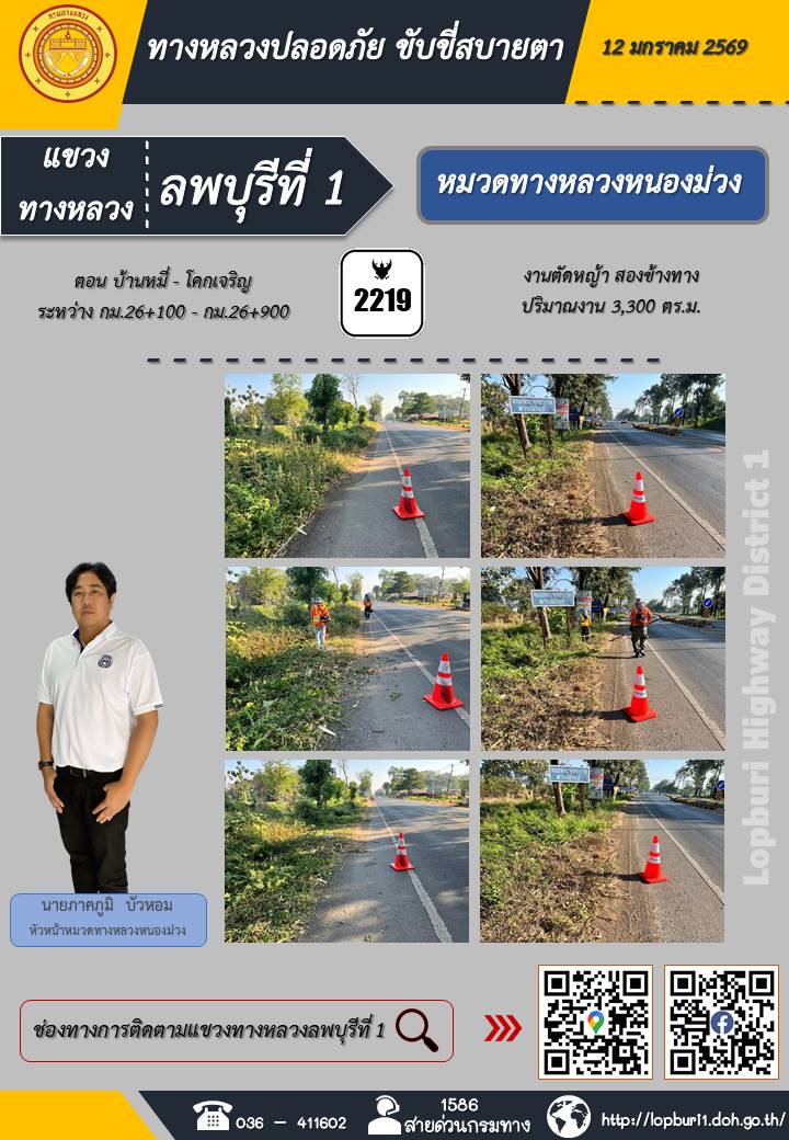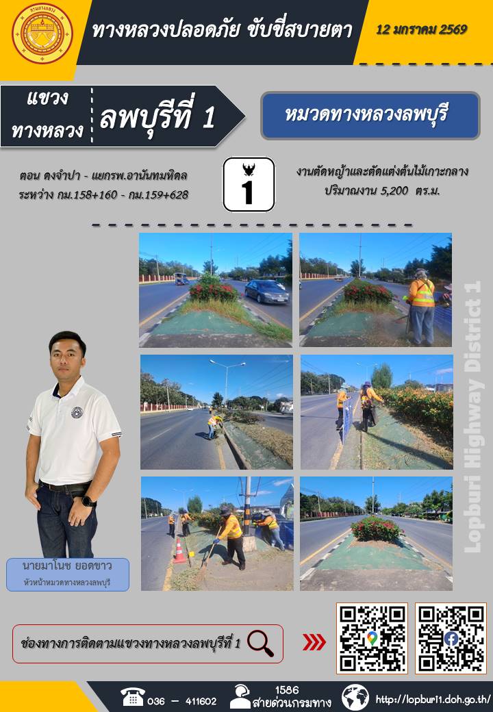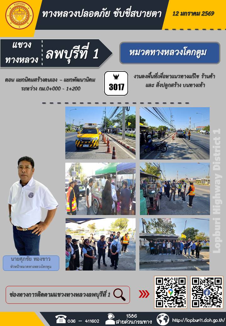 ทางหลวงปลอดภัยขับขี่สบายตา แขวงทางหลวงลพบุรีที่ 1 ประจำวันที่ 12 มกราคม 2569