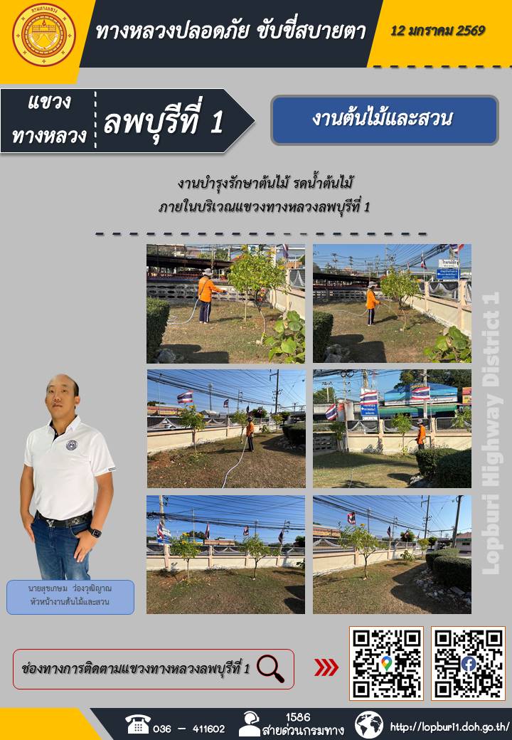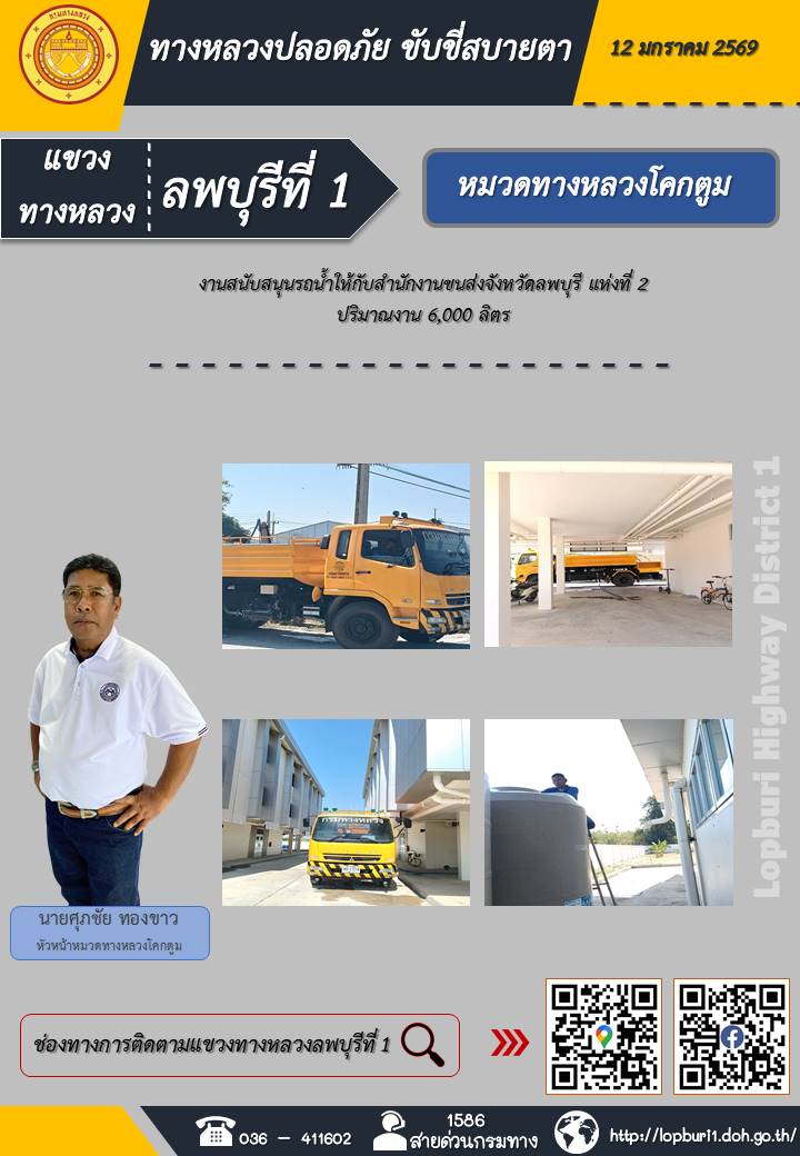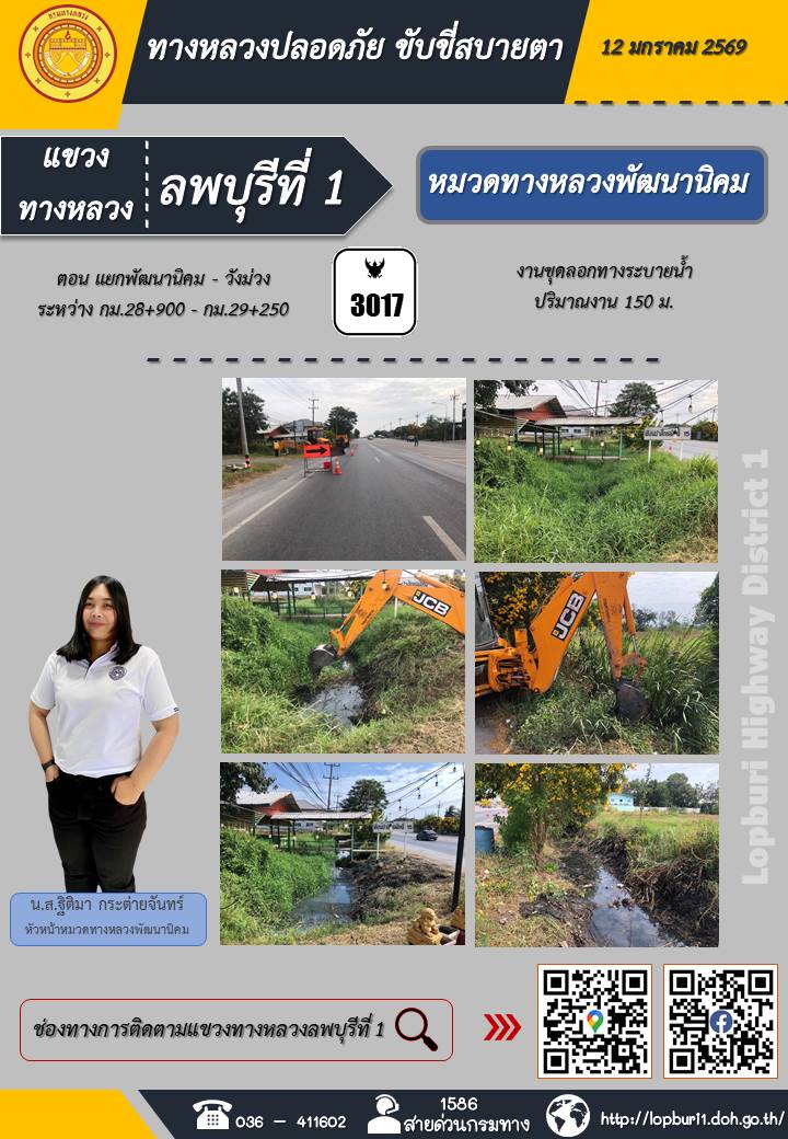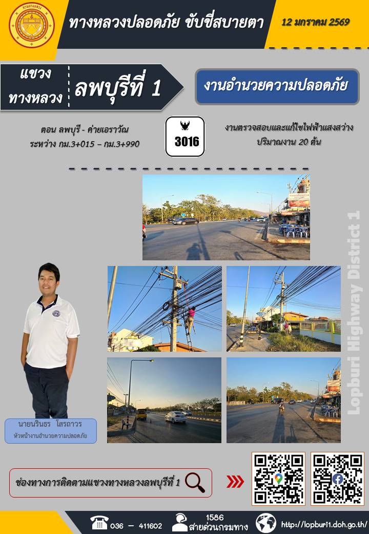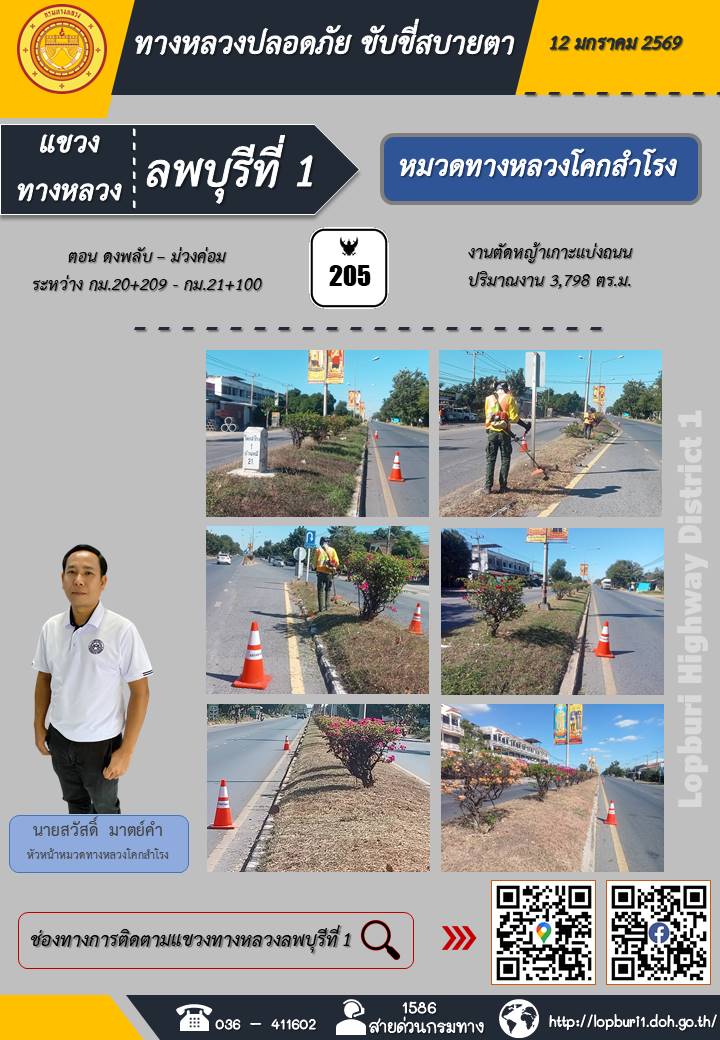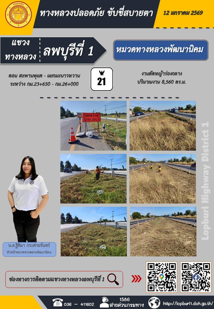 ทางหลวงปลอดภัยขับขี่สบายตา แขวงทางหลวงลพบุรีที่ 1 ประจำวันที่ 12 มกราคม 2569