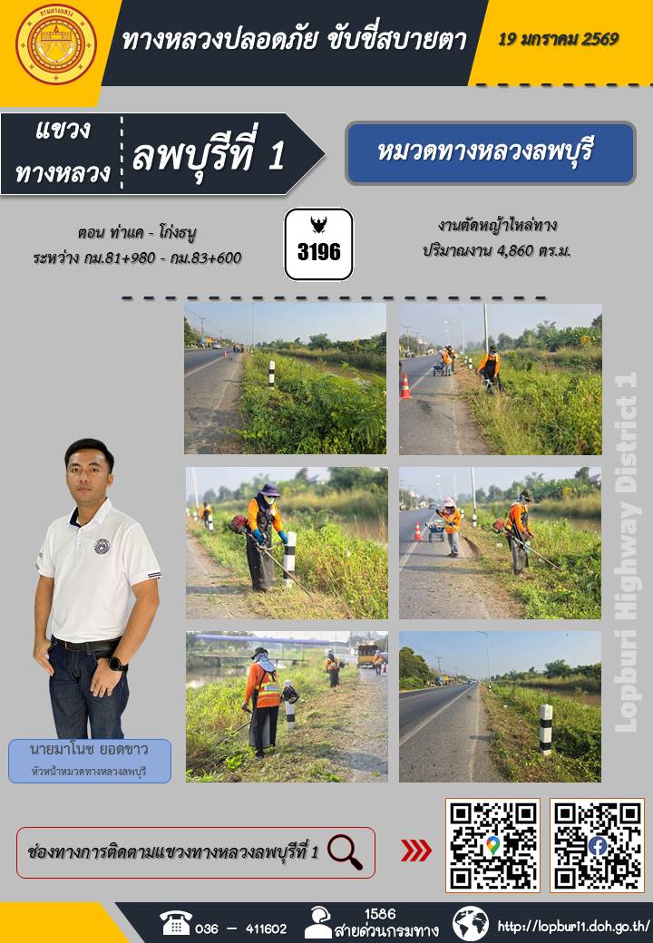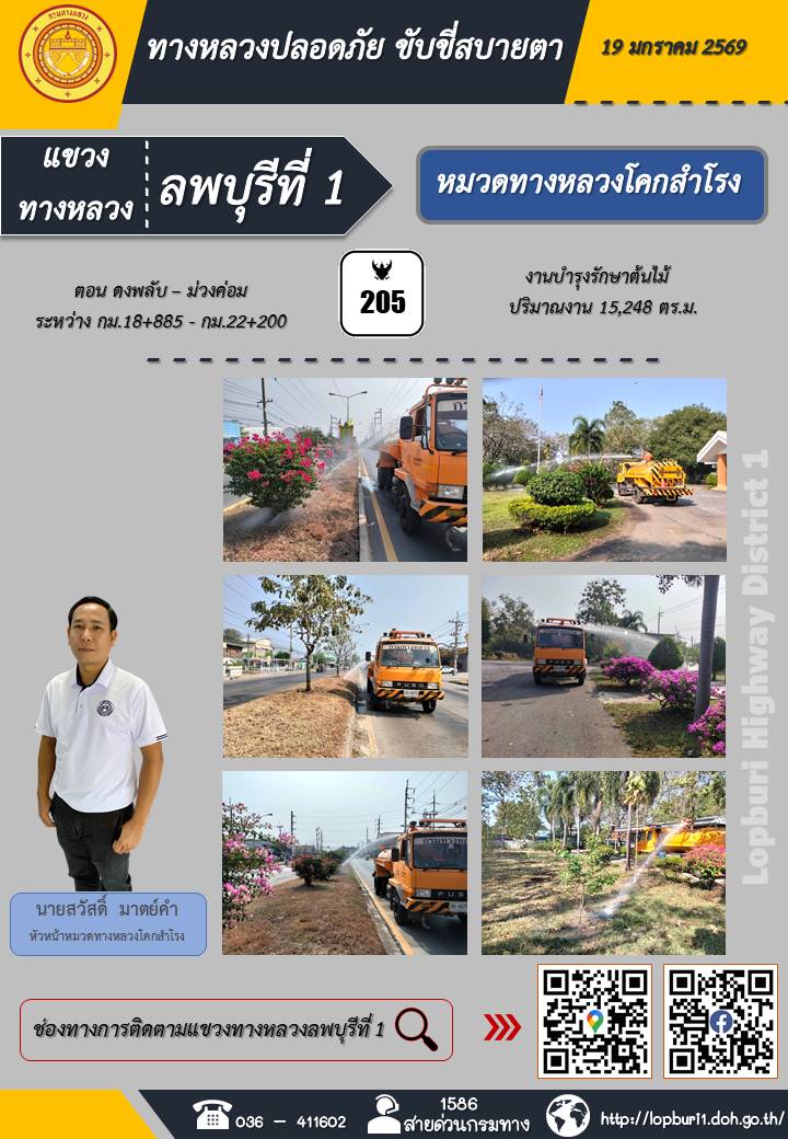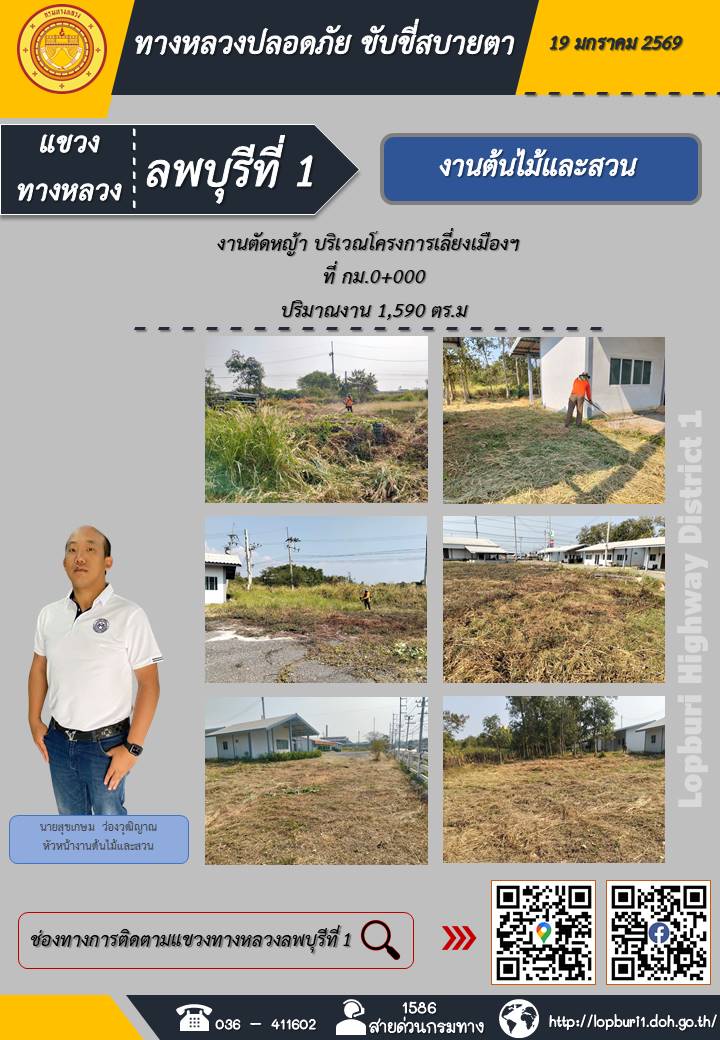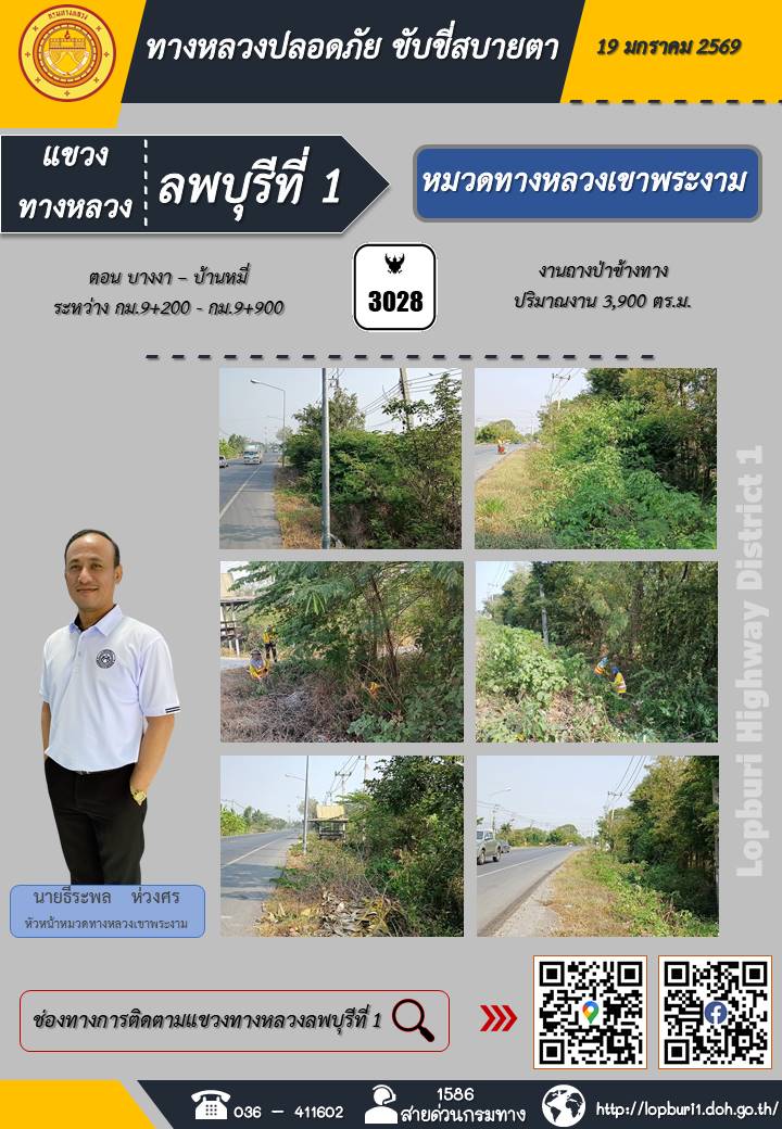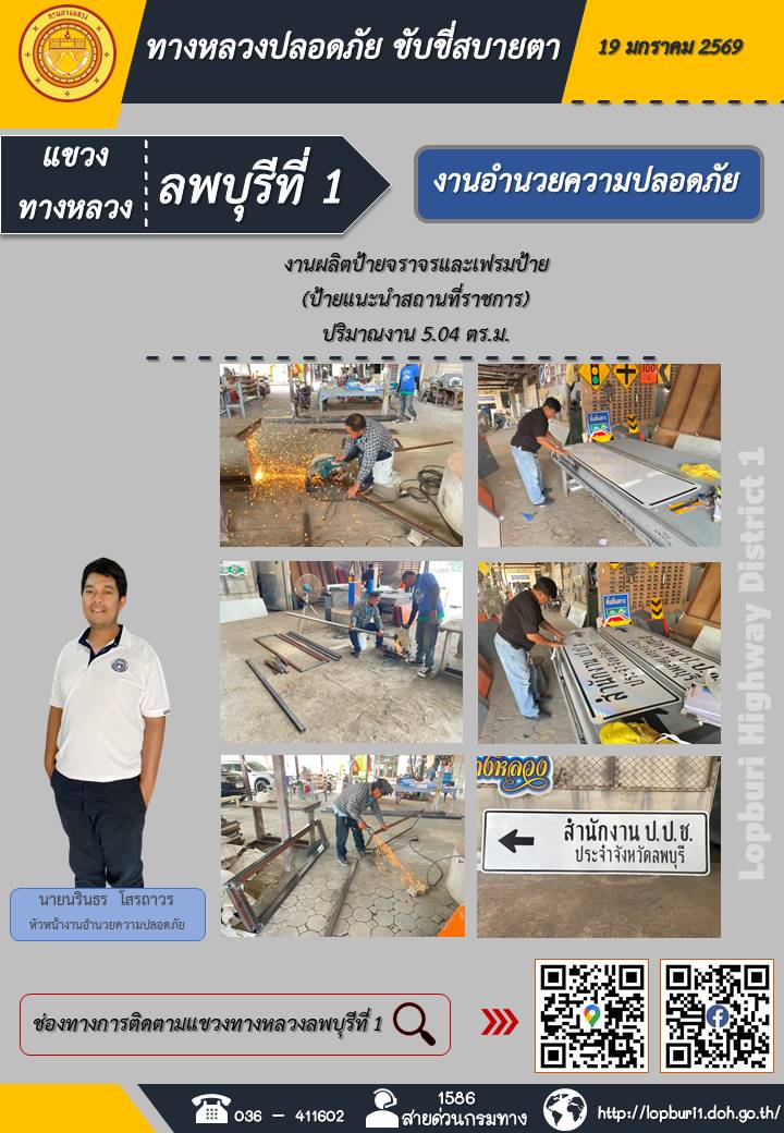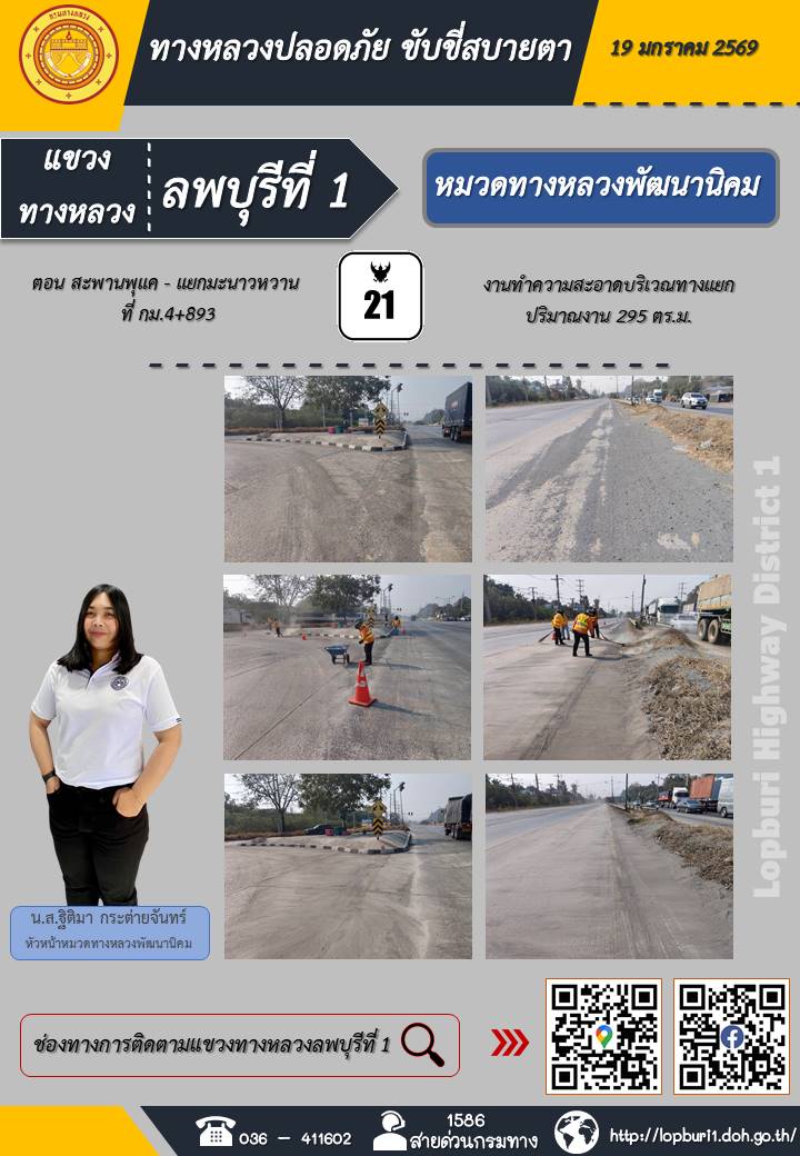 ทางหลวงปลอดภัยขับขี่สบายตา แขวงทางหลวงลพบุรีที่ 1 ประจำวันที่ 19 มกราคม 2569
