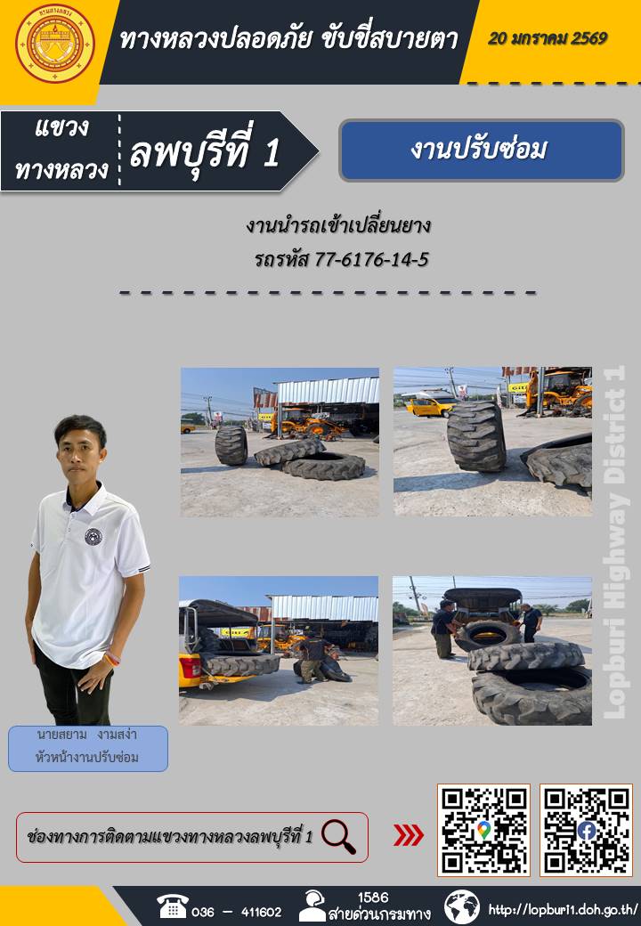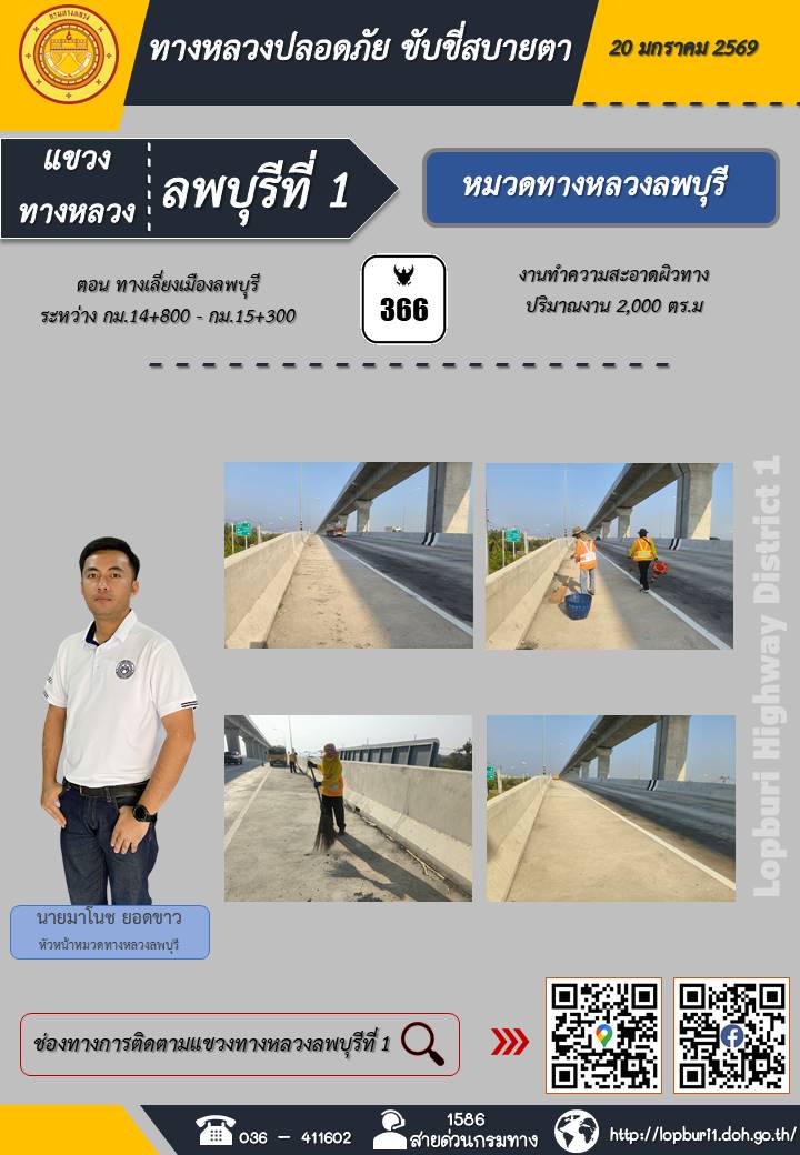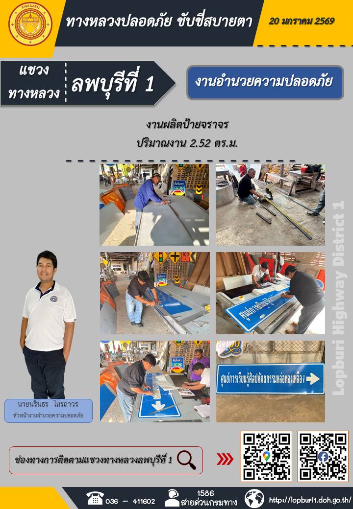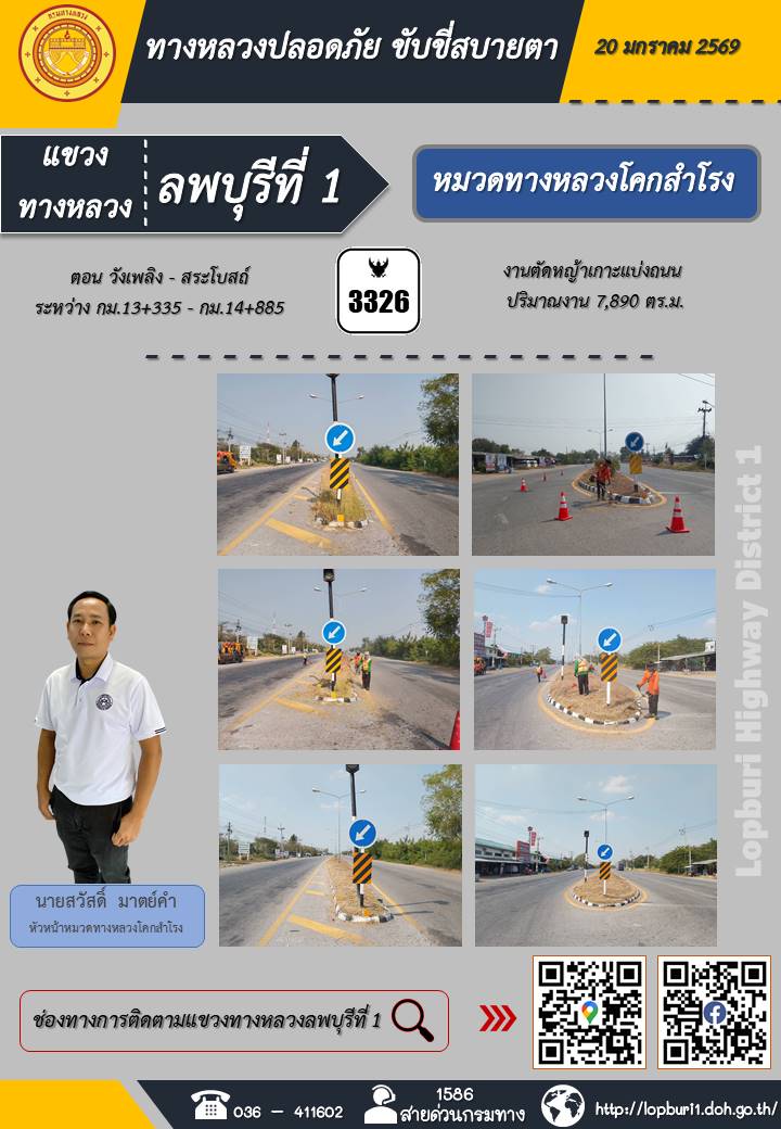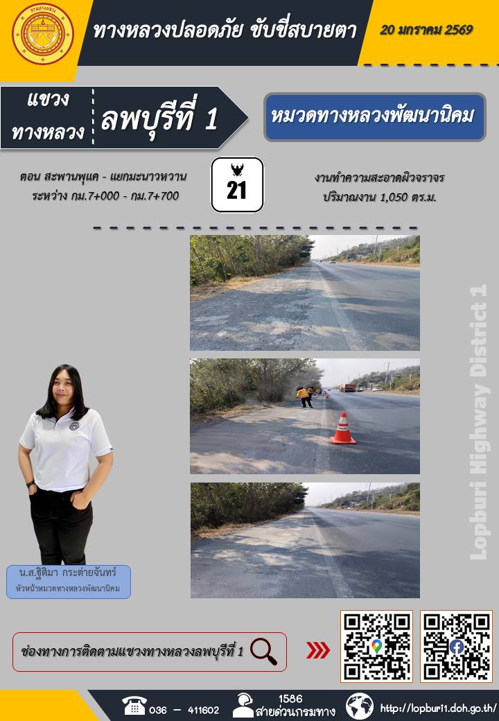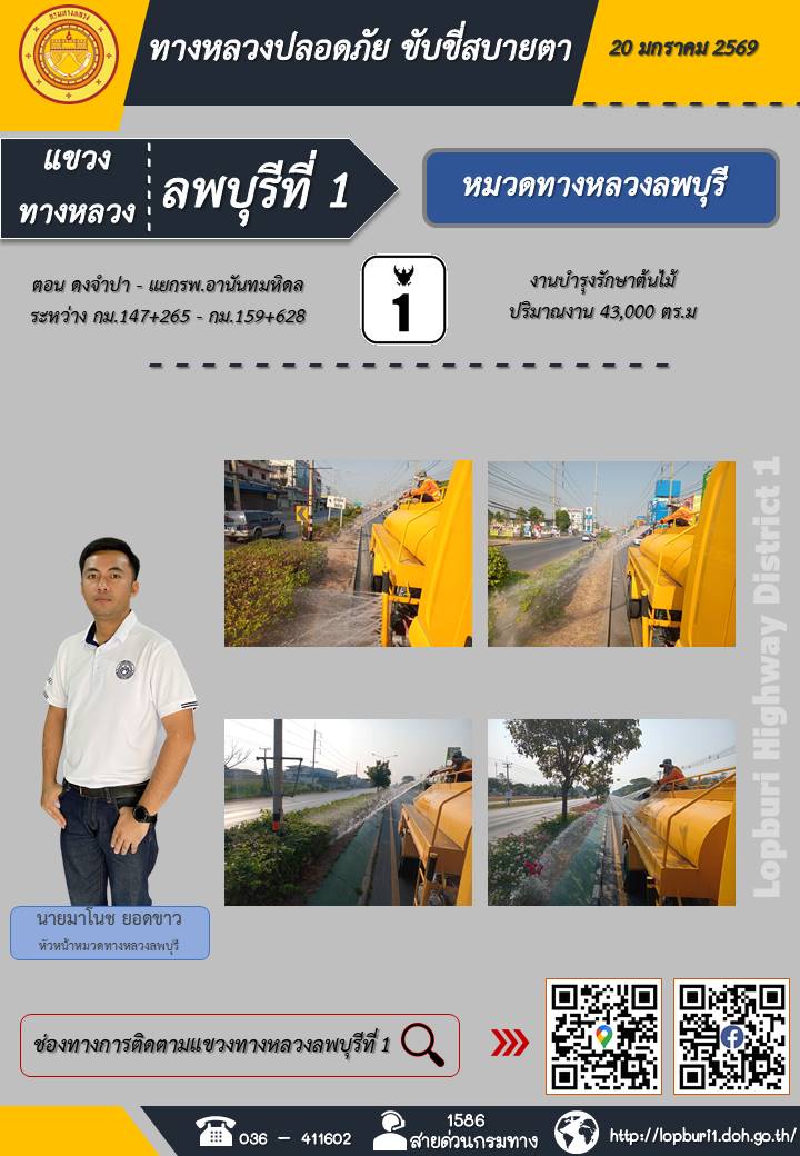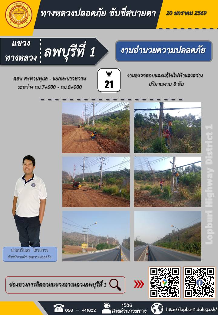 ทางหลวงปลอดภัยขับขี่สบายตา แขวงทางหลวงลพบุรีที่ 1 ประจำวันที่ 20 มกราคม 2569