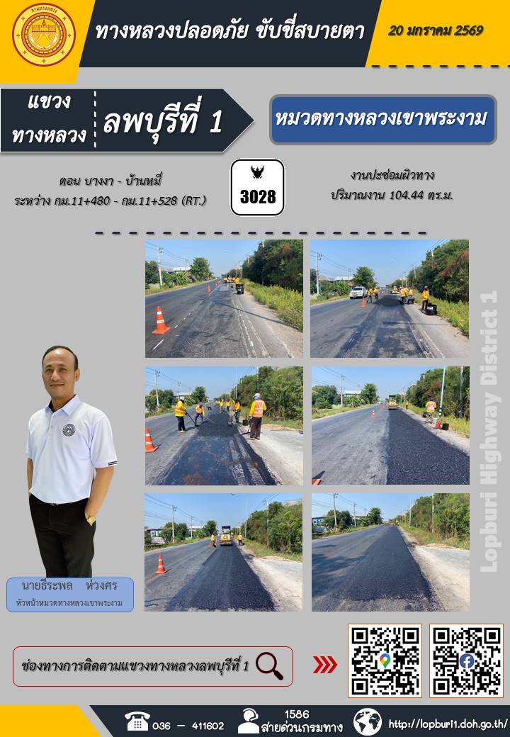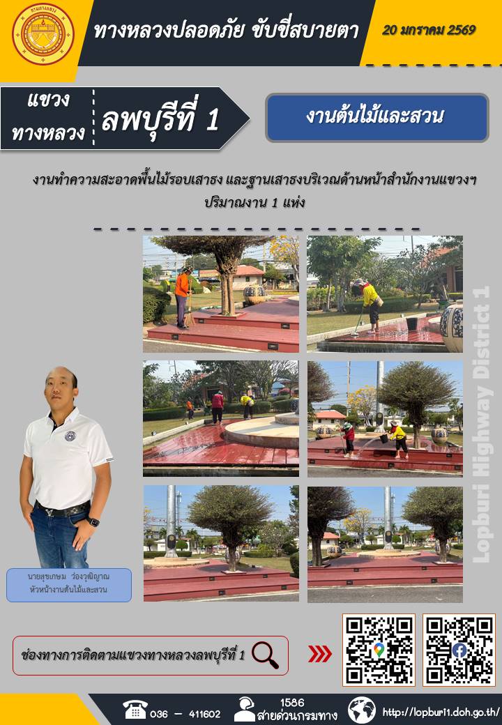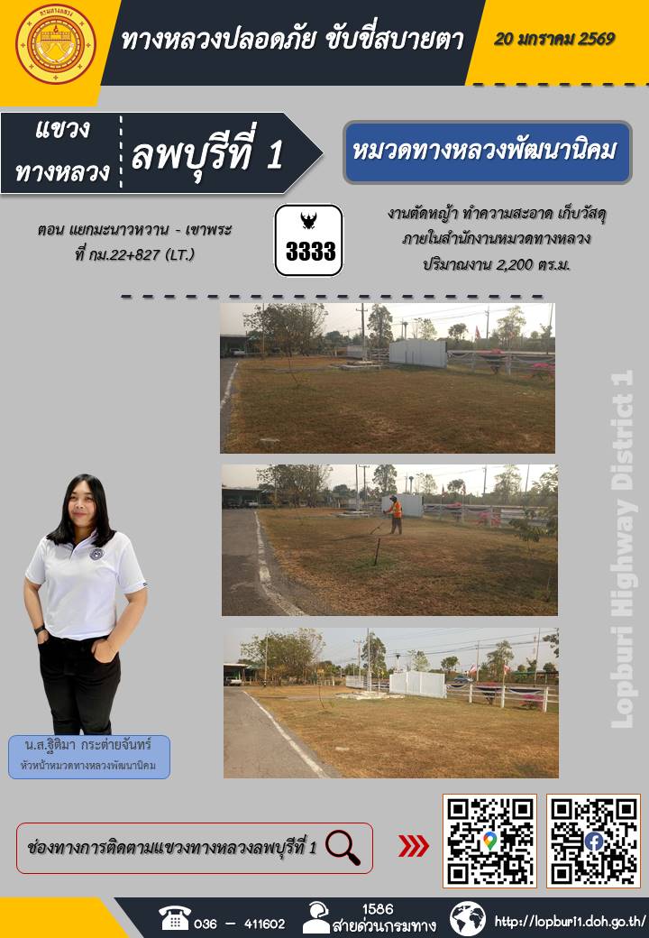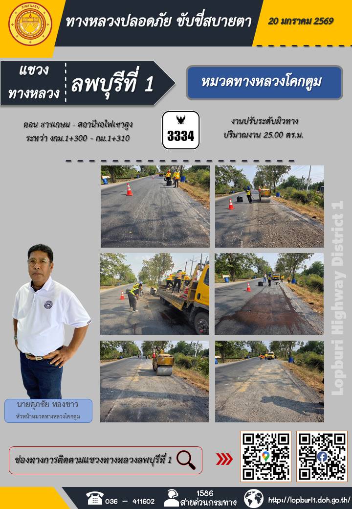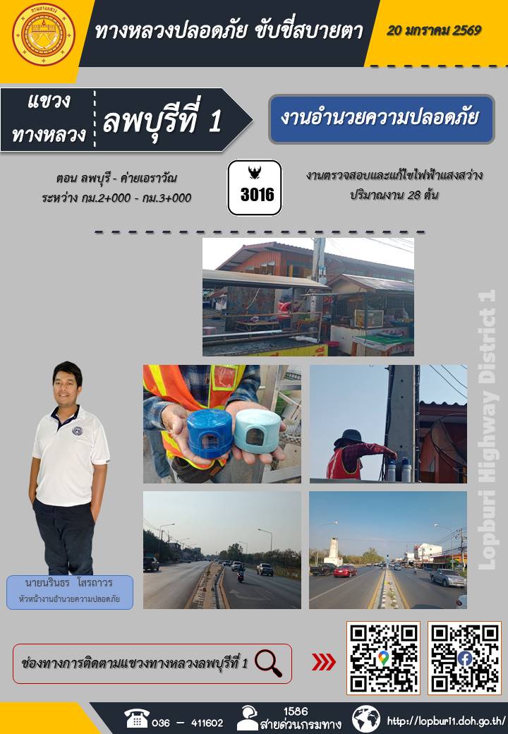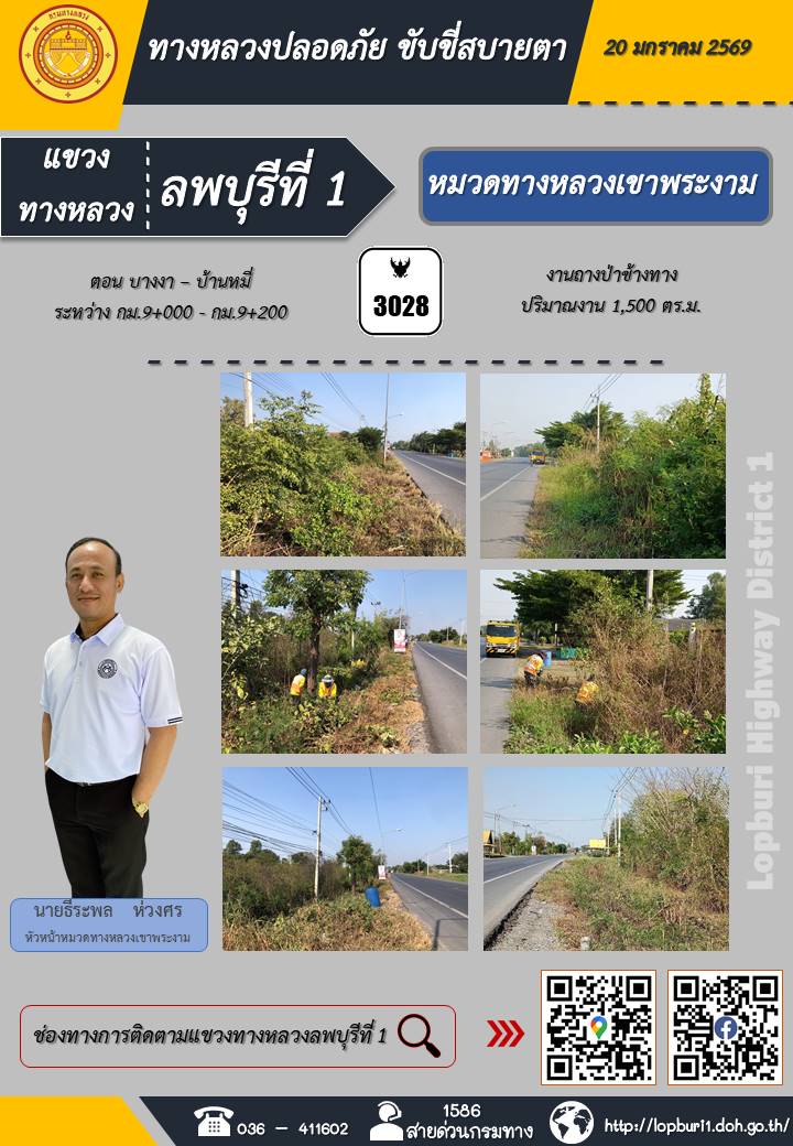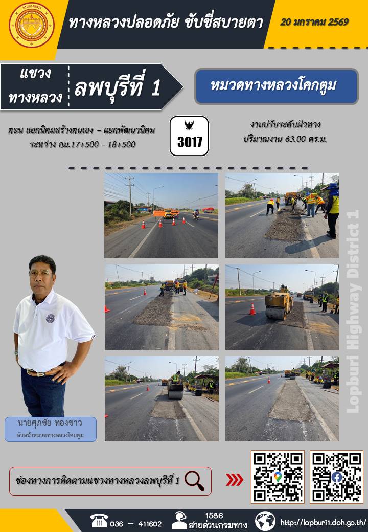 ทางหลวงปลอดภัยขับขี่สบายตา แขวงทางหลวงลพบุรีที่ 1 ประจำวันที่ 20 มกราคม 2569