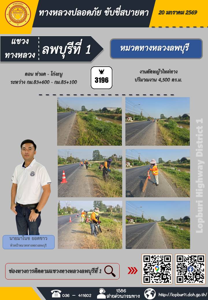 ข้อมูลภาพกิจกรรม : ทางหลวงปลอดภัยขับขี่สบายตา แขวงทางหลวงลพบุรีที่ 1 ประจำวันที่ 20 มกราคม 2569