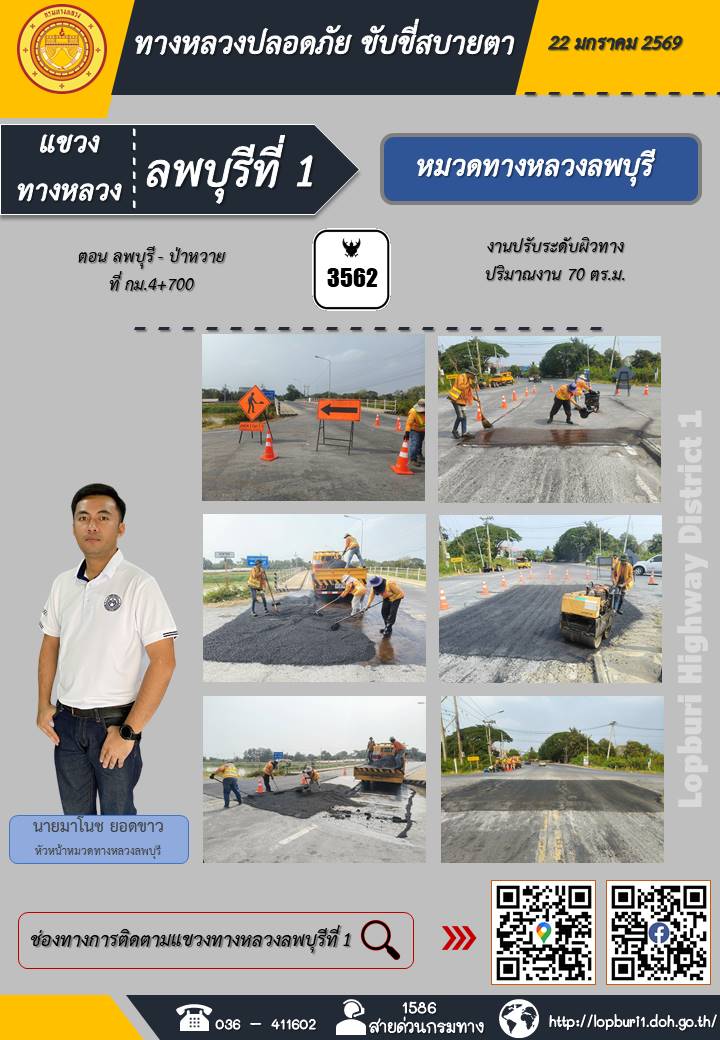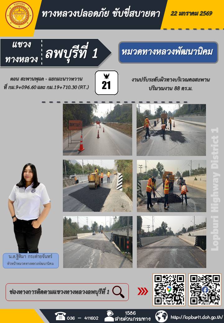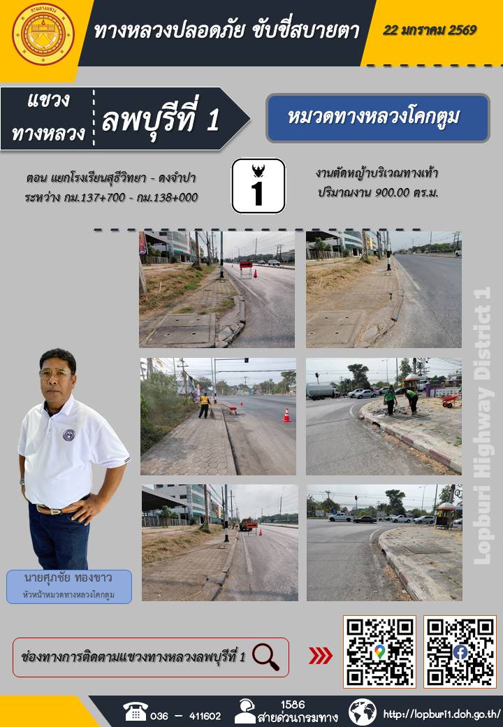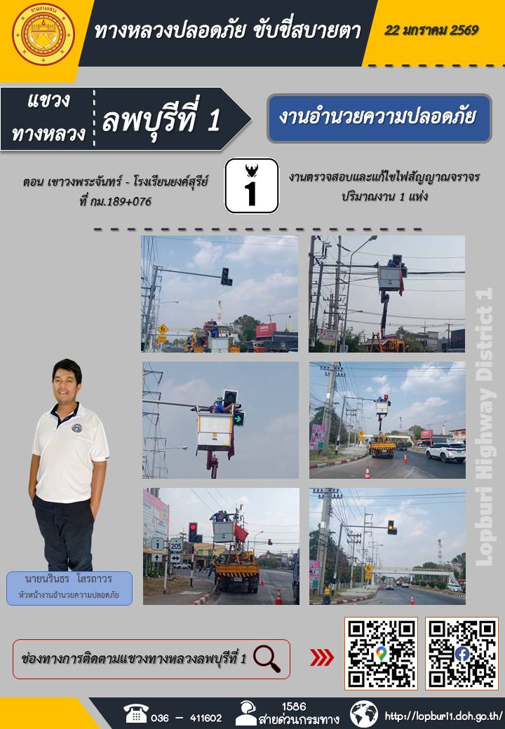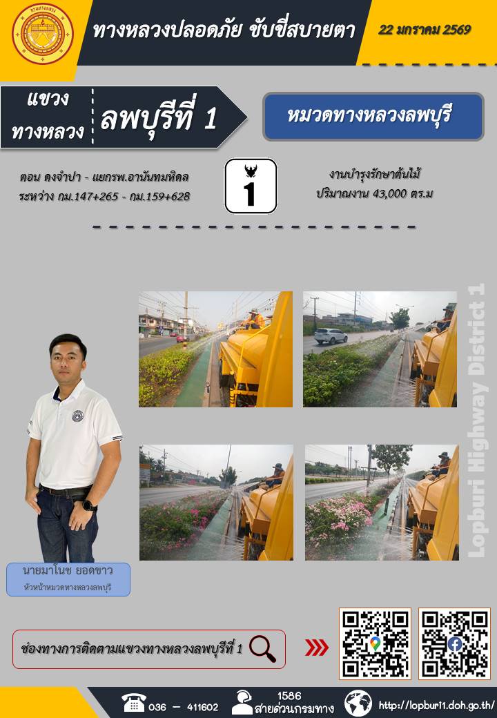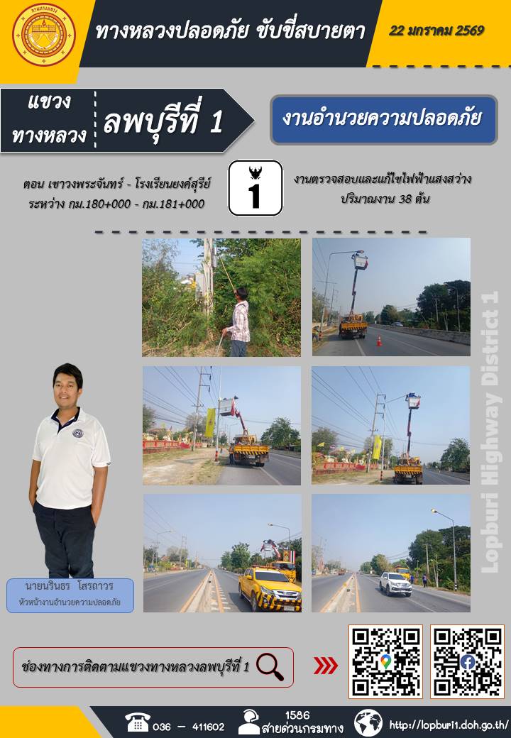 ทางหลวงปลอดภัยขับขี่สบายตา แขวงทางหลวงลพบุรีที่ 1 ประจำวันที่ 22 มกราคม 2569