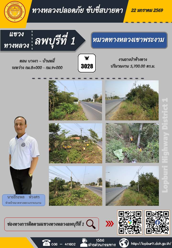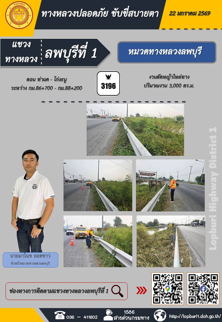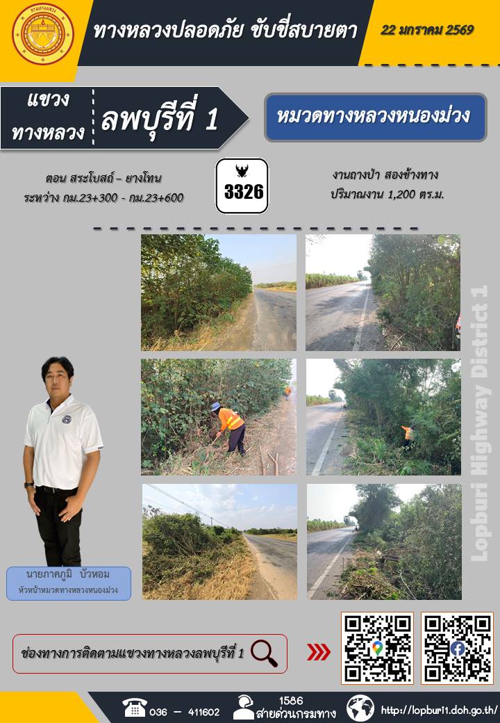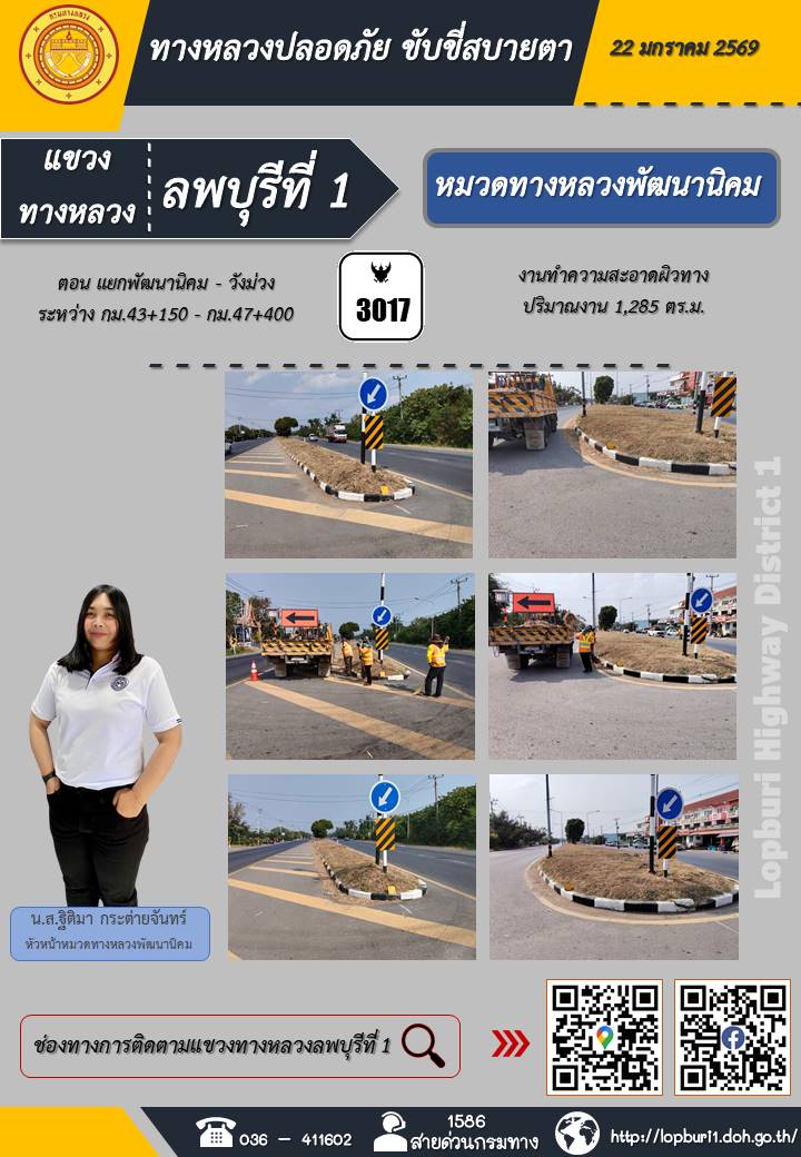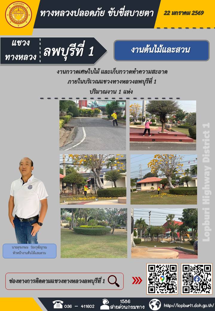 ทางหลวงปลอดภัยขับขี่สบายตา แขวงทางหลวงลพบุรีที่ 1 ประจำวันที่ 22 มกราคม 2569