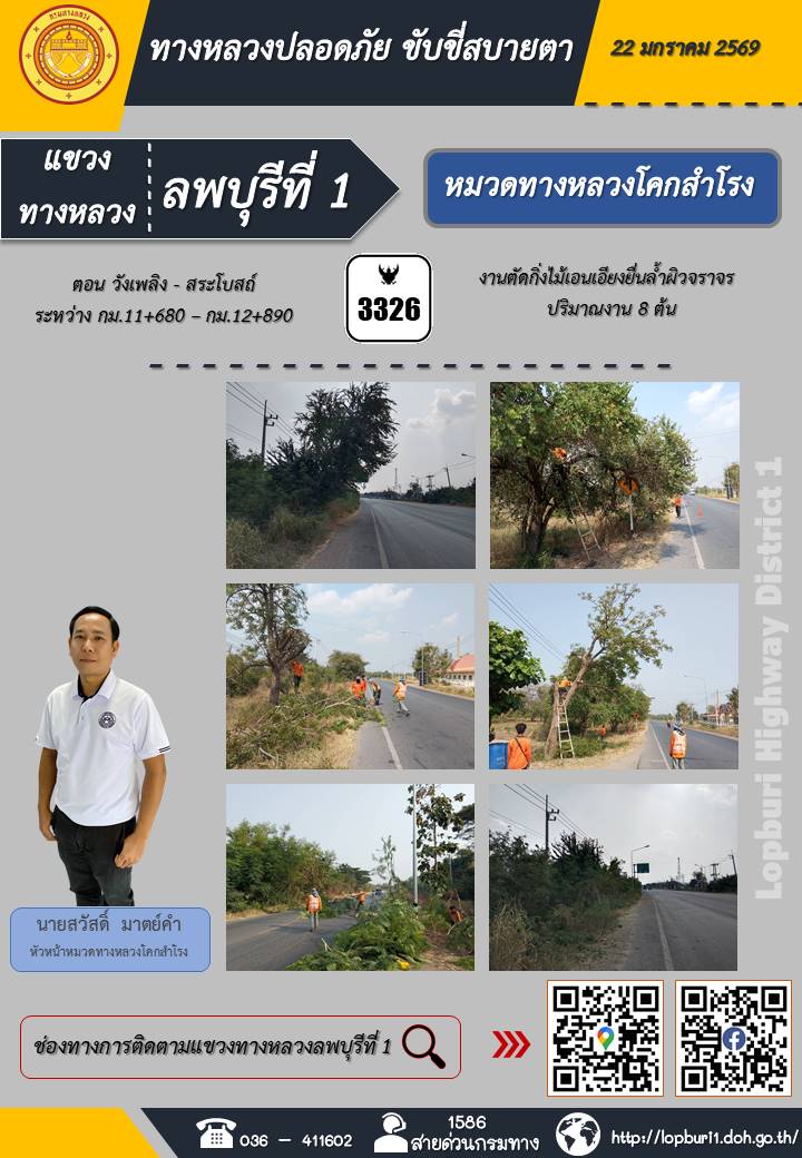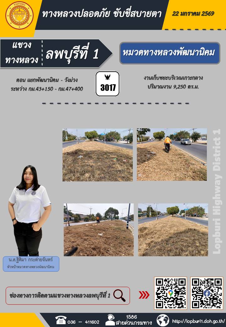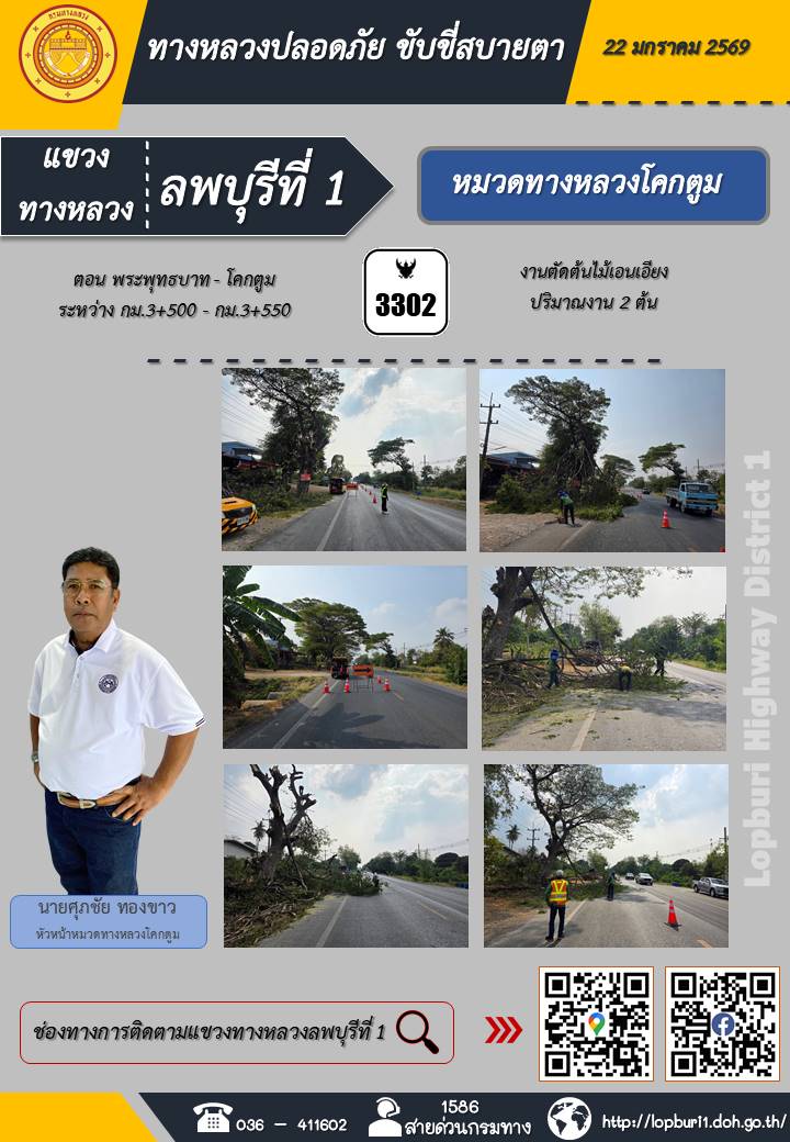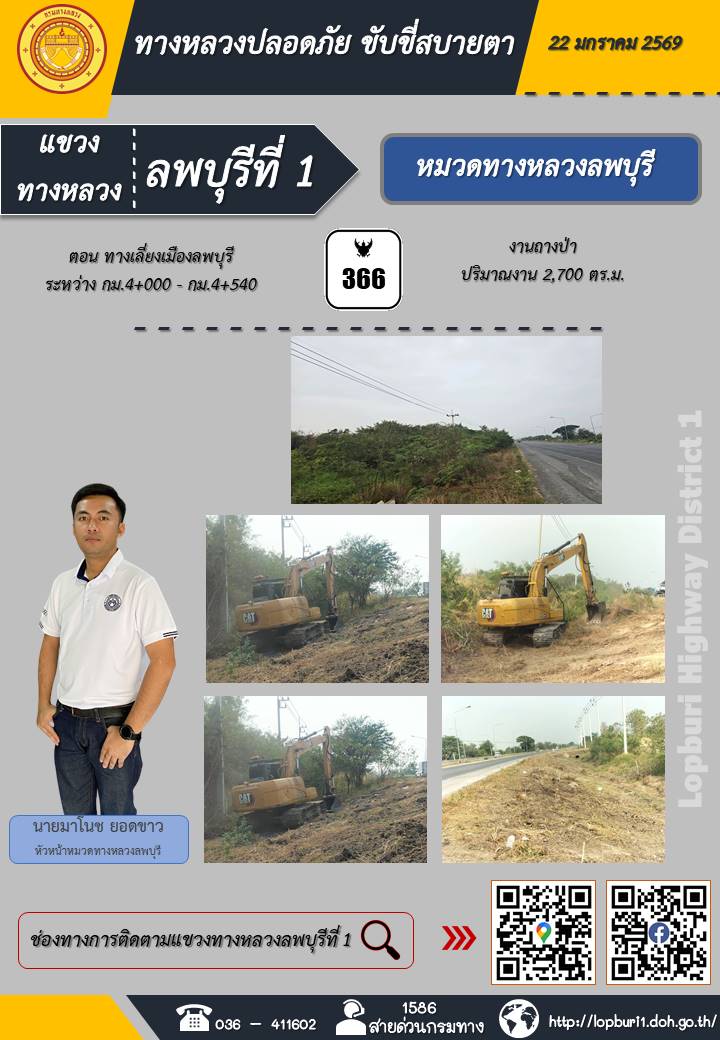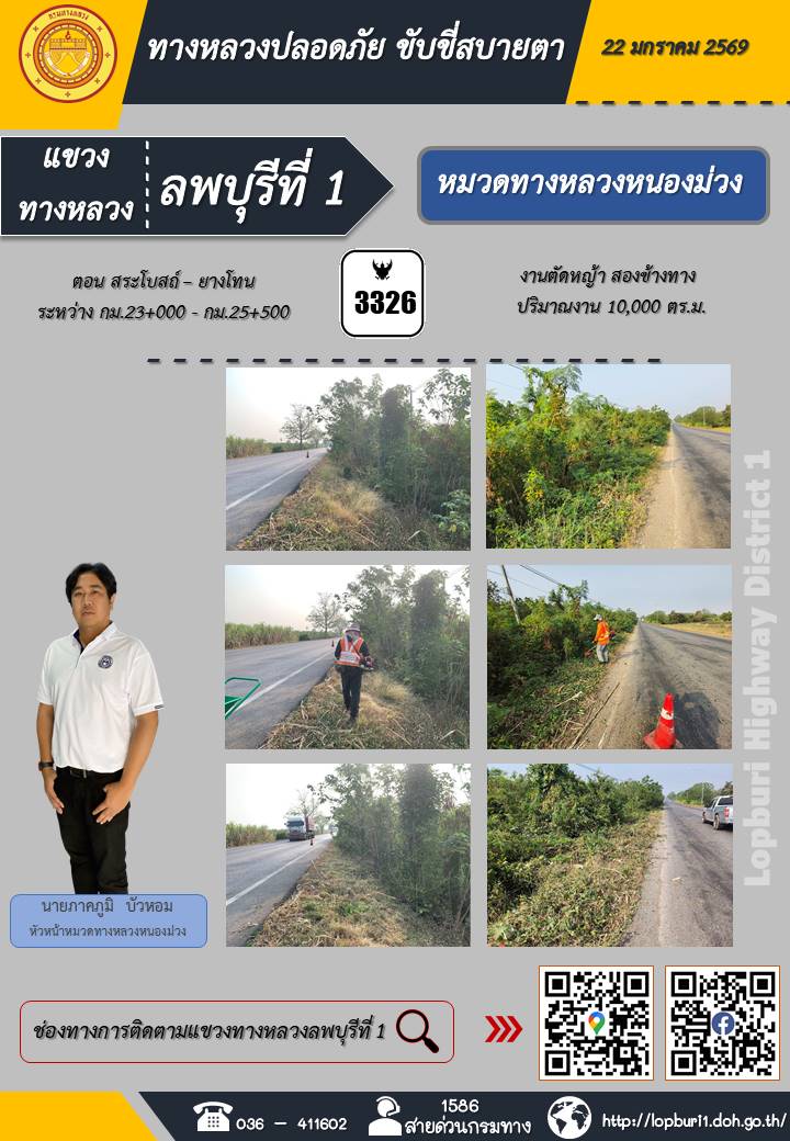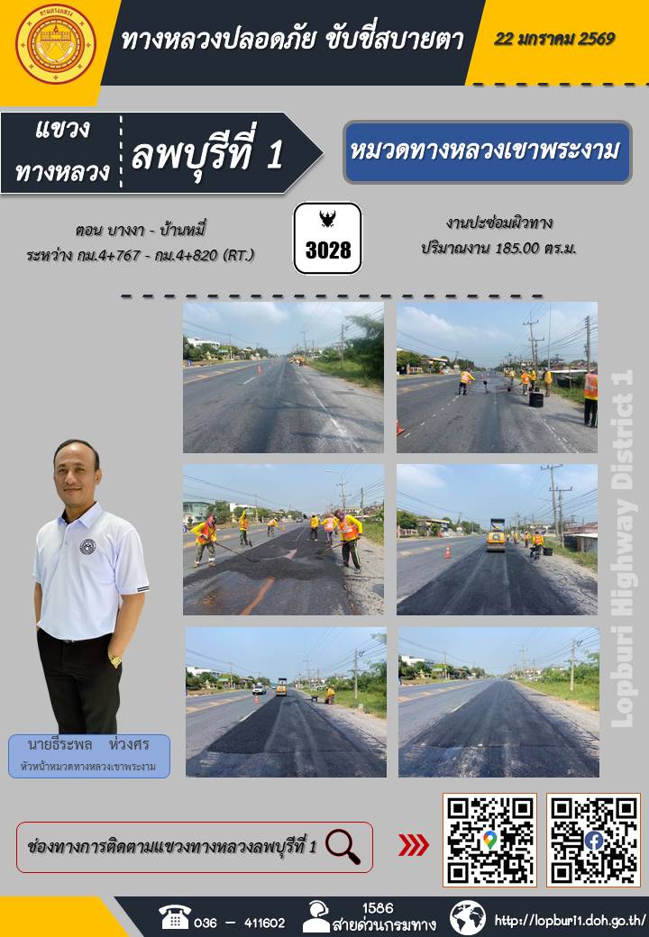 ทางหลวงปลอดภัยขับขี่สบายตา แขวงทางหลวงลพบุรีที่ 1 ประจำวันที่ 22 มกราคม 2569