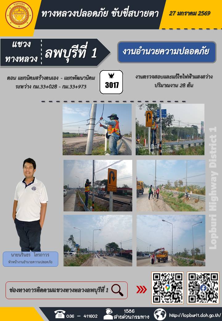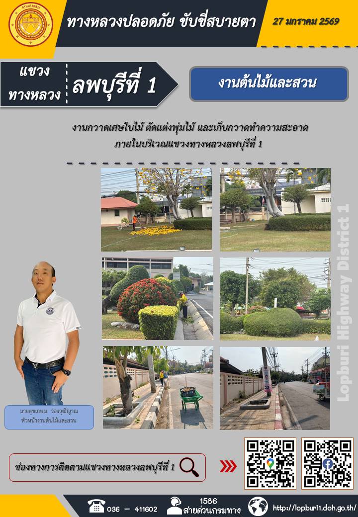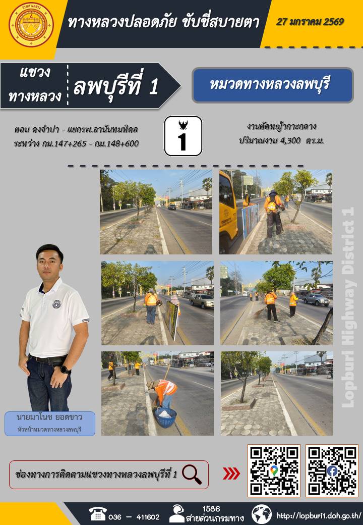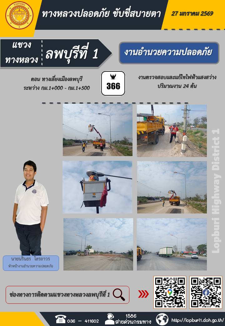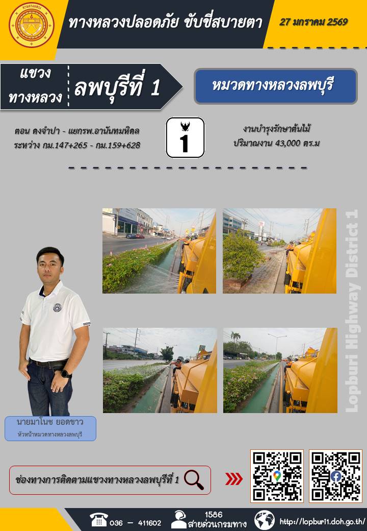 ทางหลวงปลอดภัยขับขี่สบายตา แขวงทางหลวงลพบุรีที่ 1 ประจำวันที่ 27 มกราคม 2569