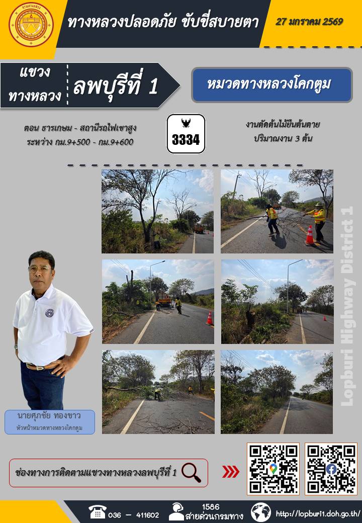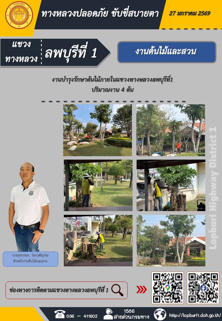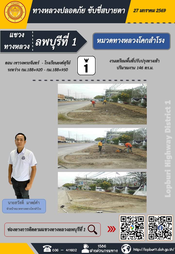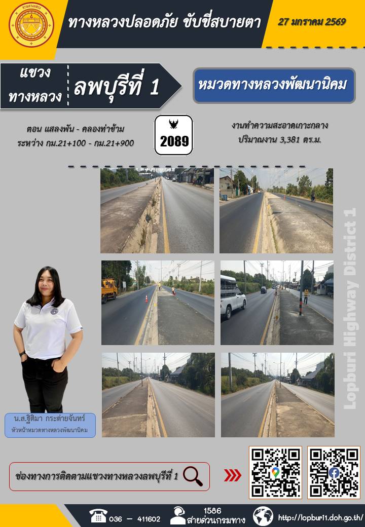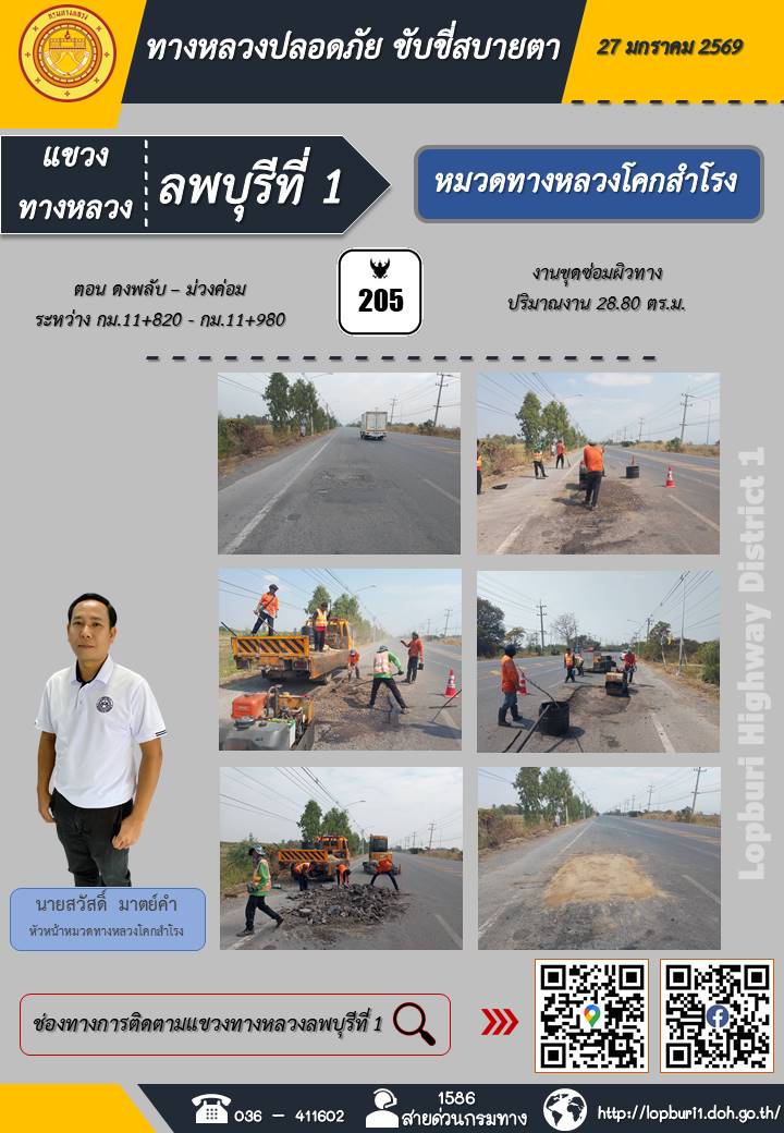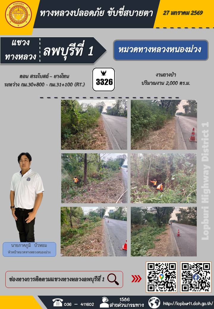 ทางหลวงปลอดภัยขับขี่สบายตา แขวงทางหลวงลพบุรีที่ 1 ประจำวันที่ 27 มกราคม 2569