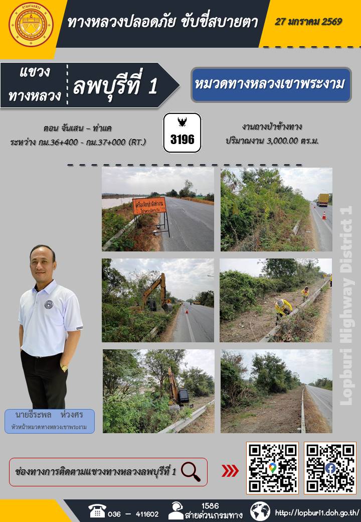 ข้อมูลภาพกิจกรรม : ทางหลวงปลอดภัยขับขี่สบายตา แขวงทางหลวงลพบุรีที่ 1 ประจำวันที่ 27 มกราคม 2569